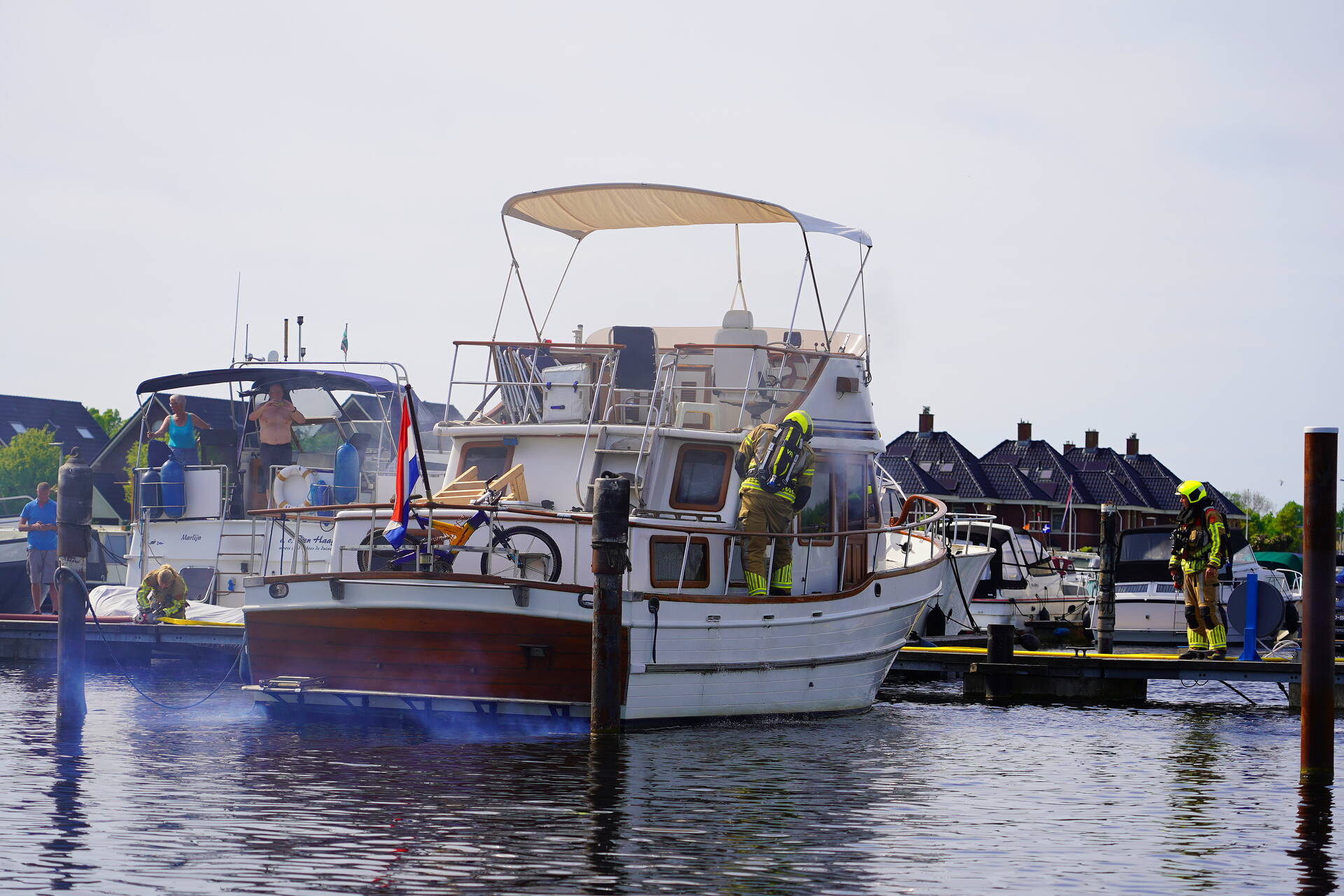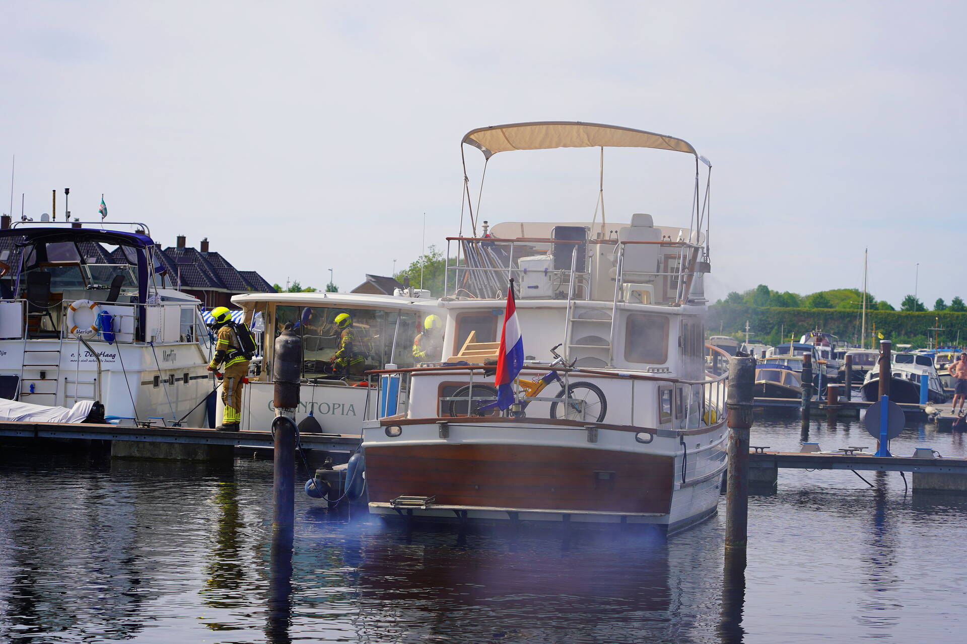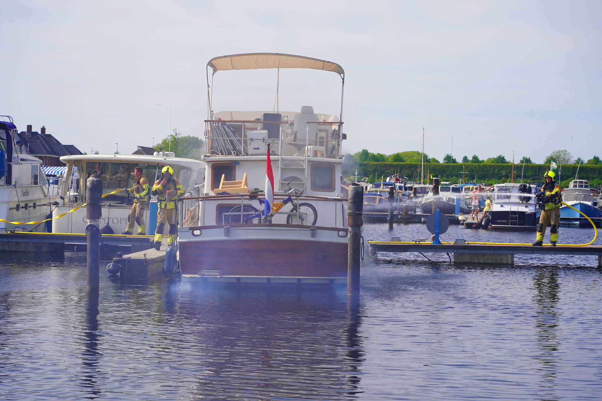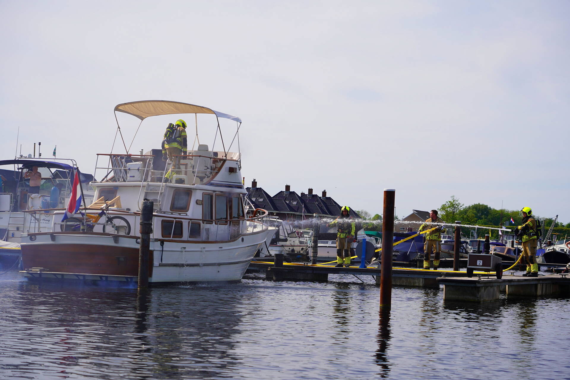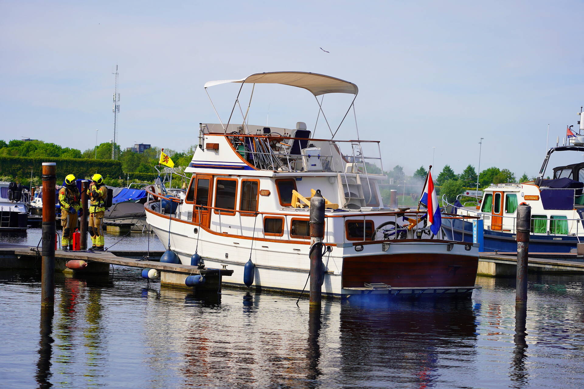 De brand ontstond in een plezierboot, die licht in een haven ligt. De brandweer is druk bezig met het blussen van de vlammen. Voor zover bekend zijn er geen gewonden gevallen bij het incident.