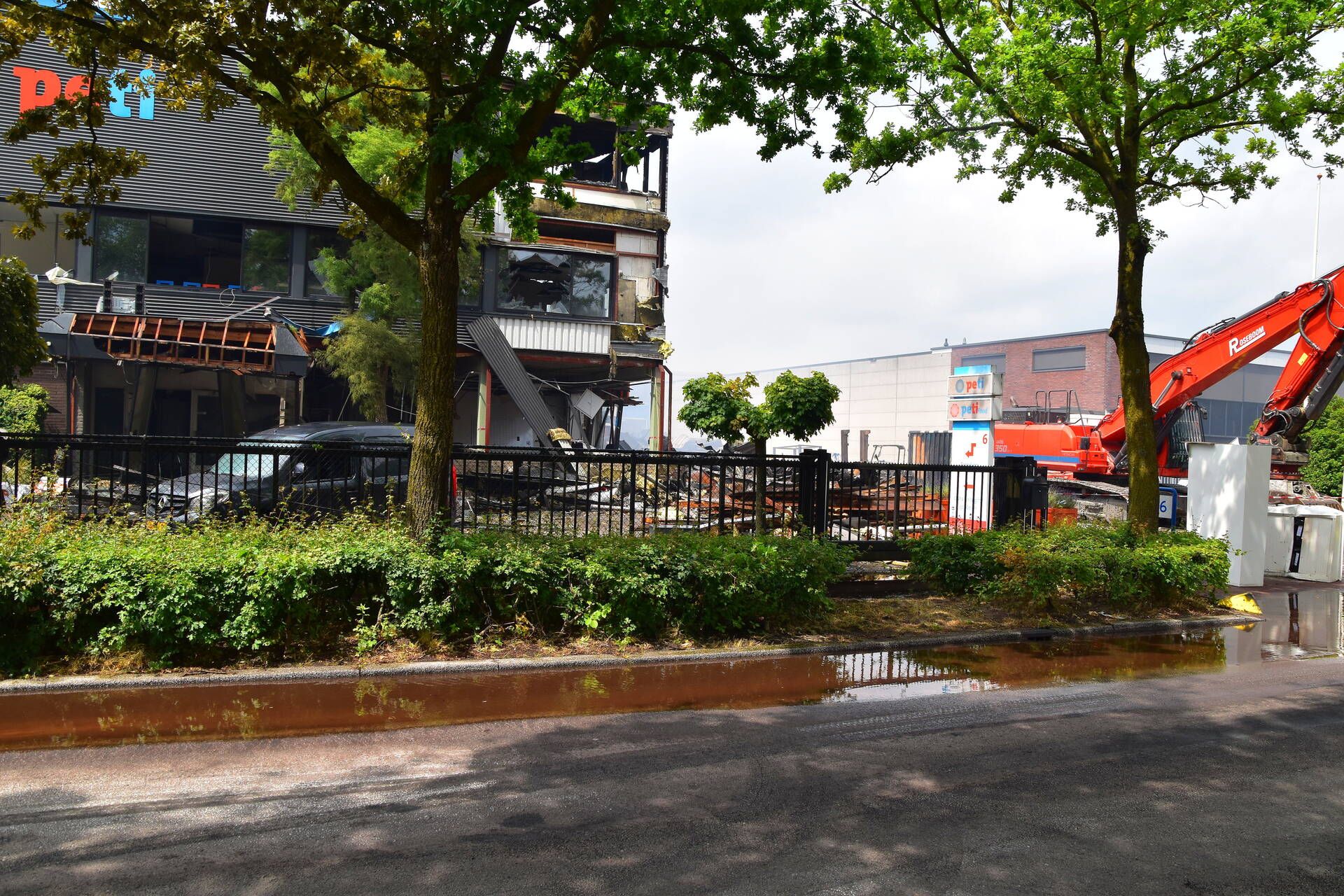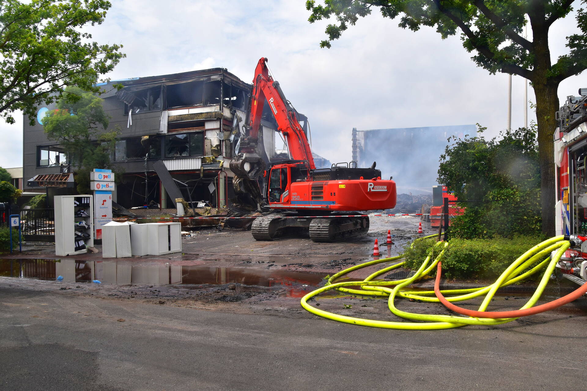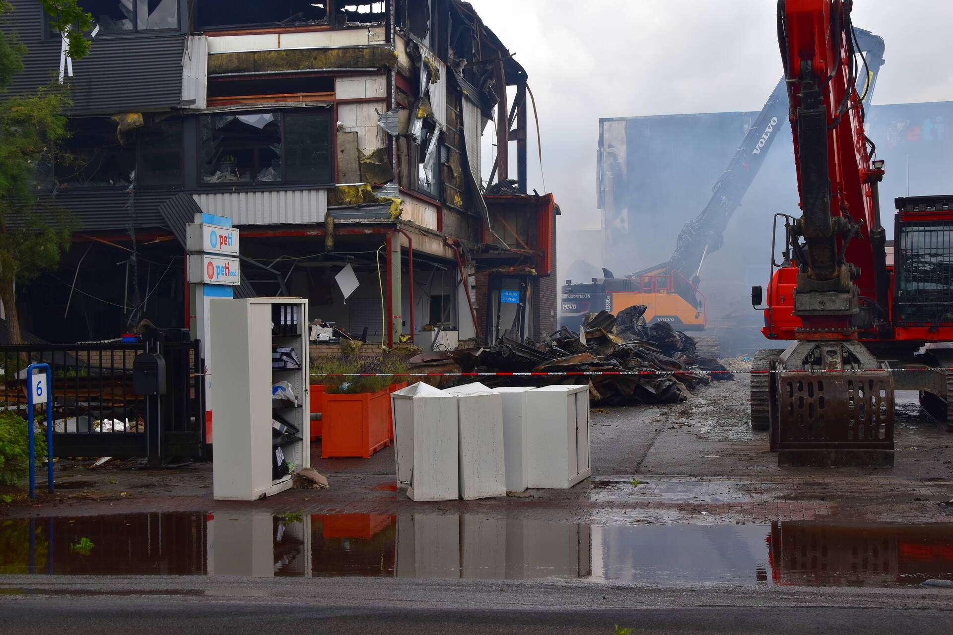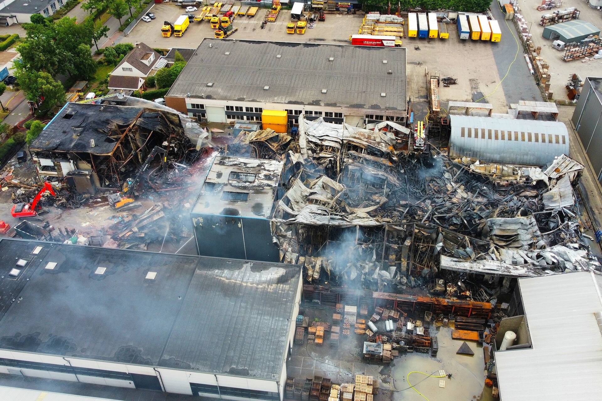 De schade aan de panden is aanzienlijk. De brandweer zal nog enkele uren bezig zijn met nabluswerkzaamheden. Een deel van het pand wordt gesloopt met behulp van een kraan.