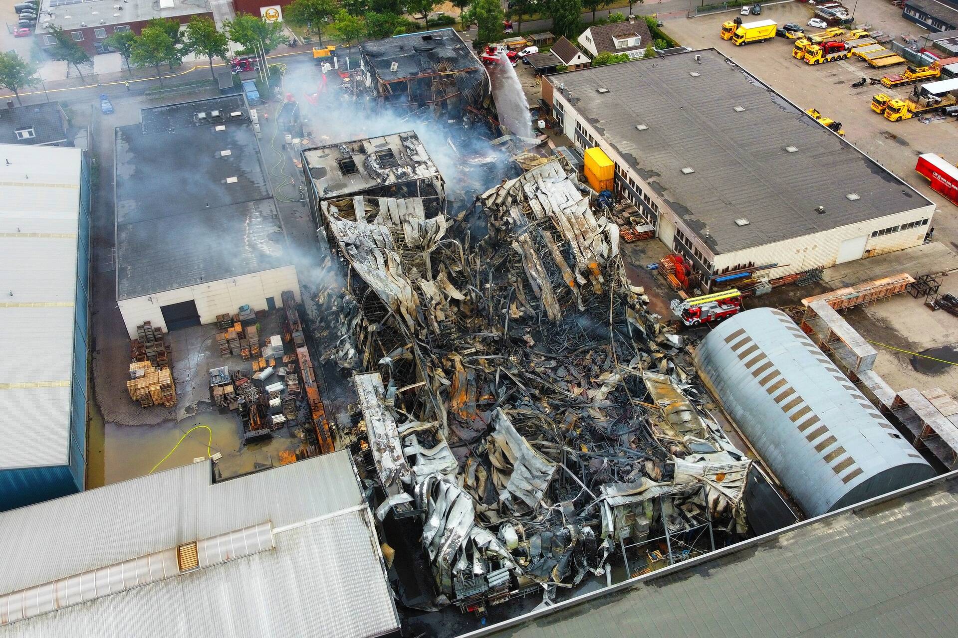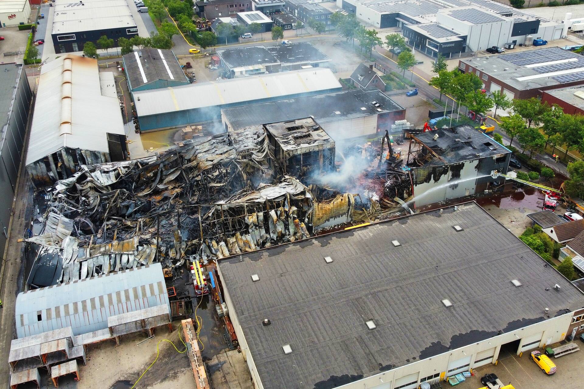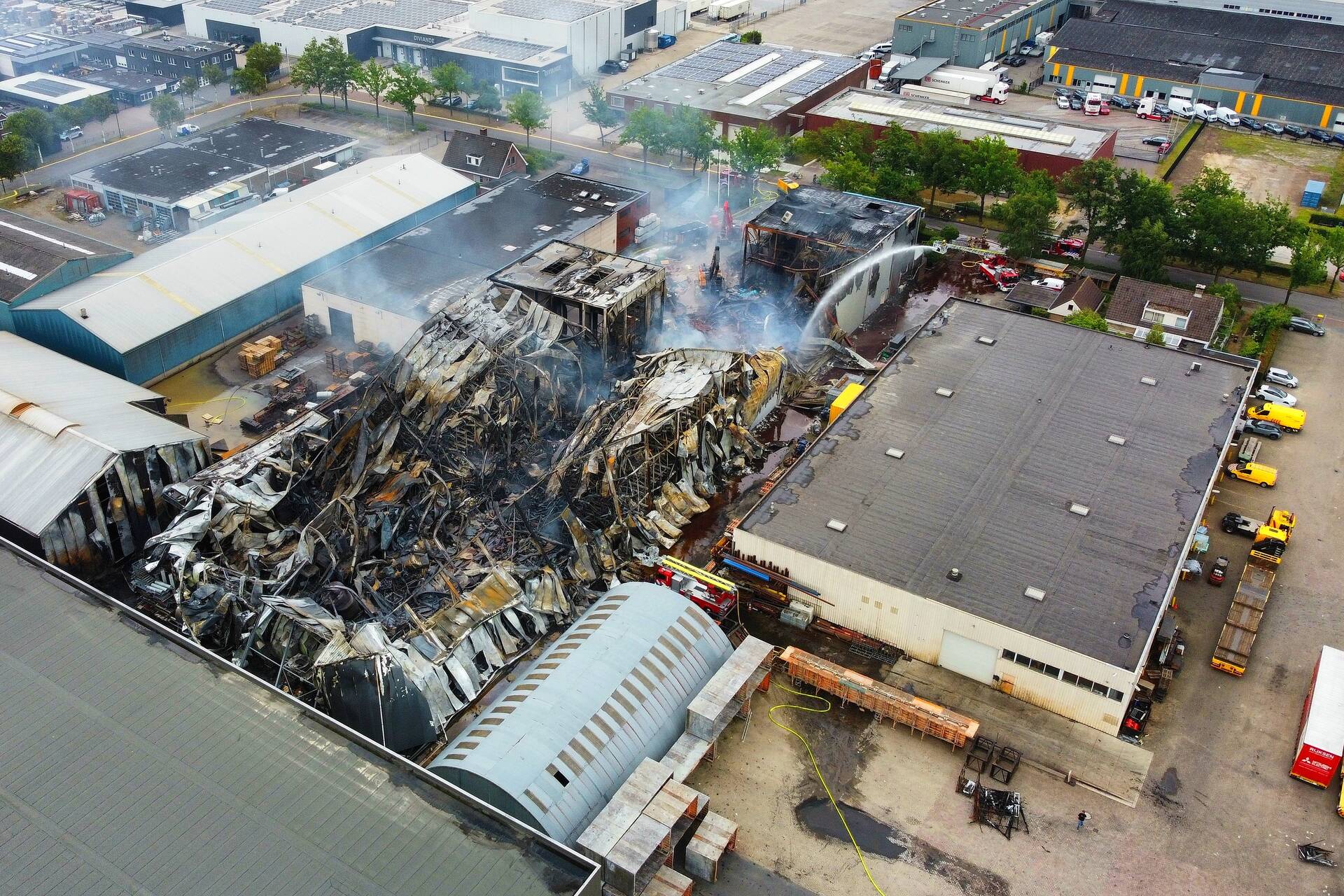 VEENENDAAL - Donderdagmiddag 26 juni niet lang na 14.00 uur is nieuwe aflossing gekomen naar de verwoestende industriebrand op industrieterrein Nijverkamp aan de Antennestraat in Veenendaal.
