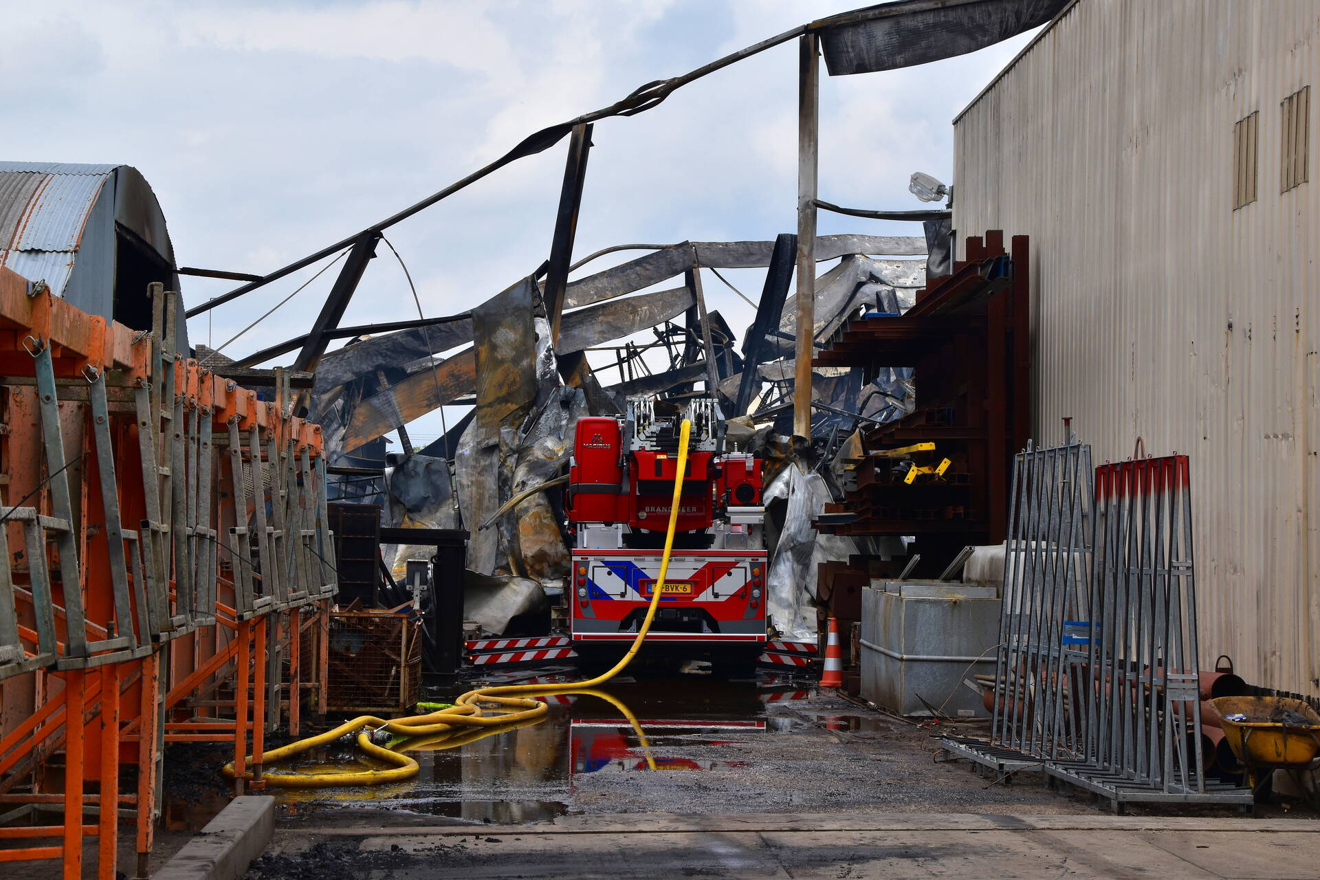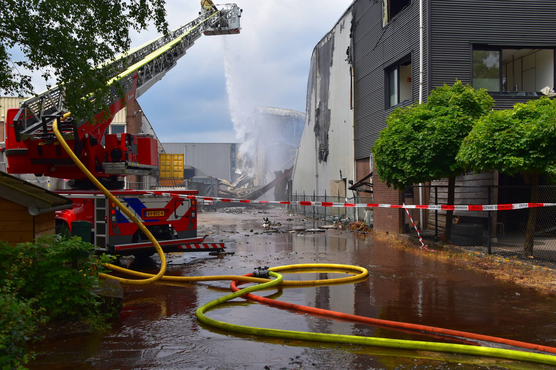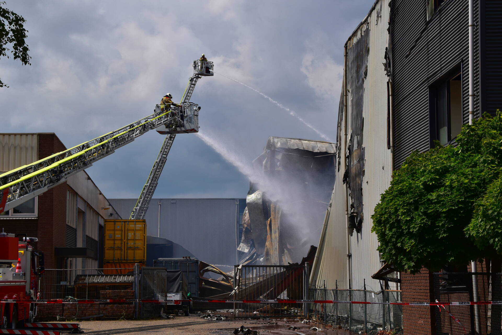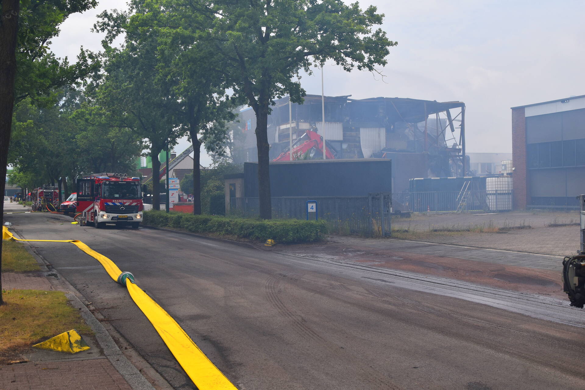 VEENENDAAL - Donderdagmiddag 26 juni niet lang na 14.00 uur is nieuwe aflossing gekomen naar de verwoestende industriebrand op industrieterrein Nijverkamp aan de Antennestraat in Veenendaal.