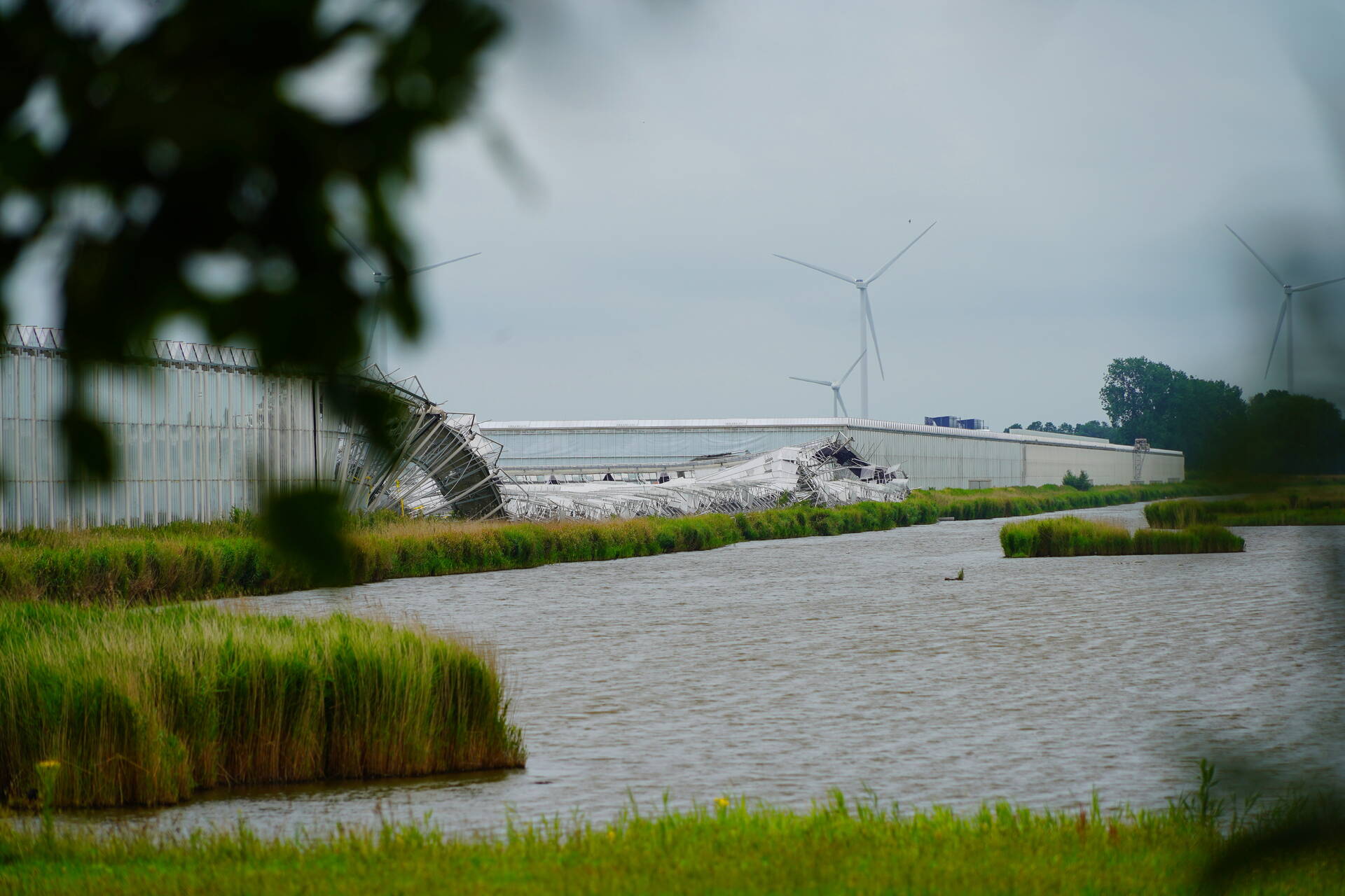 MIDDENMEER - Vrijdagmiddag 27 juni tussen 16.30 uur en 17.00 uur zijn een groot aantal kassen van een tomatenbedrijf aan de Medemblikkerweg in Middenmeer ingestort.