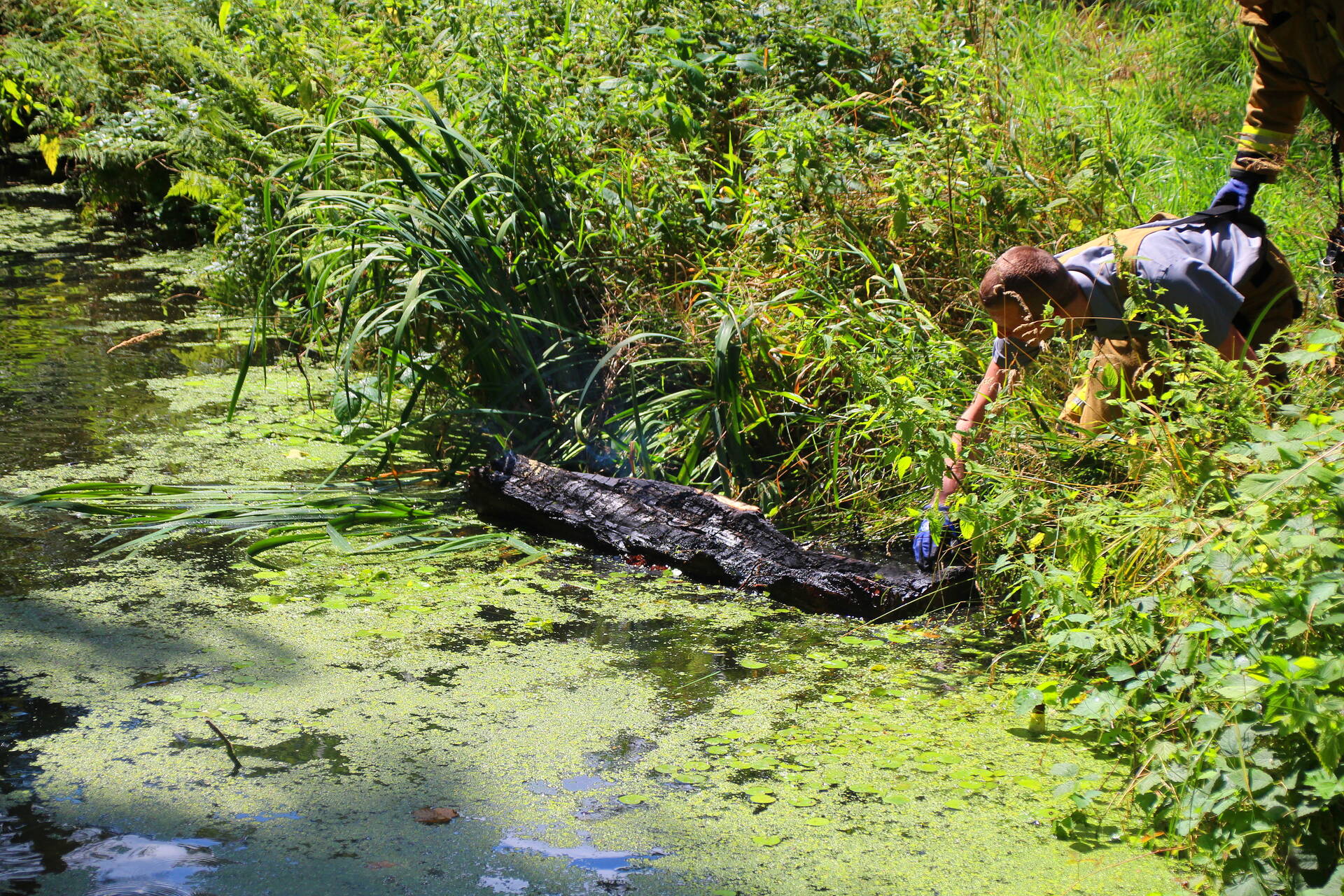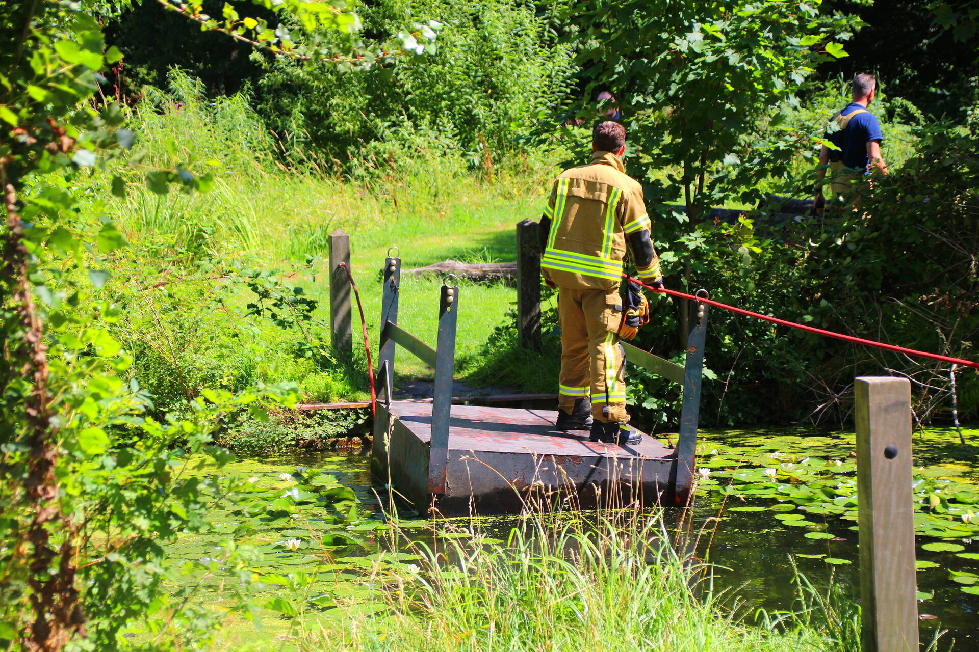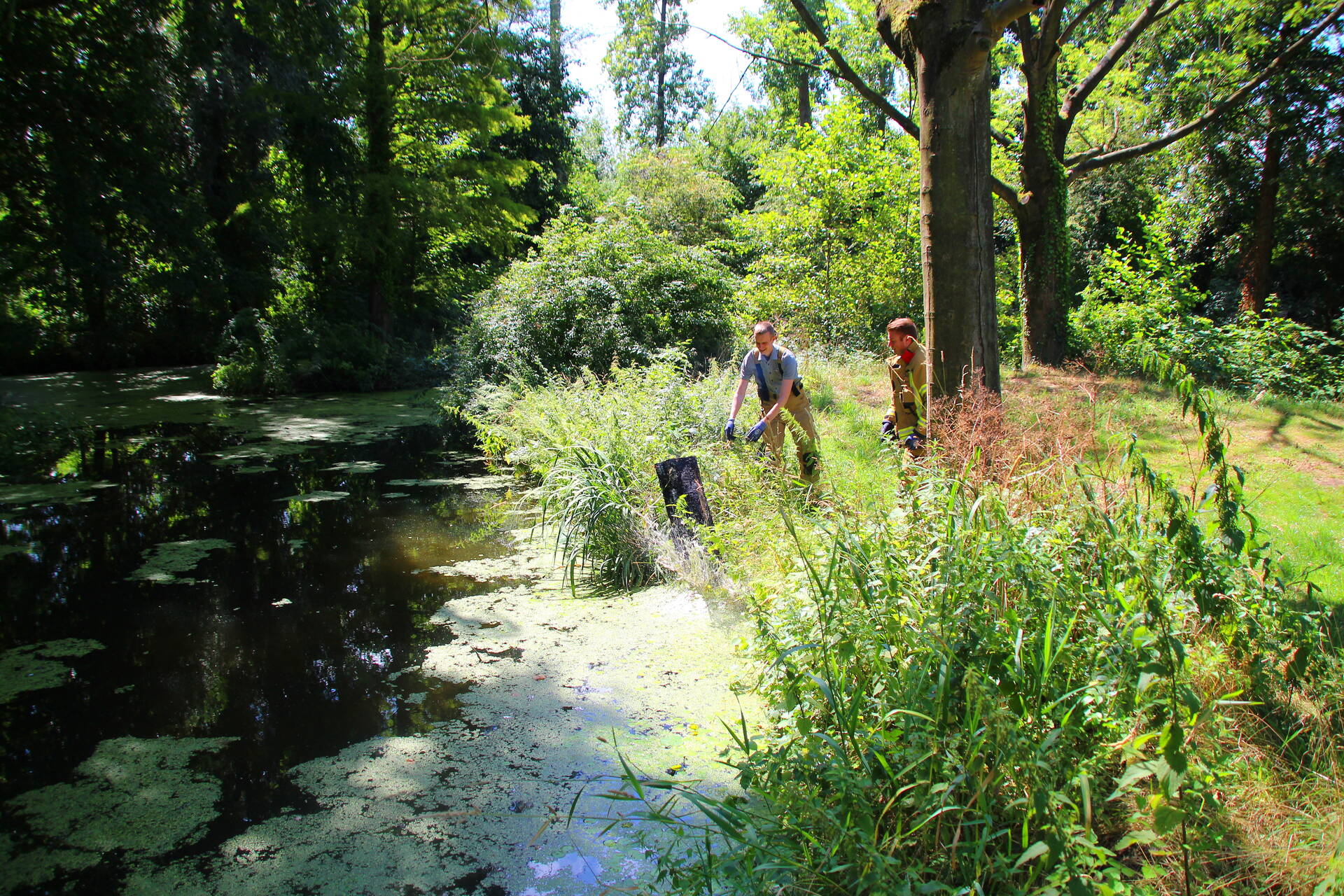 Bij het incident ging het om een boomstam die in brand was gestoken. De brandweer gebruikte een kettingzaag om het brandende deel weg te zagen en dit vervolgens in de sloot te gooien. Om de brandhaard te bereiken, moesten de brandweerlieden het water oversteken met behulp van een trekpont.