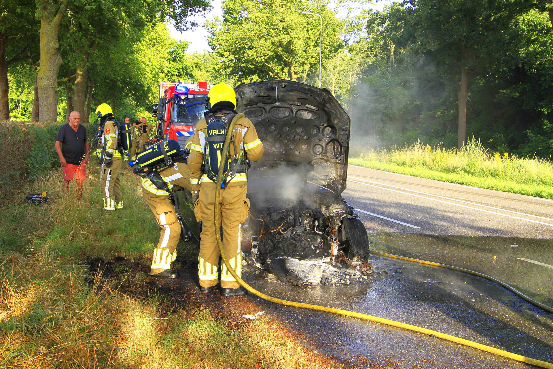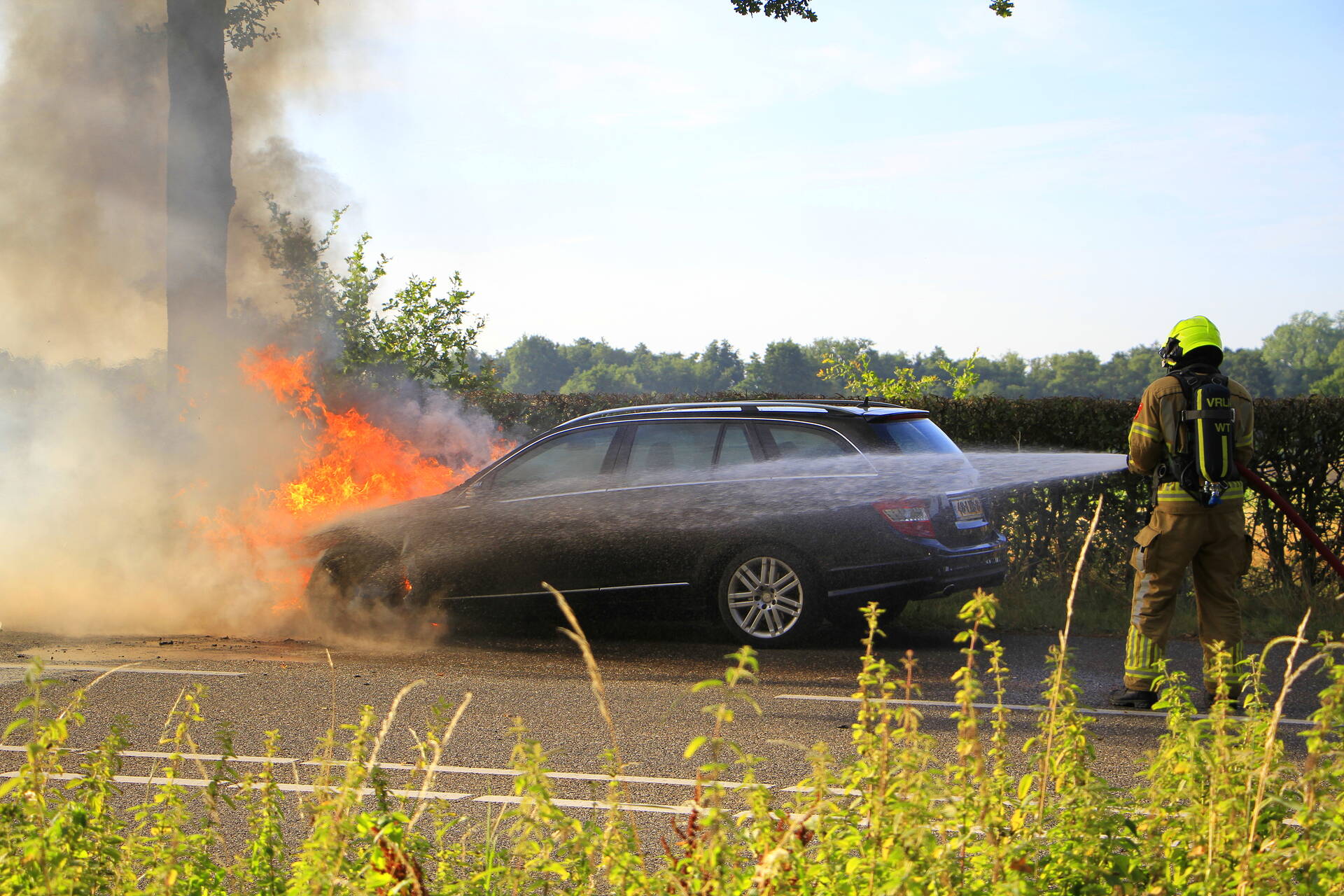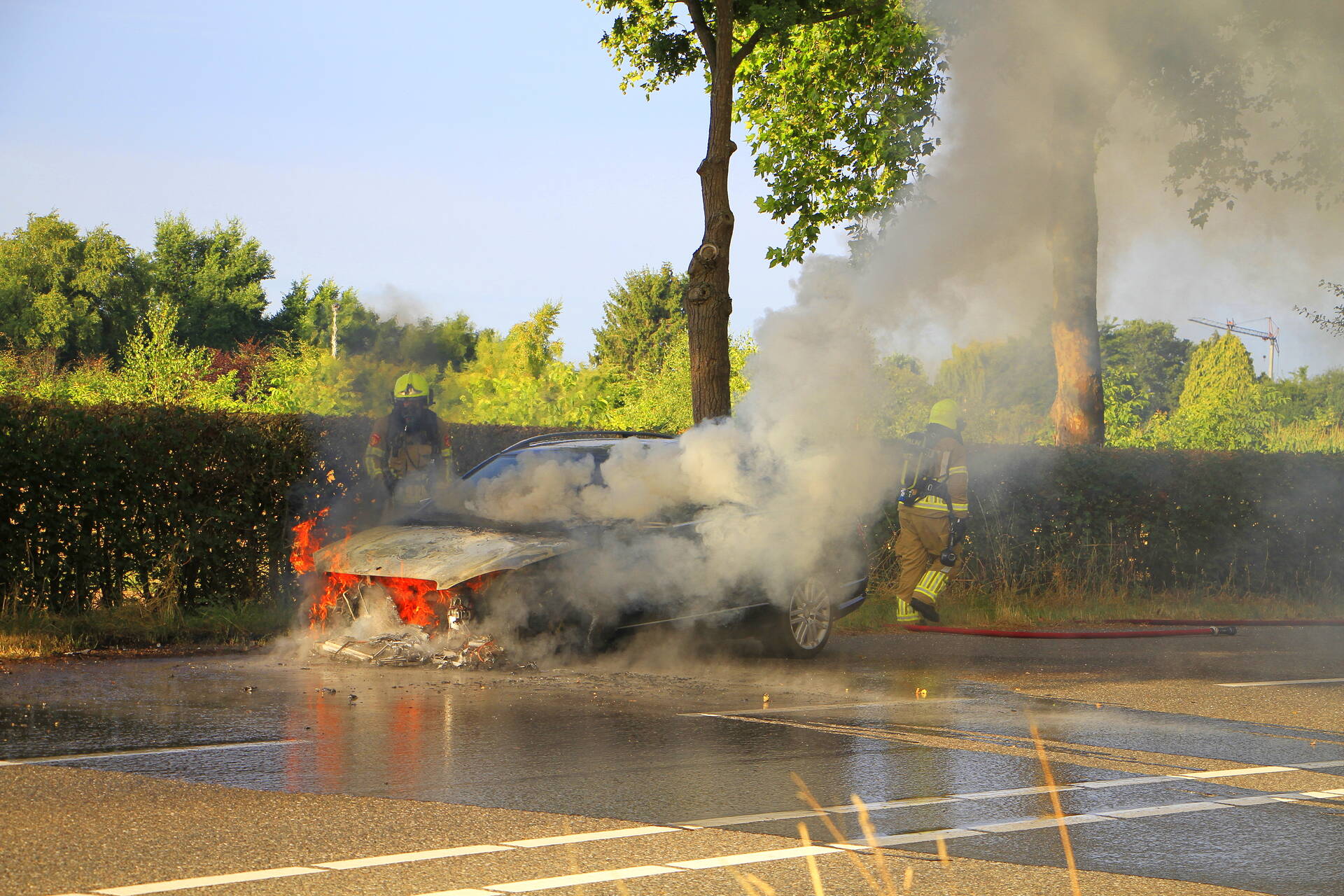 WEERT - Op de morgen van zaterdag 19 juli vlak na 07.35 uur vond een autobrand plaats aan de Ringbaan Zuid in Weert. De brand veroorzaakte aanzienlijke schade aan het voertuig. Hulpdiensten kwamen snel in actie om de vlammen te blussen, maar het voertuig brandde volledig uit. De oorzaak van de brand is niet bekendgemaakt. Er raakte niemand gewond bij het incident, en de brandweer heeft de situatie onder controle weten te krijgen zonder verdere complicaties.