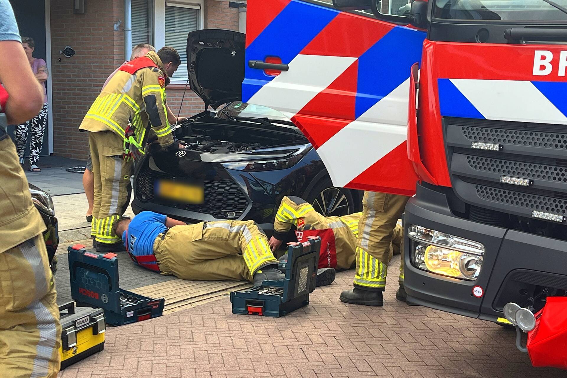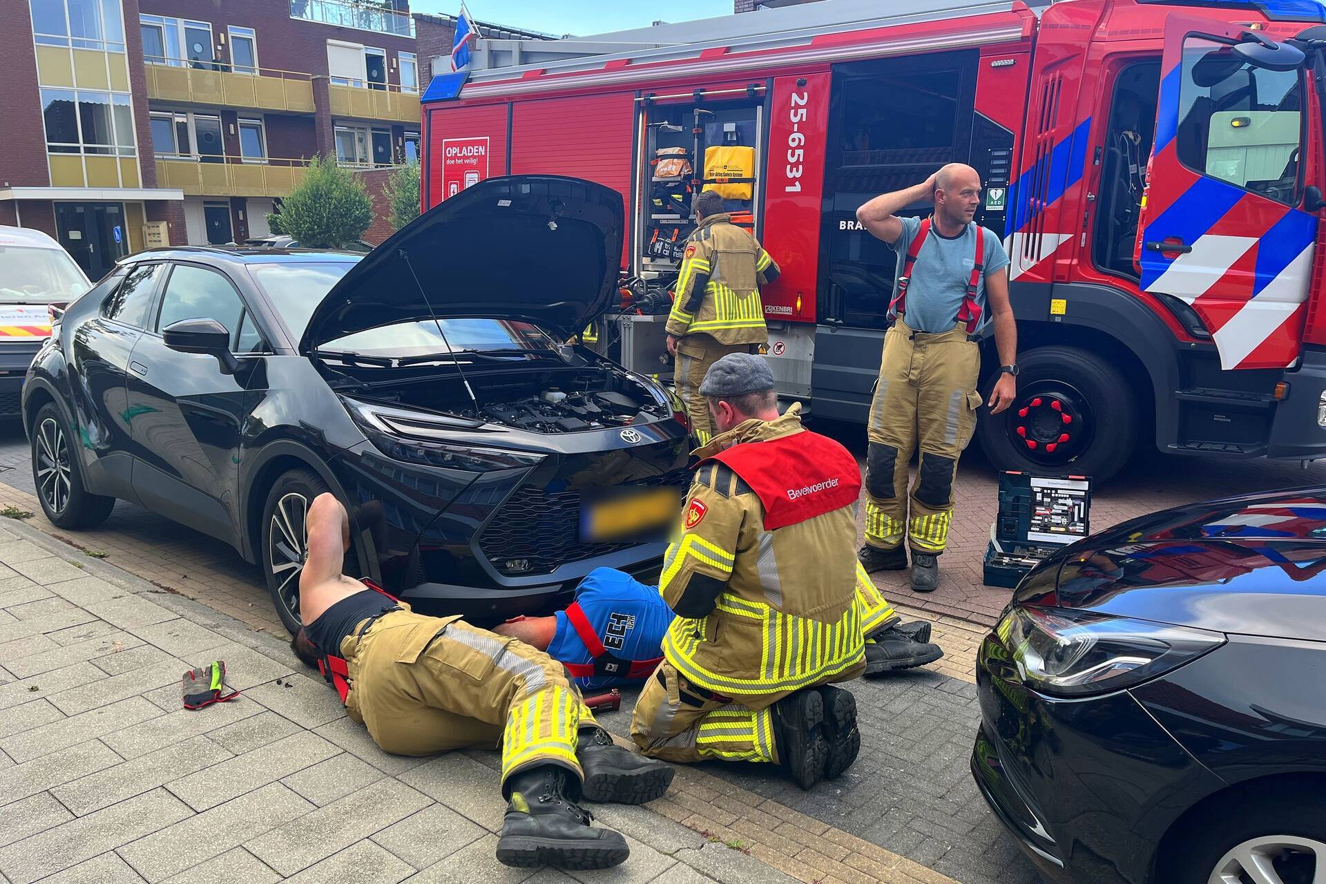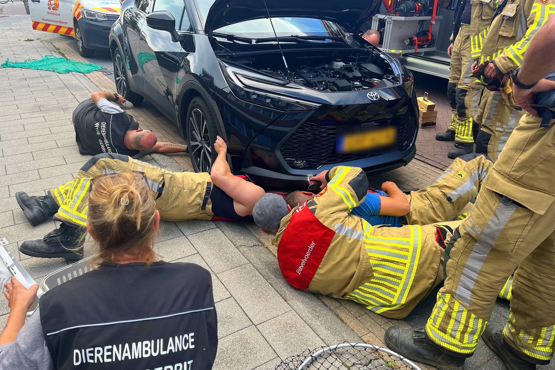 Een kat was vast komen te zitten in het motorcompartiment van een auto. De dierenambulance probeerde het dier te bevrijden, maar slaagde hier niet in. Vervolgens werd de brandweer ingeschakeld.