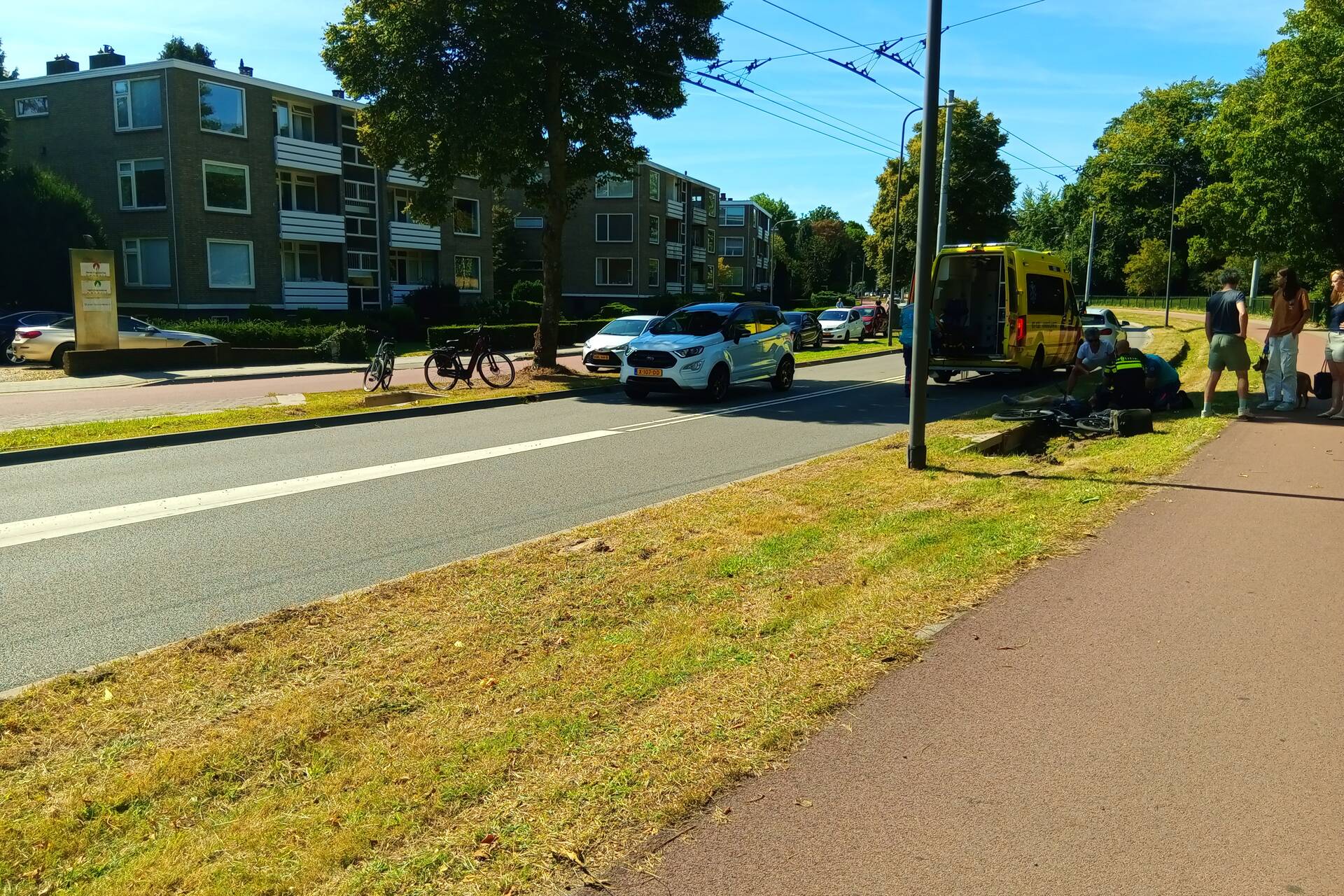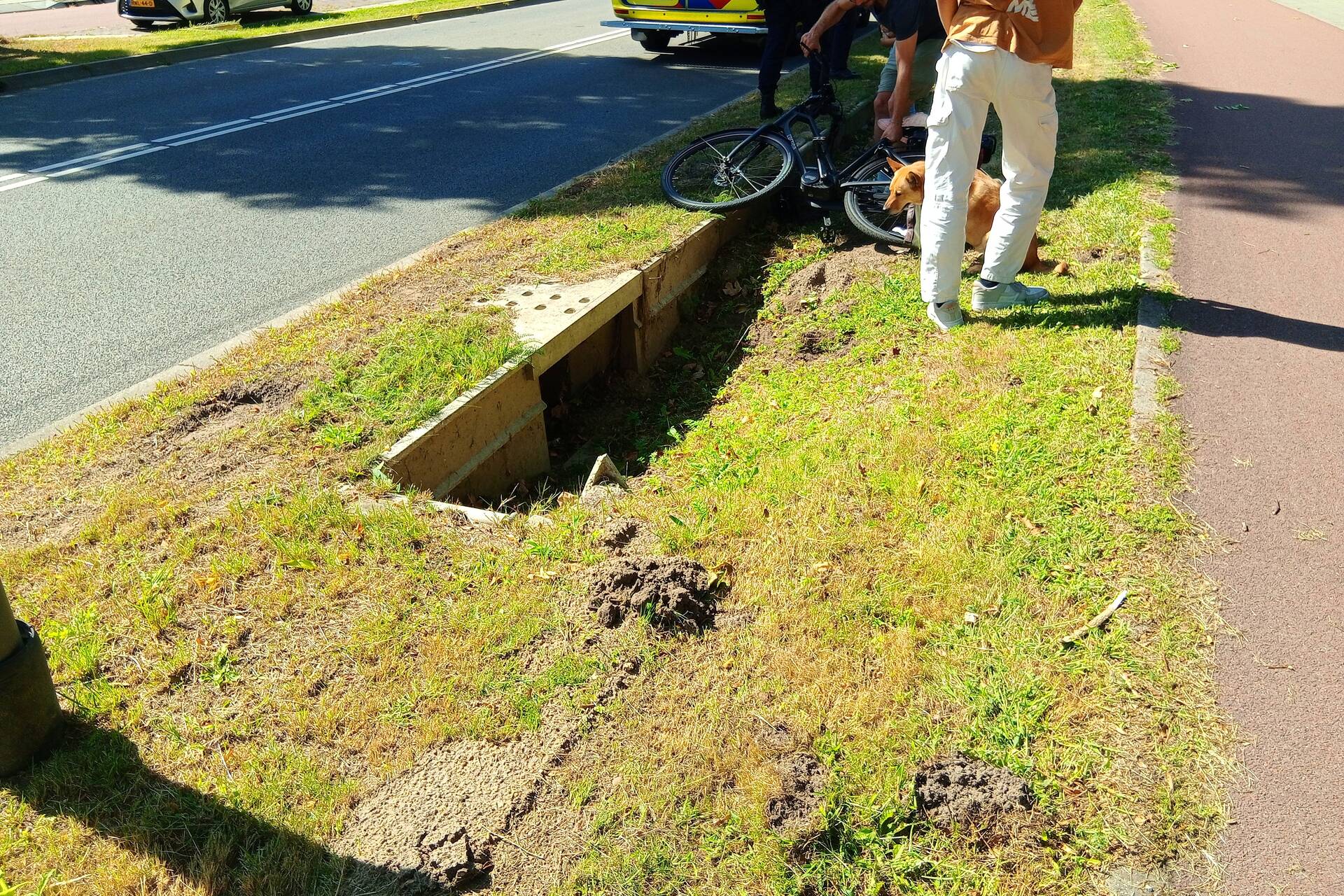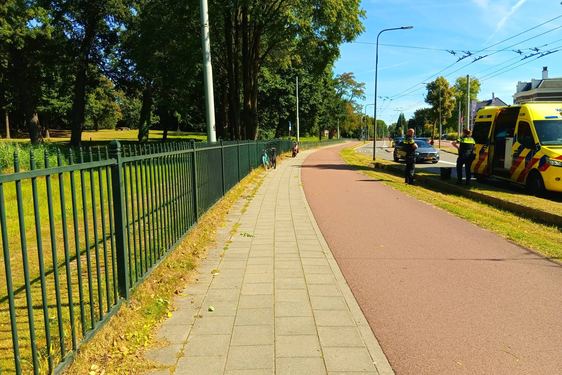 Een fietser raakte samen met zijn dochter betrokken bij het ongeluk, waarbij de vader door onbekende oorzaak van de weg afraakte en viel. De vader is met de ambulance naar het ziekenhuis vervoerd voor nader onderzoek.