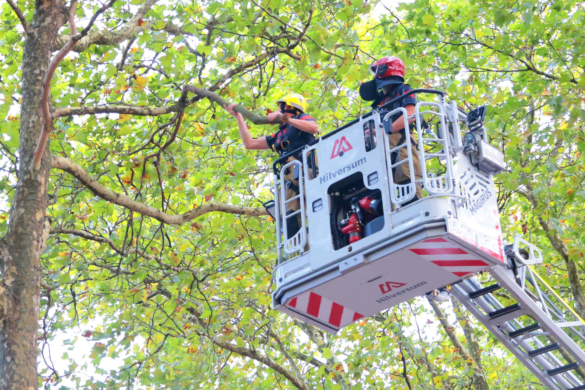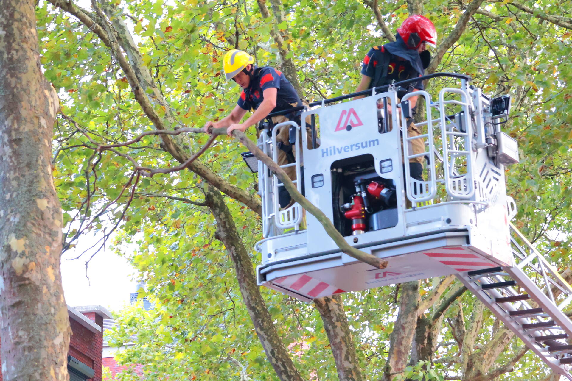 HILVERSUM - Maandagavond 15 september kort voor 19.00 uur heeft een natuur plaatsgevonden aan de Kleine Drift in Hilversum. De brandweer werd ingeschakeld voor een melding van stormschade. Bij aankomst bleek het te gaan om twee losliggende takken in een hoge boom. De brandweermensen hebben de takken met een autoladder verwijderd en zo de situatie veiliggesteld.