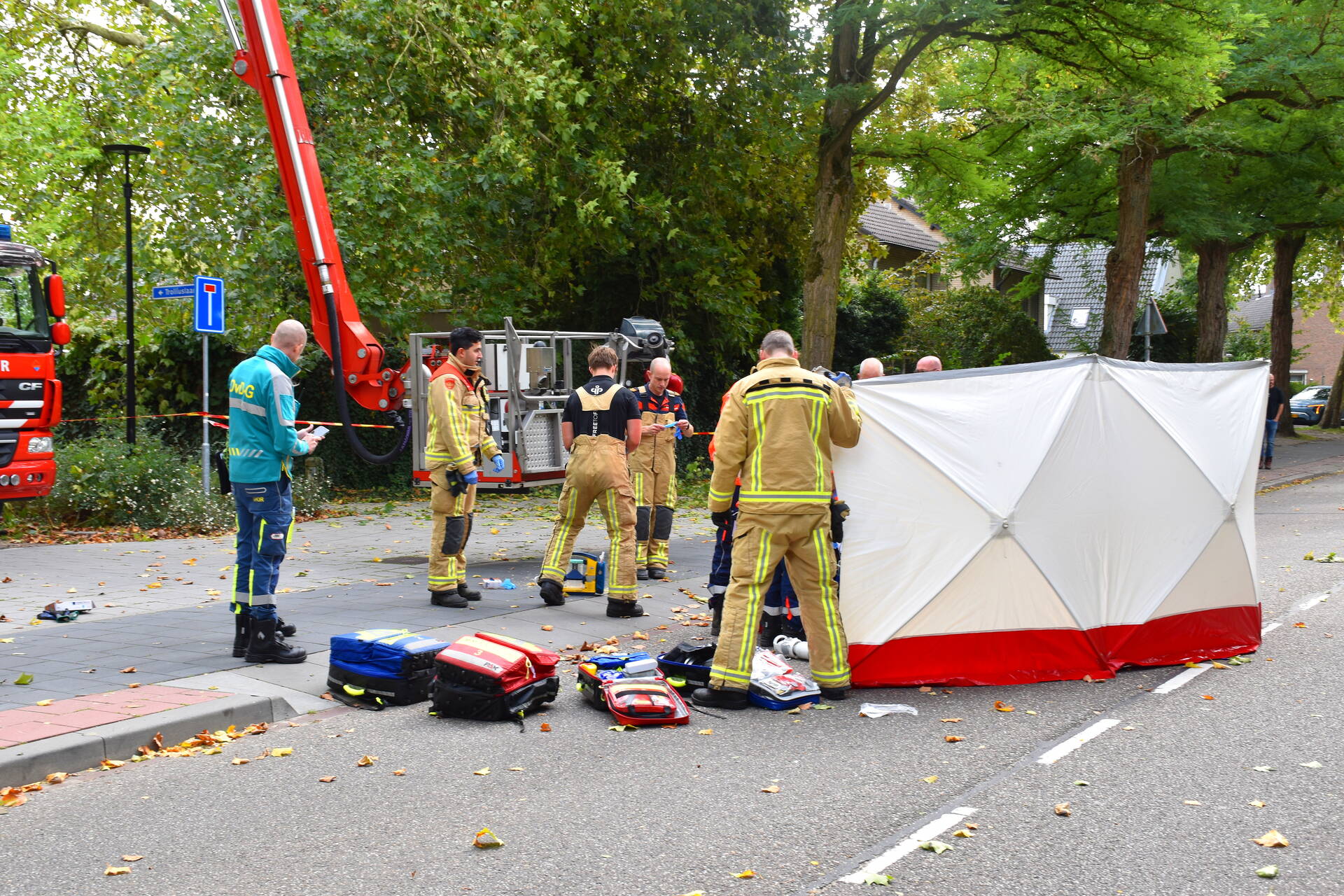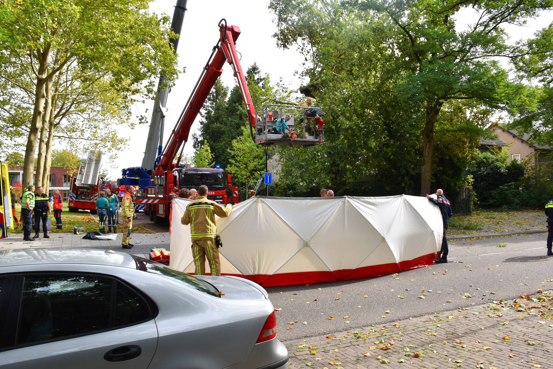 Tijdens het snoeien van een boom raakte een persoon bekneld en werd een noodredding uitgevoerd. Er is momenteel reanimatie aan de gang op de openbare weg. De situatie was zeer urgent, wat leidde tot een snelle inzet van verschillende hulpdiensten. De ambulancedienst en brandweer waren ter plekke, waarbij ook een traumahelikopter uit Volkel werd ingezet.