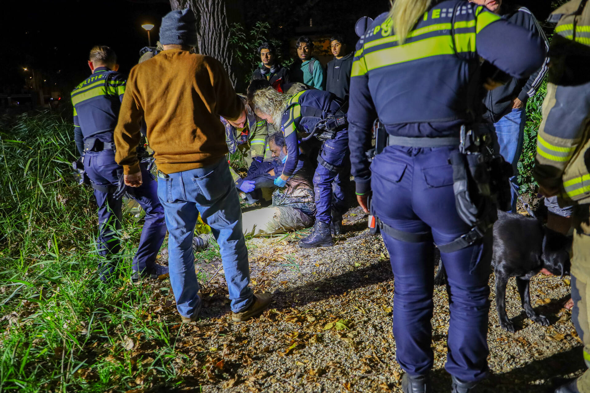 AMSTERDAM - In de late avond van woensdag 1 oktober niet lang na 22.20 uur werd melding gemaakt van een persoon te water aan de Rudi Bloemgartensingel in Amsterdam. Voorbijgangers ontdekten de bestuurder van een scootmobiel in het water. Een persoon die zijn hond uitliet, merkte de situatie op en alarmeerde de hulpdiensten. De politie kwam snel in actie en bracht de man op het droge. De brandweer hielp met het bergen van de scootmobiel. Het slachtoffer is per ambulance naar het ziekenhuis vervoerd in verband met mogelijke onderkoeling.