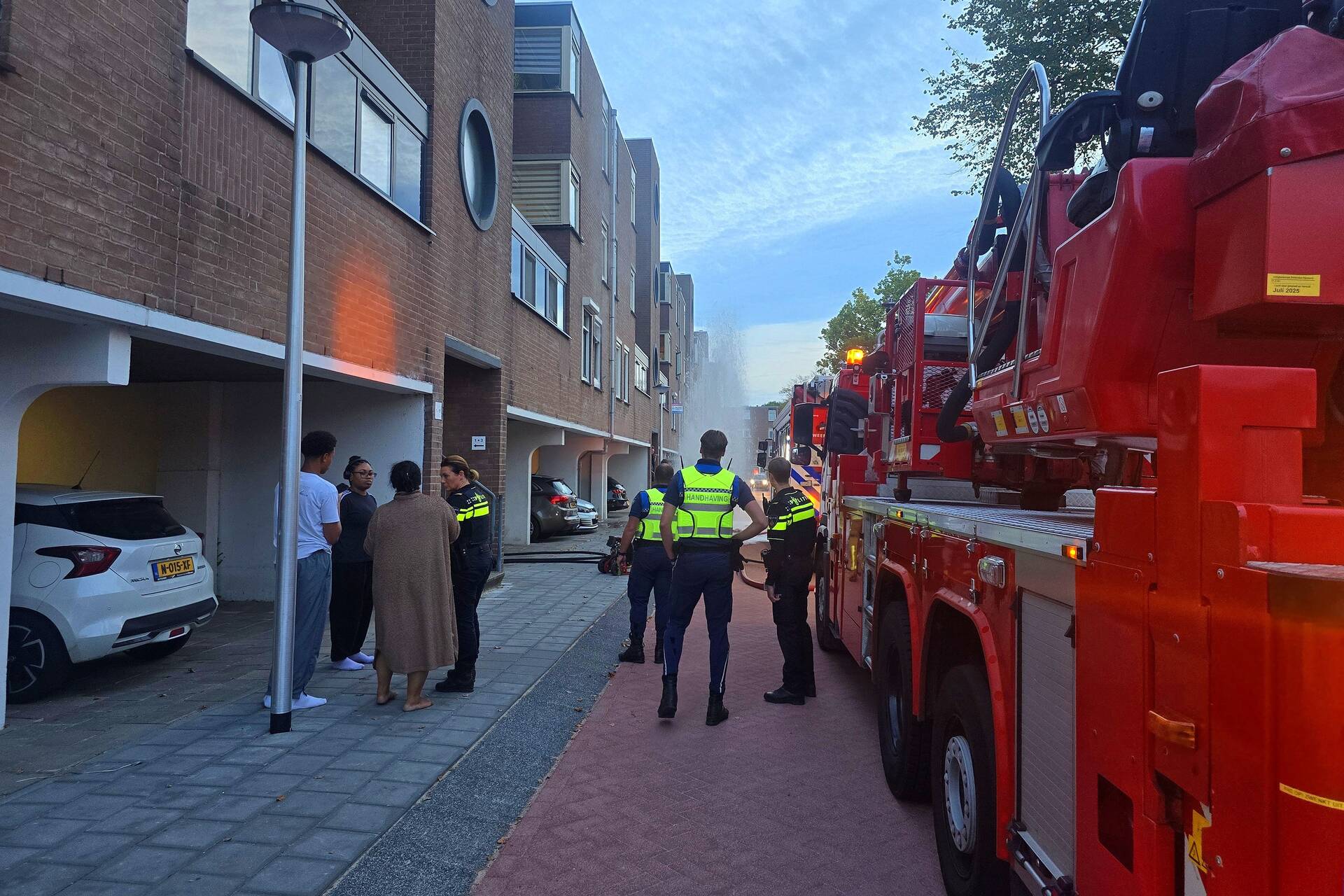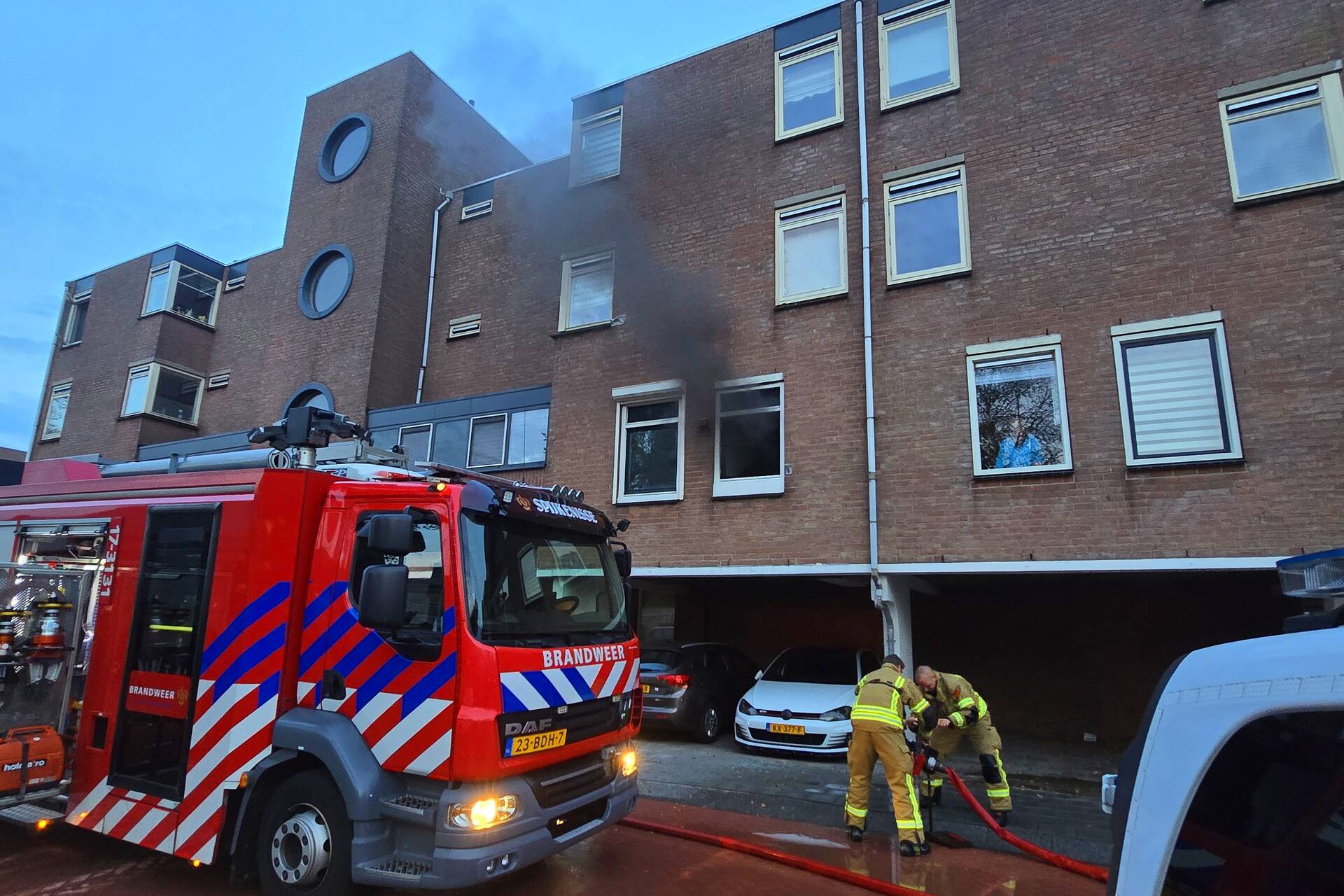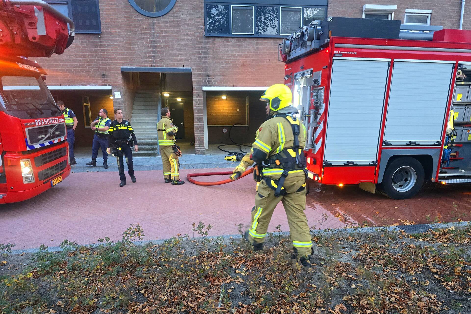 Bij aankomst van de brandweer was er veel rookontwikkeling te zien. De brand woedde in de keuken. De brandweer kreeg het vuur snel onder controle. Daarna werden de woningen geventileerd. Volgens de laatste informatie zijn er geen gewonden gevallen.