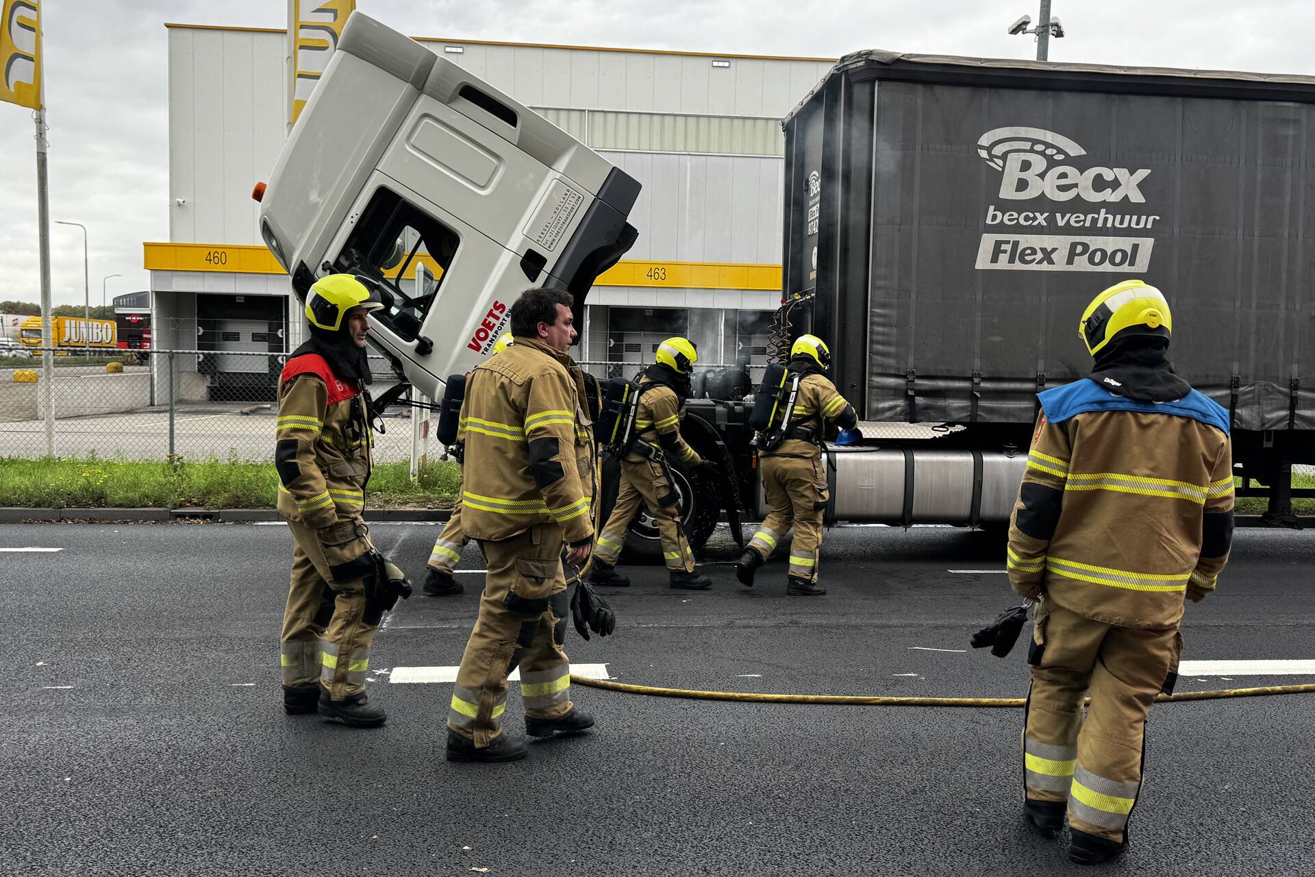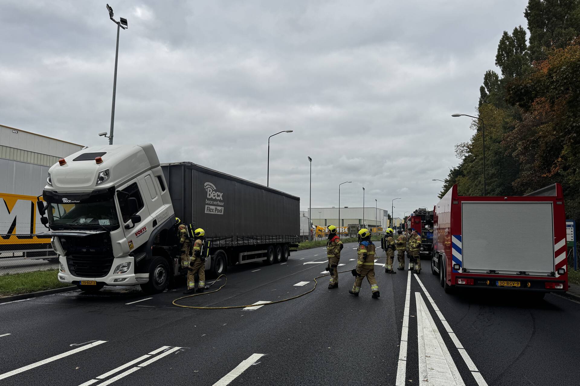 De oorzaak van de brand is nog niet bekend, maar volgens de bevelvoerder lekt de vrachtwagen brandstof, wat mogelijk een aanleiding kan zijn.
