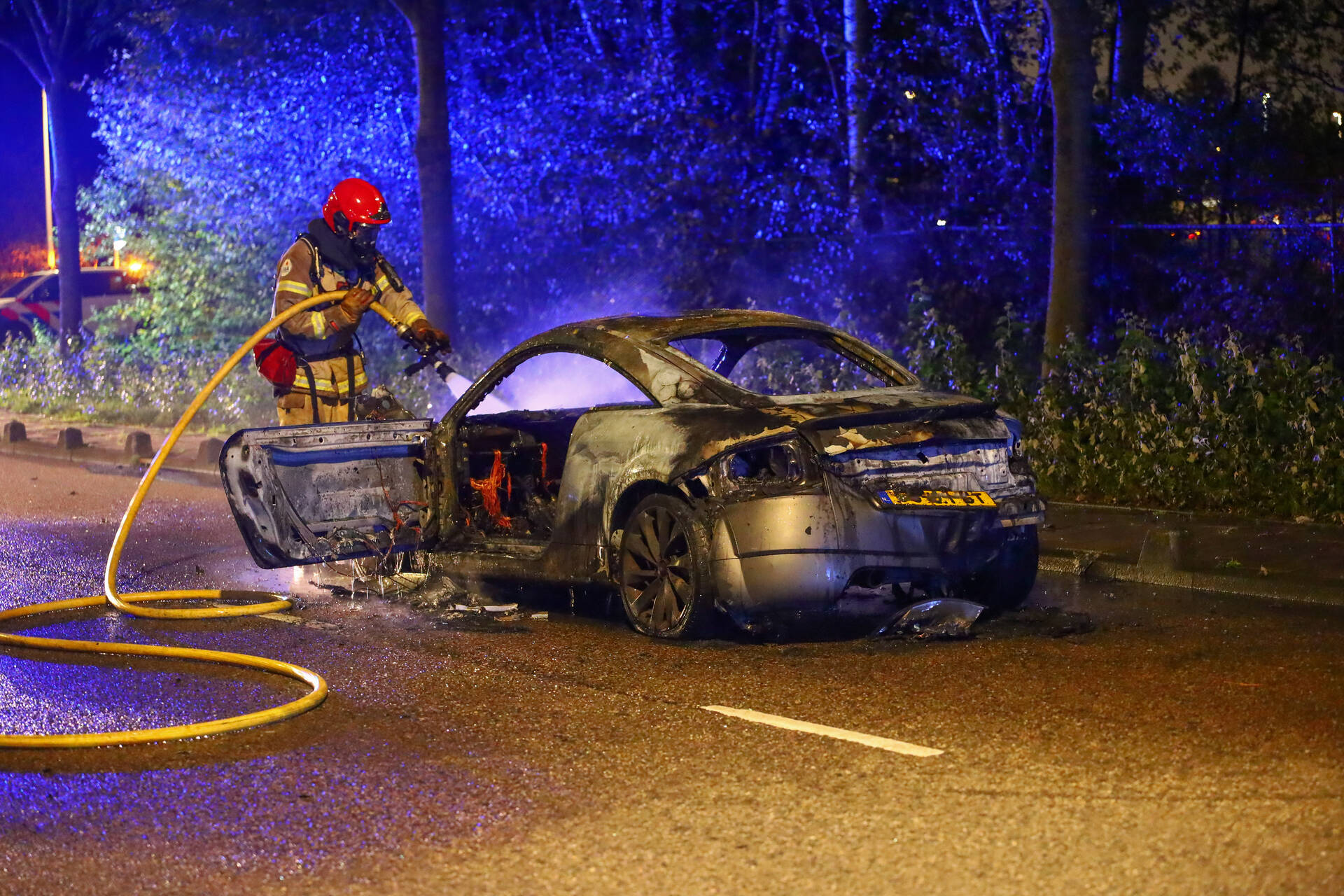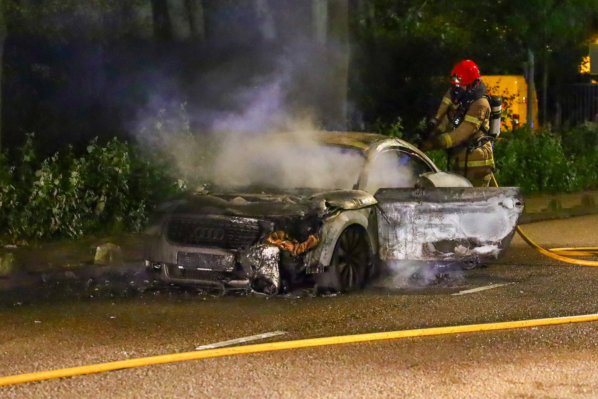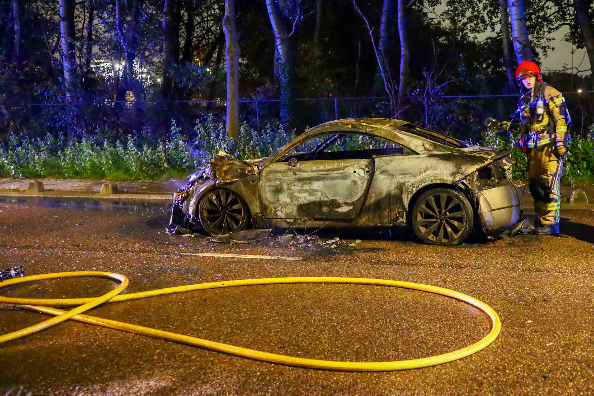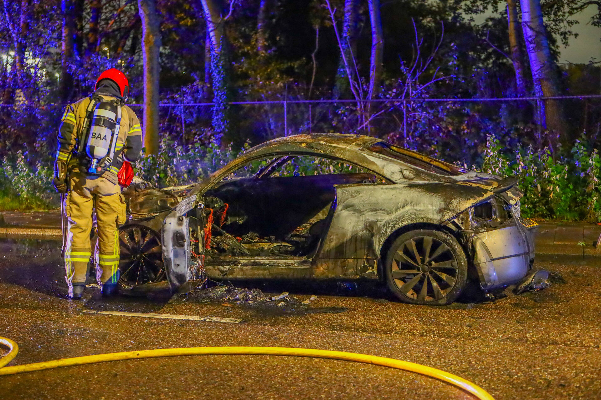 AMSTERDAM - In de nachtelijke uren van zaterdag 11 oktober rond de klok van 01.45 uur werd een brand vastgesteld aan de Heining in Amsterdam. Tijdens het rijden vatte een Audi TT vlam. De inzittenden konden de auto tijdig verlaten, waardoor gelukkig niemand gewond raakte. De brandweer kreeg de melding en bluste het vuur, maar kon niet voorkomen dat het voertuig volledig uitbrandde.