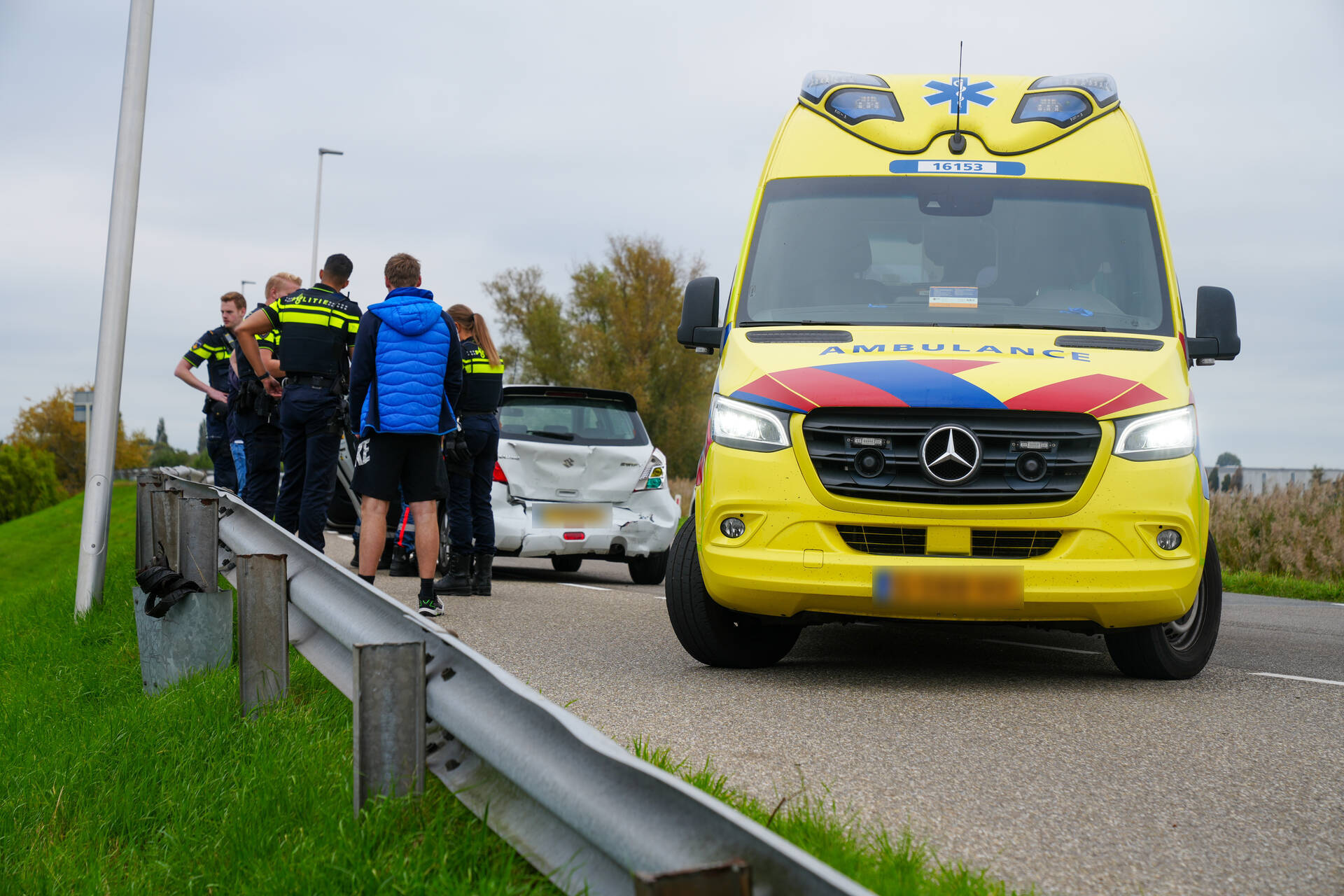 Bij het ongeval op de Oosteinde in Moordrecht betrof het een kop-staartbotsing waarbij de achterzijde van een personenauto aanzienlijk was ingedeukt. De situatie vereiste een snelle respons, vandaar dat de hulpdiensten met spoed ter plaatse waren. Een vrouw wordt onderzocht door het ambulancepersoneel.