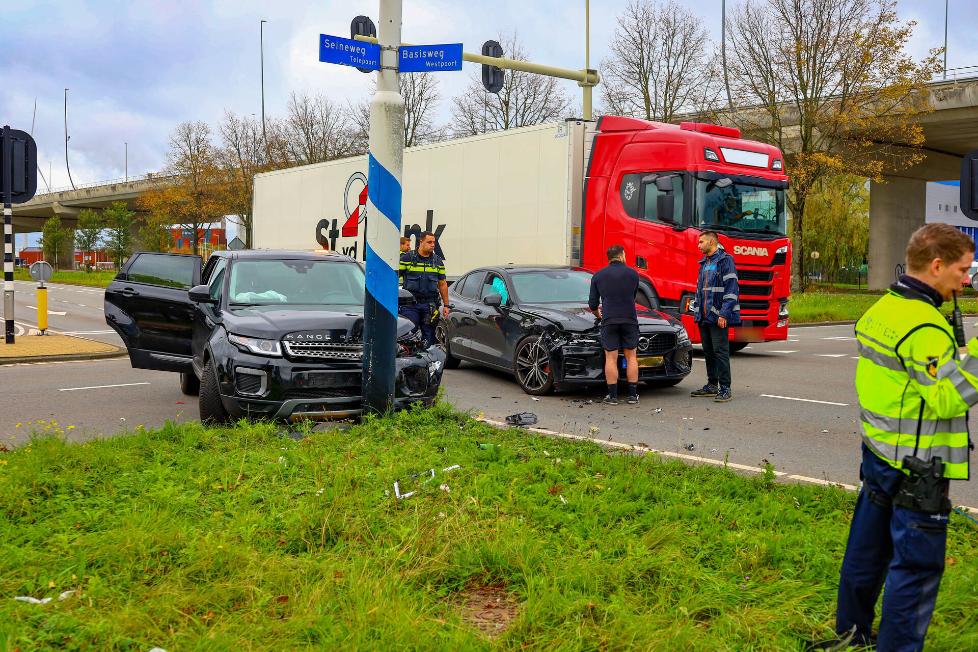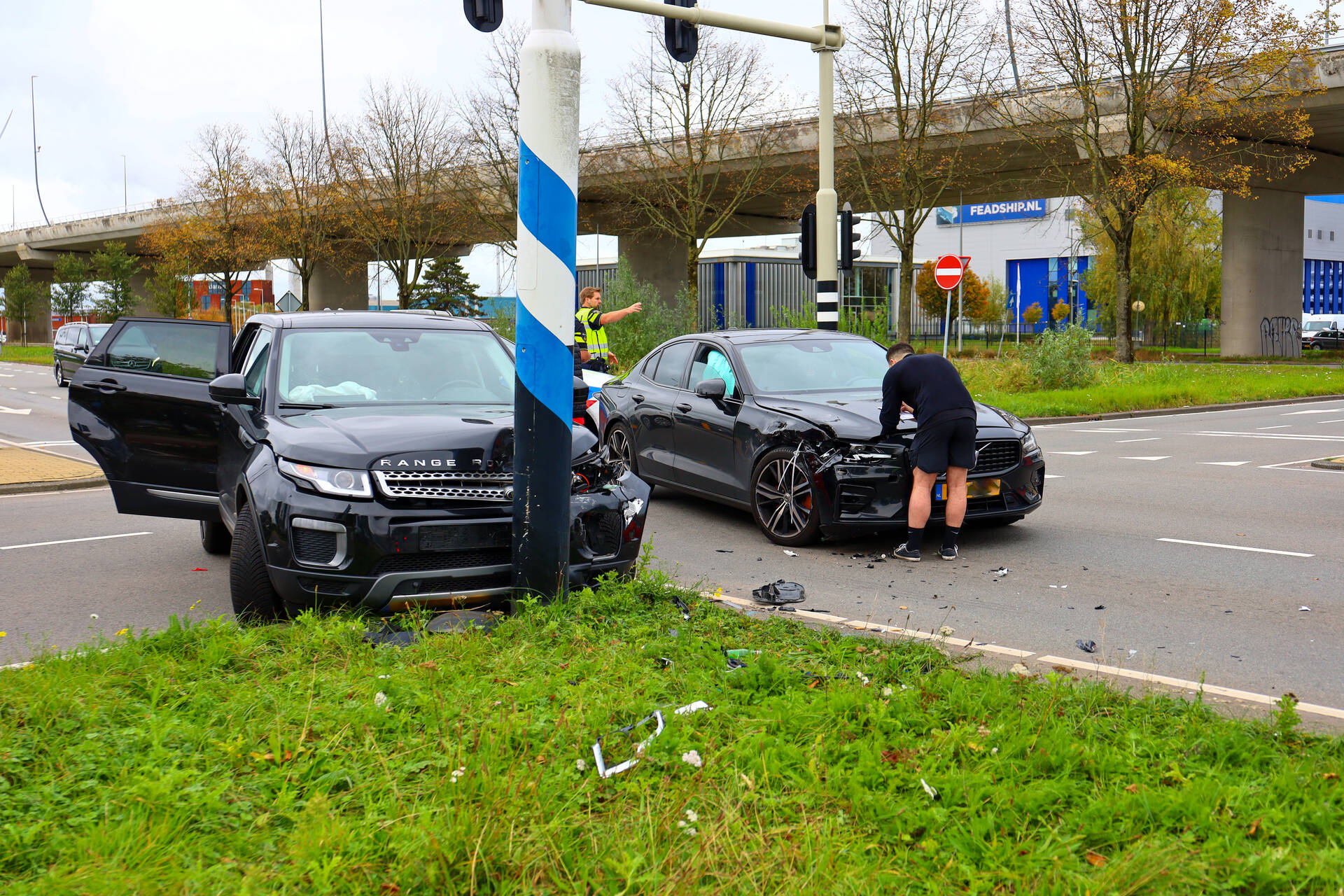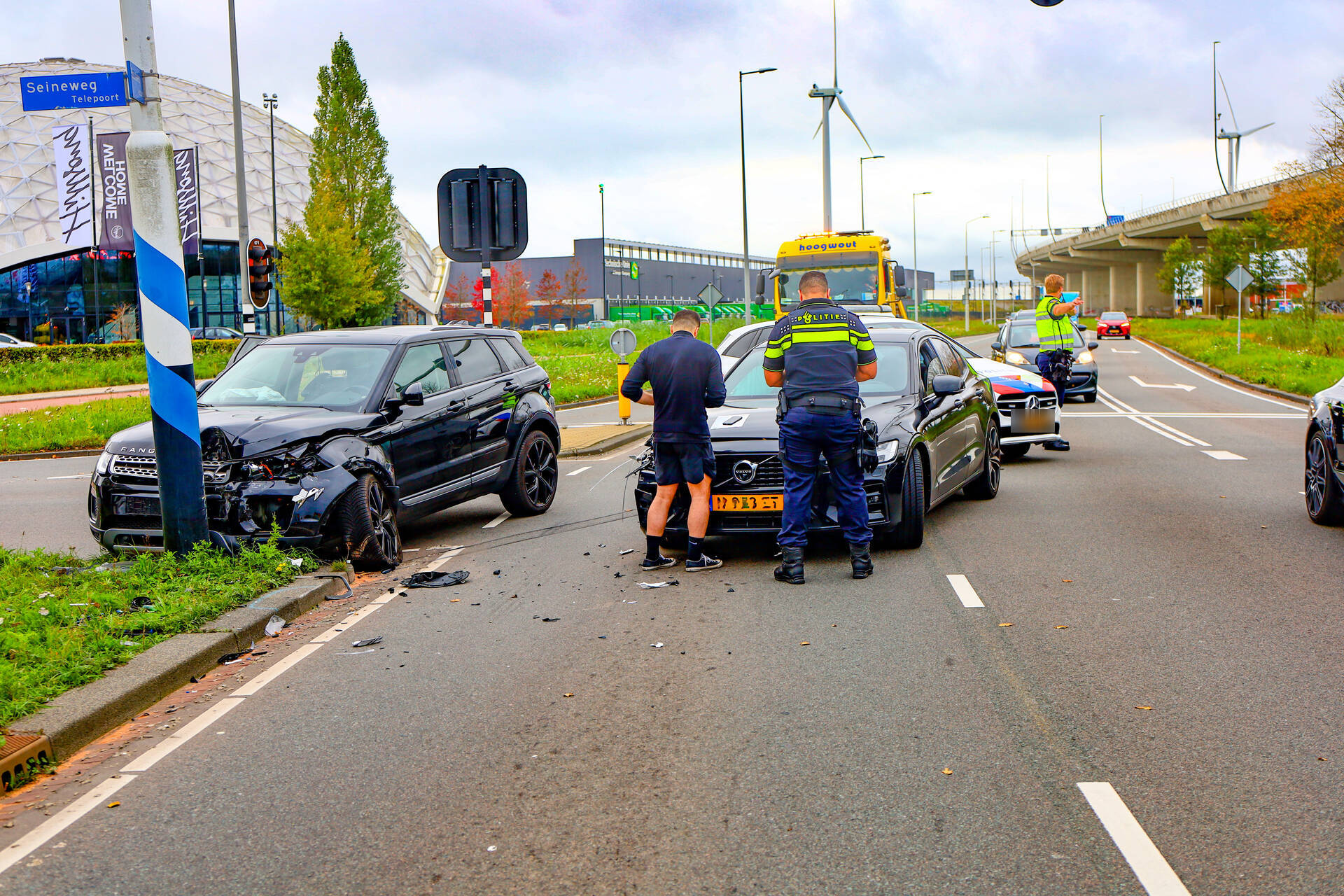 AMSTERDAM - Zondagmiddag 12 oktober iets voor 15.10 uur is een ongeval ontstaan aan de Basisweg in Amsterdam. Bij de botsing raakten twee auto's ernstig beschadigd. Eén van de voertuigen eindigde tegen een verkeerspaal, terwijl de weg tijdens het afhandelen van het ongeval afgesloten was. Er raakte niemand gewond. Een onlangs geplaatst kunstwerk in de vorm van een boot op de rotonde bleef gelukkig gespaard van schade.