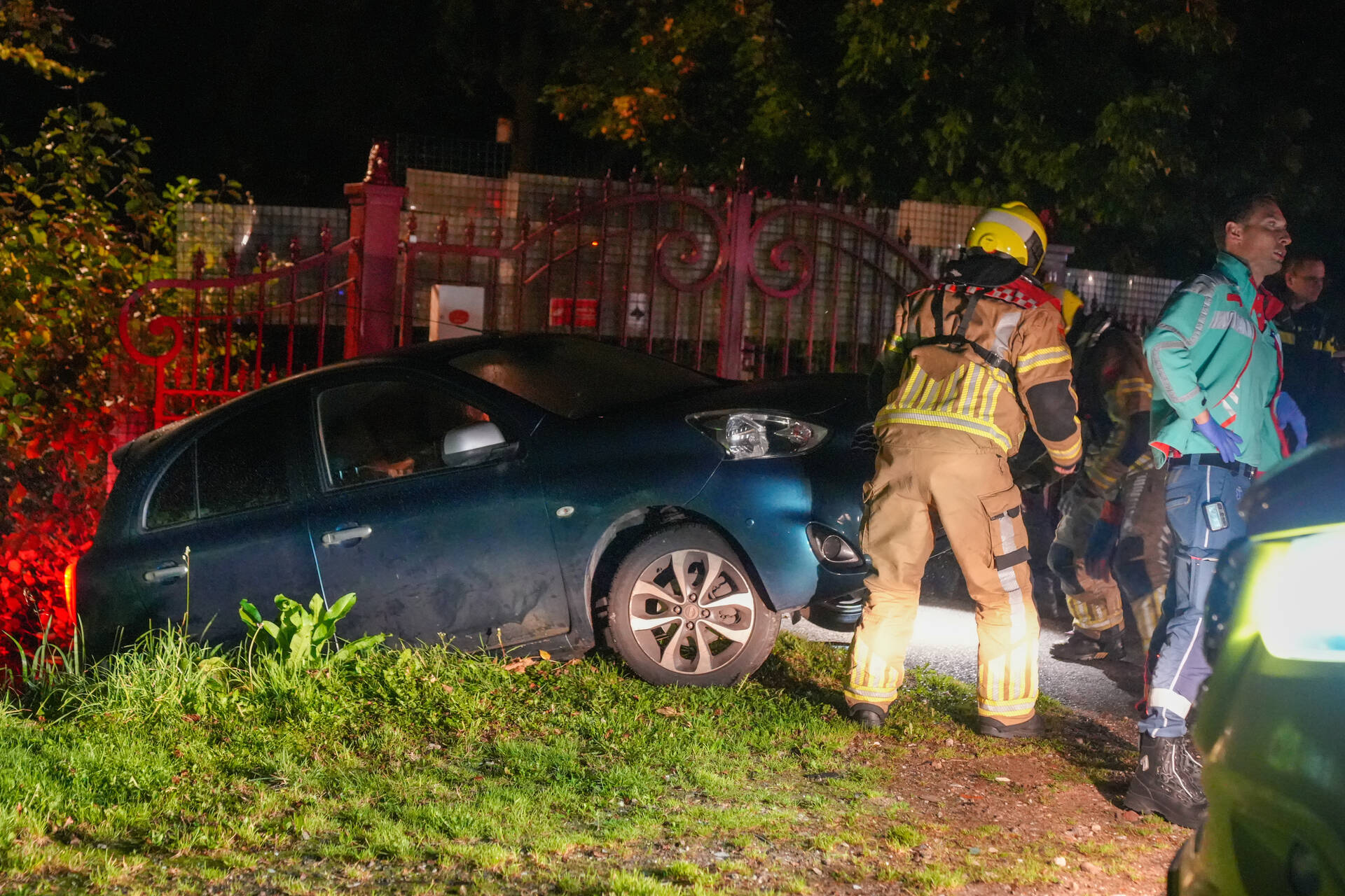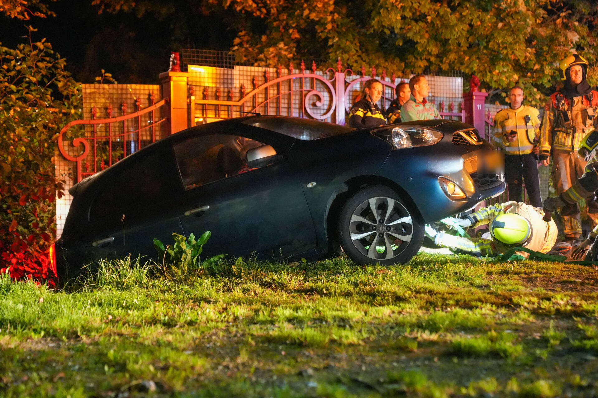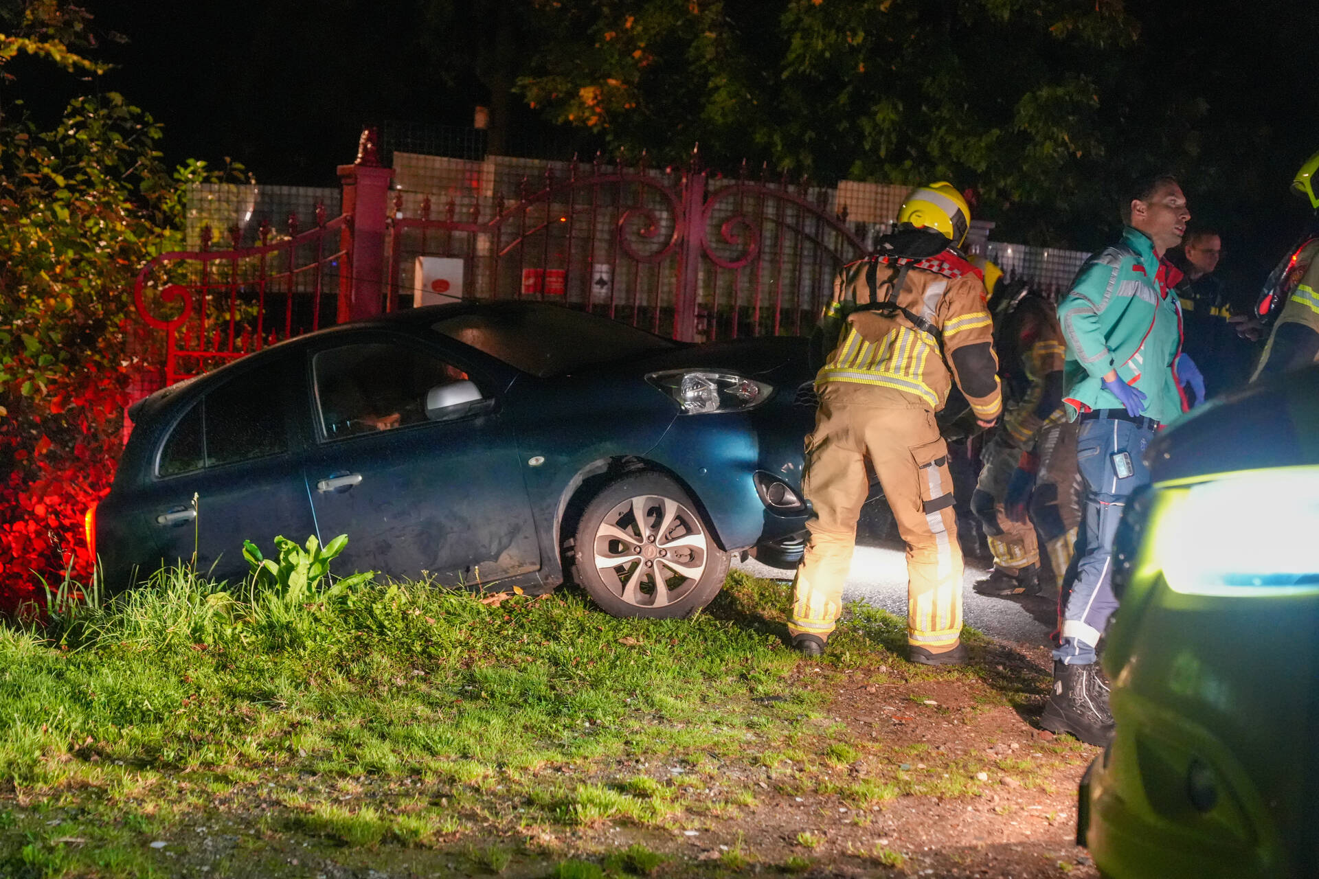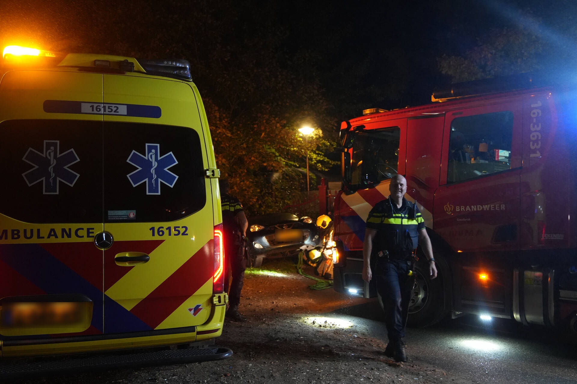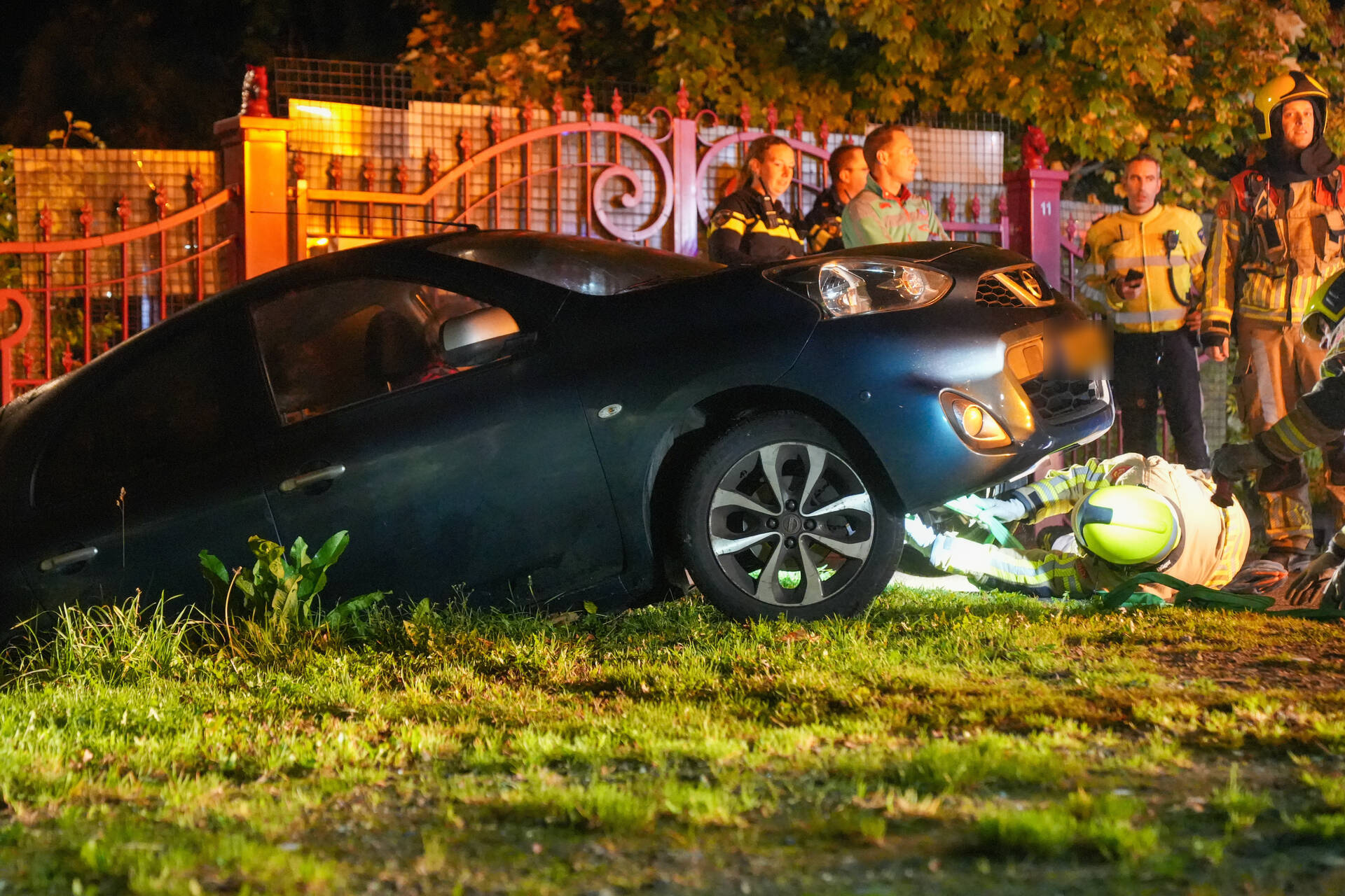 Een personenauto was in de berm geraakt en kwam deels in het water terecht. De brandweer heeft een persoon uit de auto gehaald nadat de auto geborgd was aan een tankautospuit.