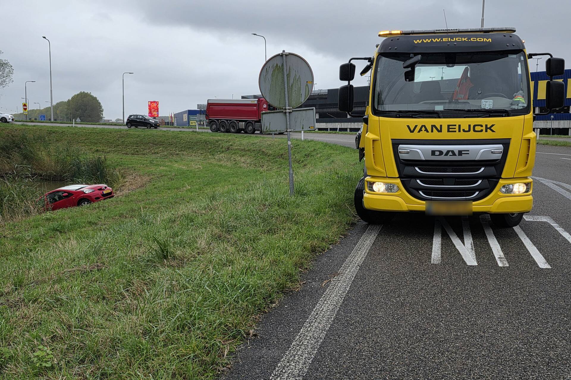 DUIVEN - Woensdagochtend 15 oktober niet lang voor 11.00 uur heeft een ongeval plaatsgevonden op de Rijksweg A12 R 136,0 A - Westervoort 27 ter hoogte van Duiven. Een automobilist verloor door onbekende oorzaak de macht over het stuur en kwam in een slip terecht, waarna het voertuig in het water belandde. De bestuurder kwam met de schrik vrij en raakte niet gewond. Een berger heeft het voertuig uit het water gesleept.