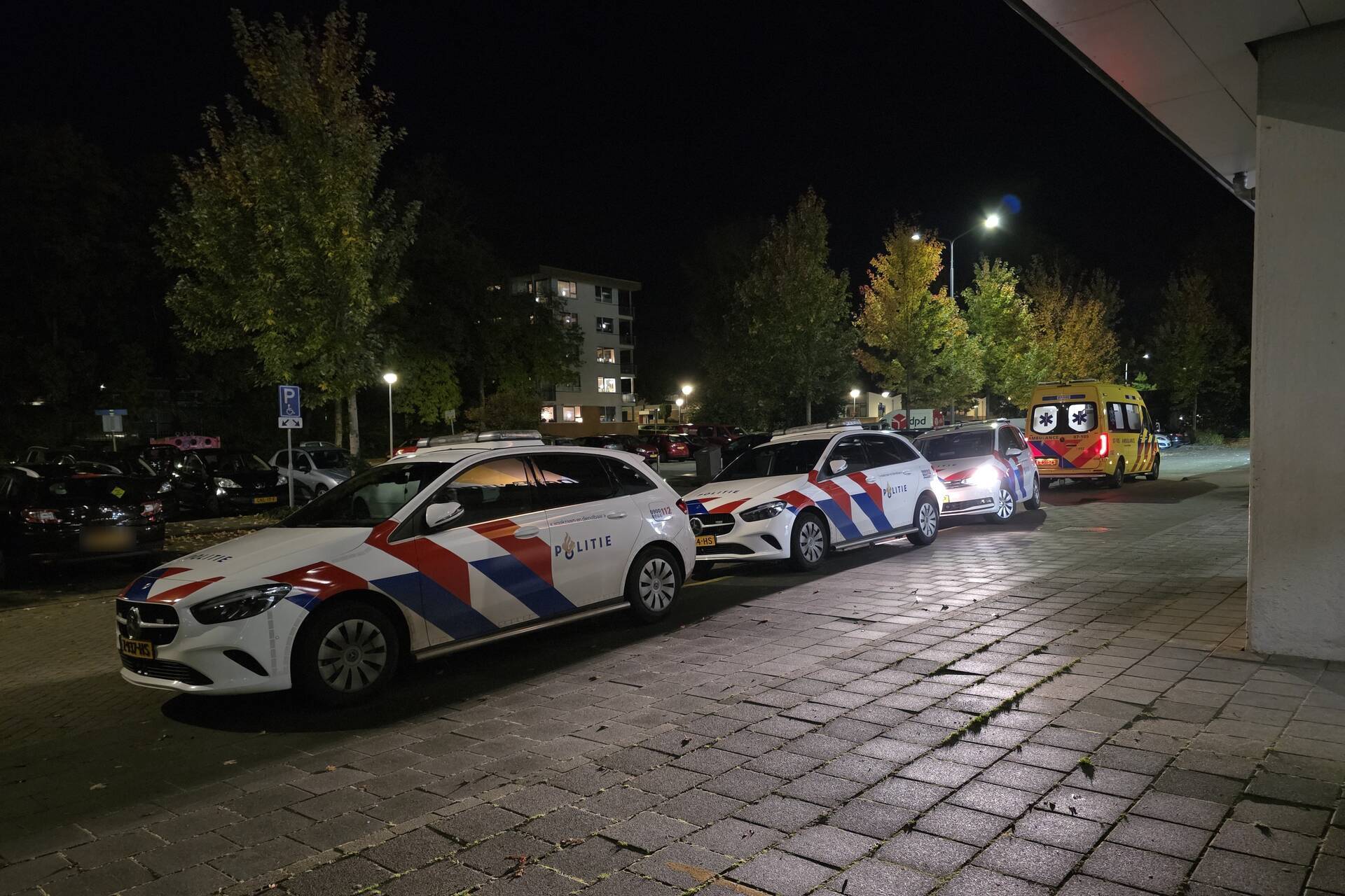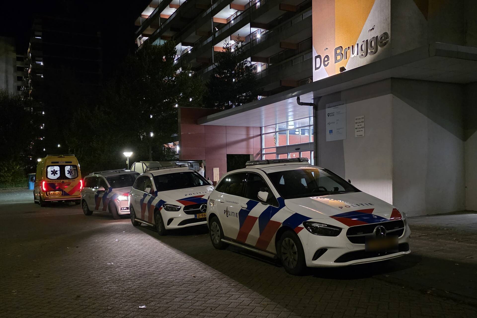 Meerdere politie-eenheden, inclusief een hondengeleider, kwamen snel ter plekke. Ook een ambulance arriveerde bij het flatgebouw. De politie heeft, voor zover bekend, niemand aangehouden. Wel werd een persoon gecontroleerd door het ambulancepersoneel.