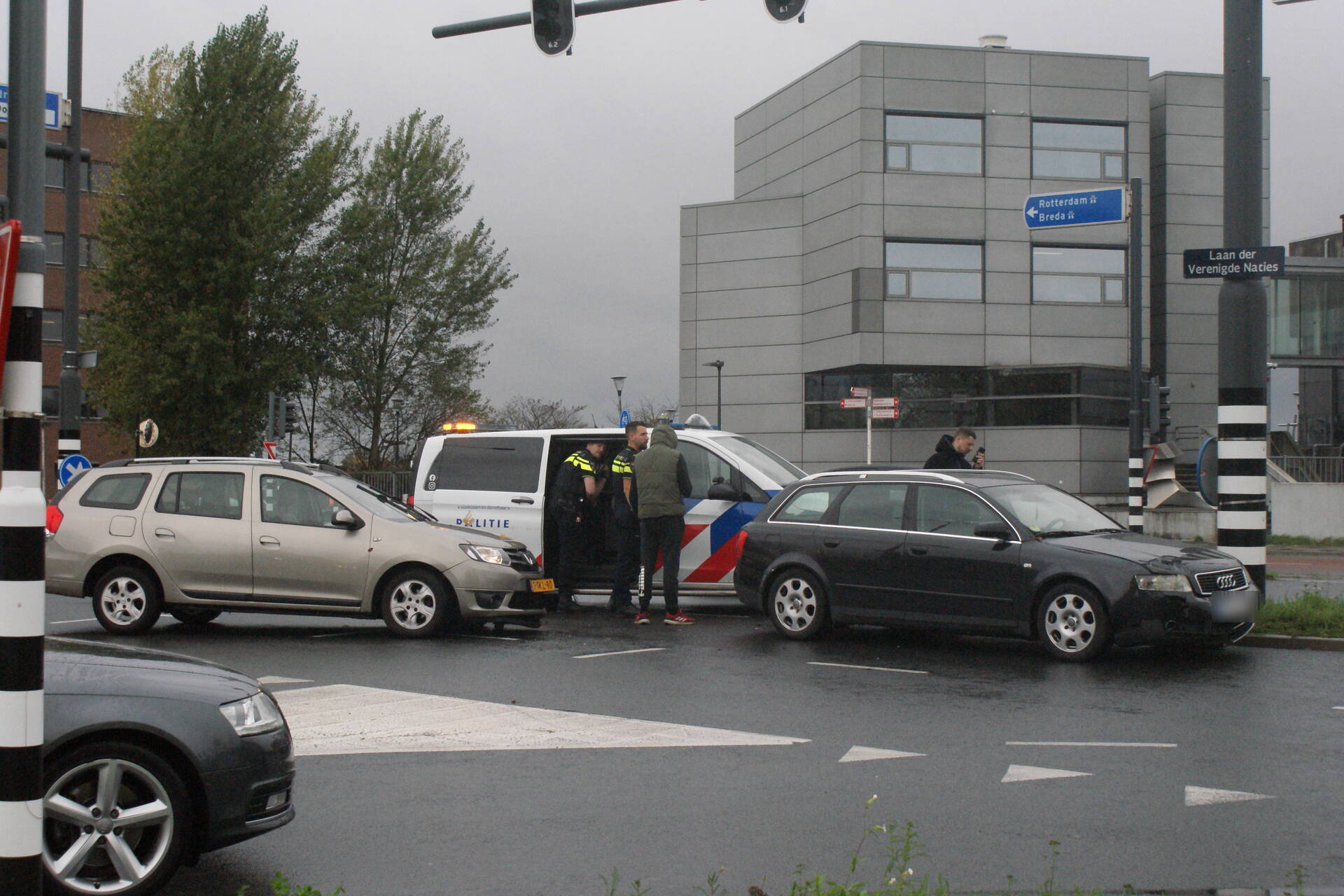 Rotterdam - Politie massaal ingezet na melding vuurwapen bij ruzie na kop-staartbotsing