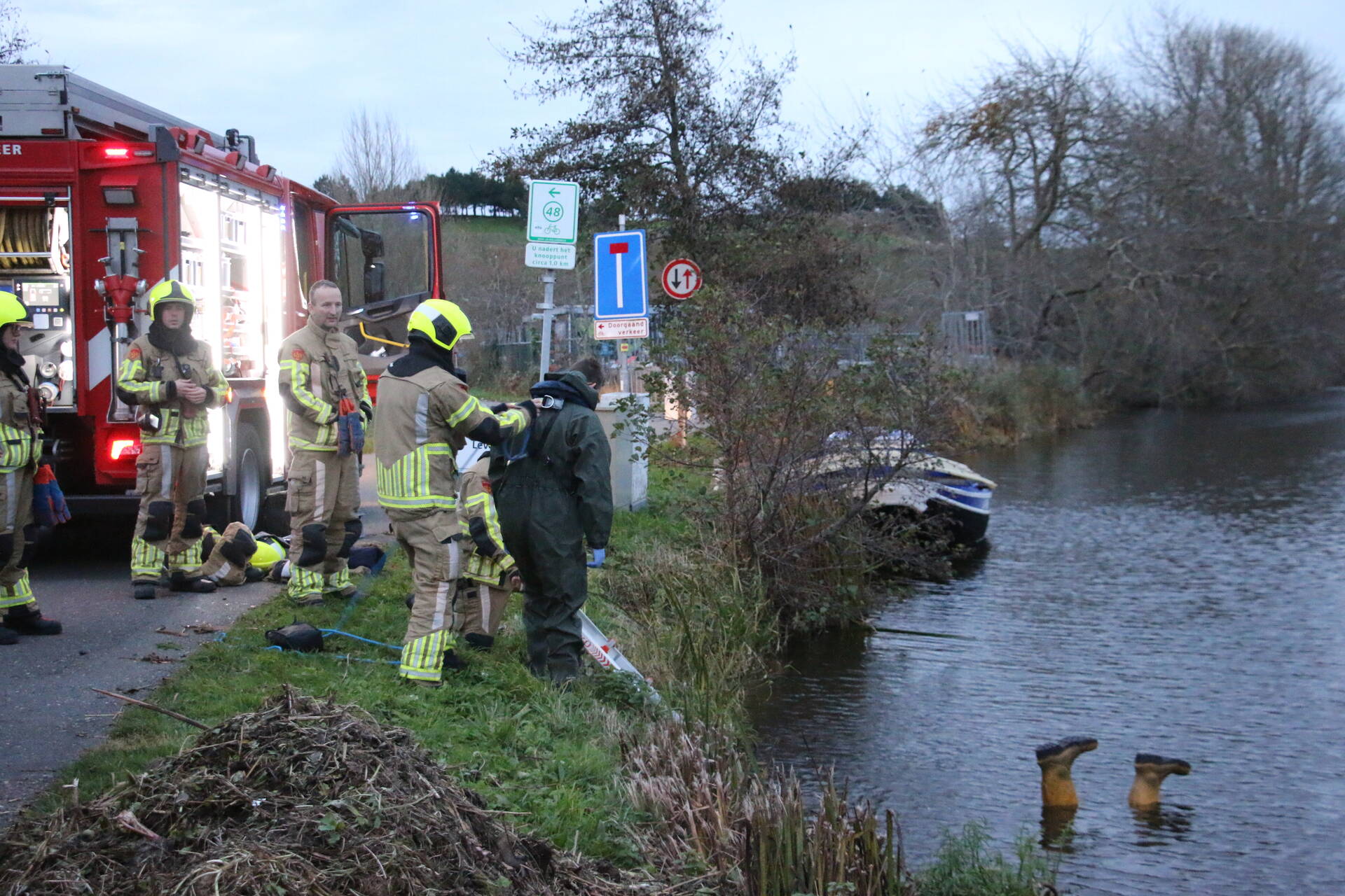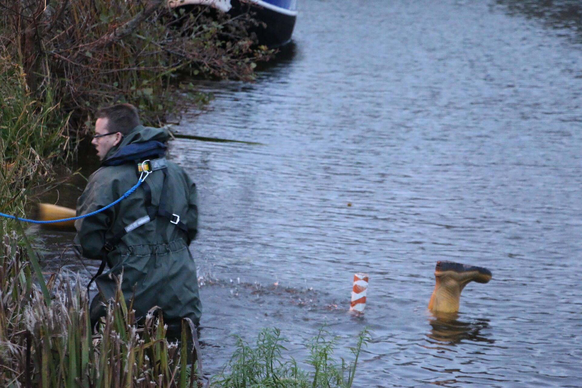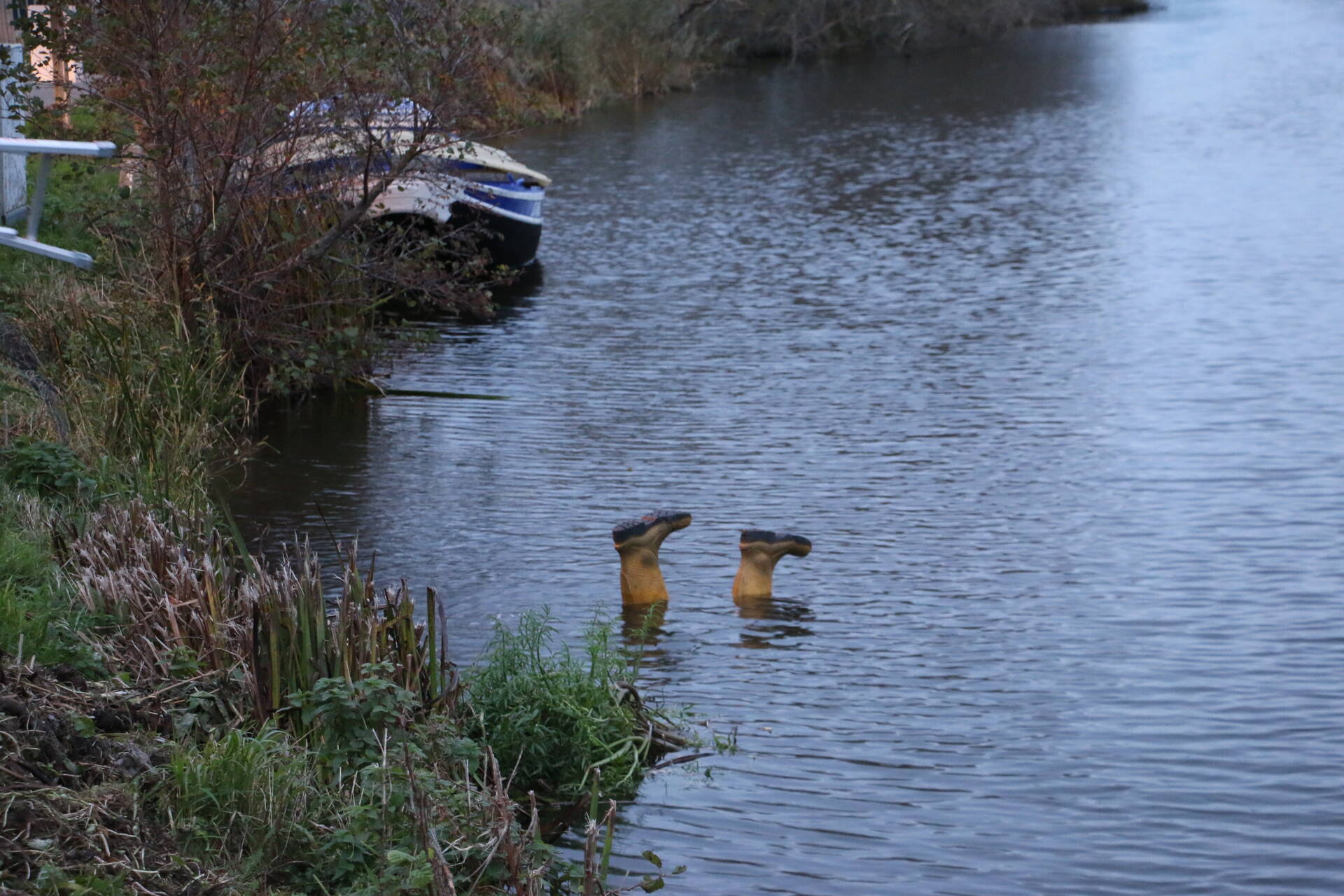 Twee laarzen die ondersteboven in het water lagen, trokken de aandacht van omstanders. Zij schakelden direct de hulpdiensten in. De politie en brandweer reageerden snel. De brandweer ging direct het water in om een mogelijke redding uit te voeren, maar het bleek een misverstand. De laarzen waren omgekeerd op stokken in het water geplaatst. Dit incident eindigde met een bijzondere, maar grappige aanblik.