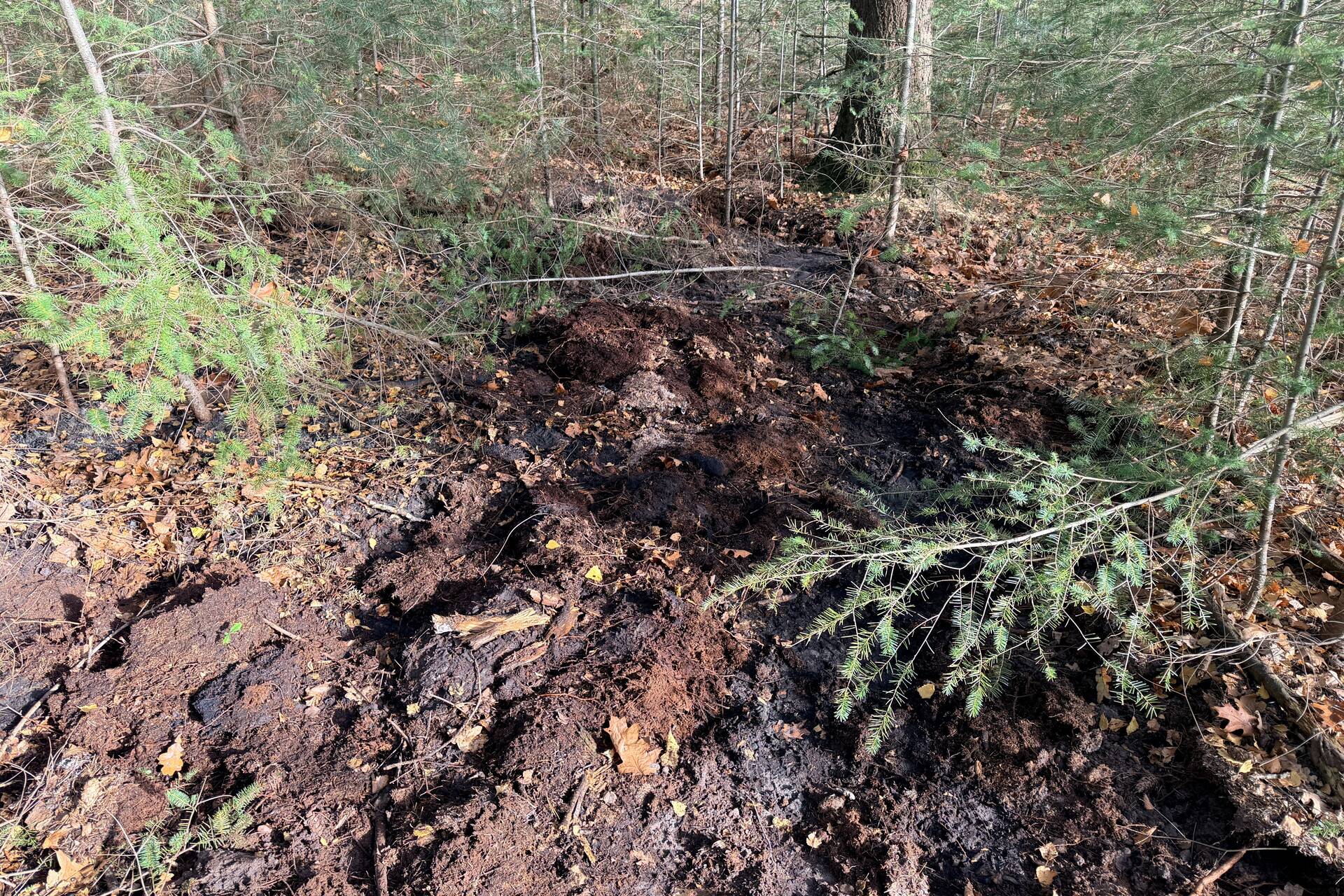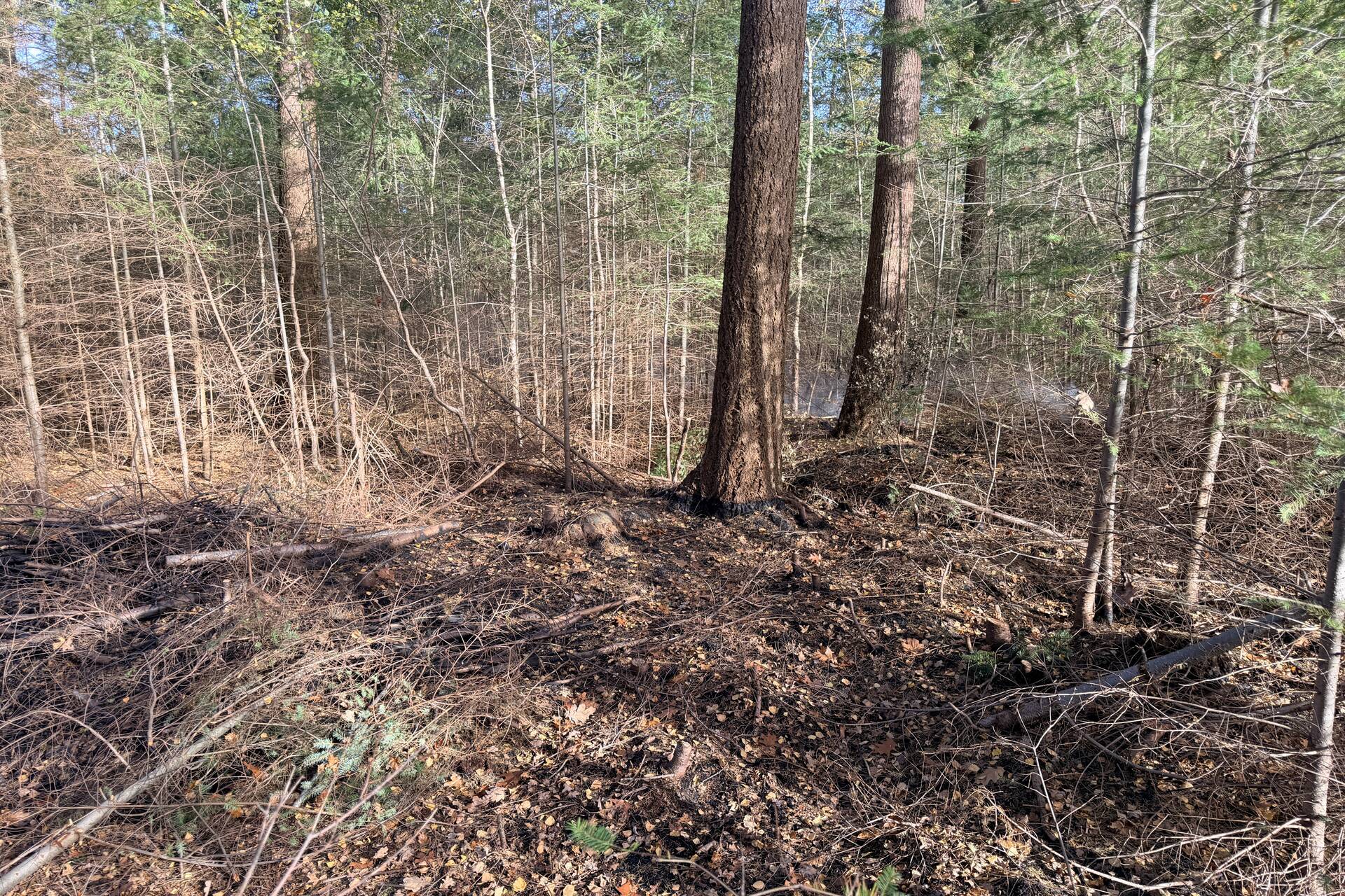 Ongeveer 30 vierkante meter bos stond in brand, en het vuur begon zich ondergronds verder te verspreiden. De hulpdiensten werden snel ingeschakeld om de brand te bestrijden. Door het incident waren er geen gewonden te melden.