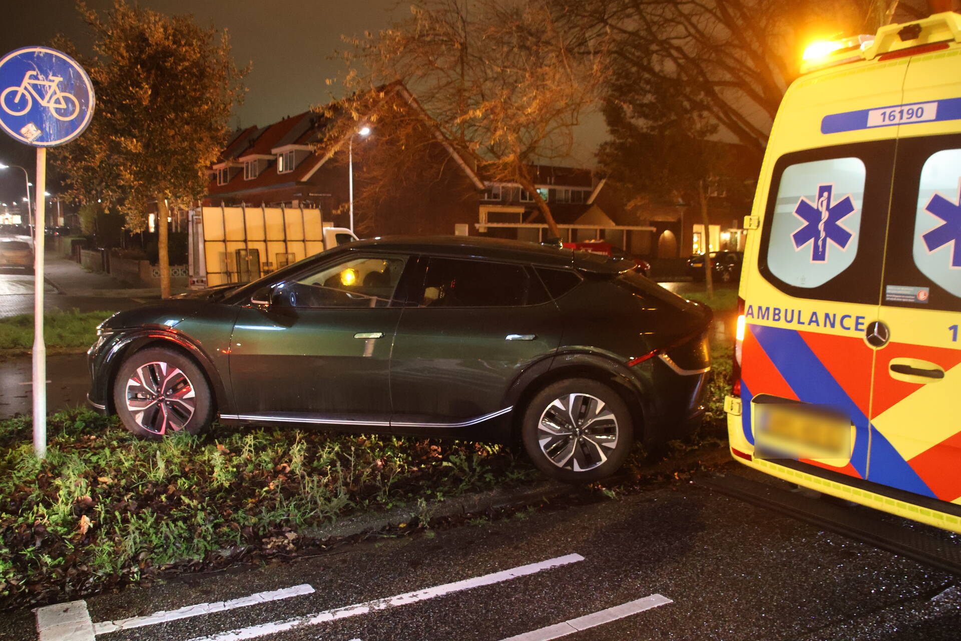 Katwijk - Auto komt op zijkant terecht door gladheid