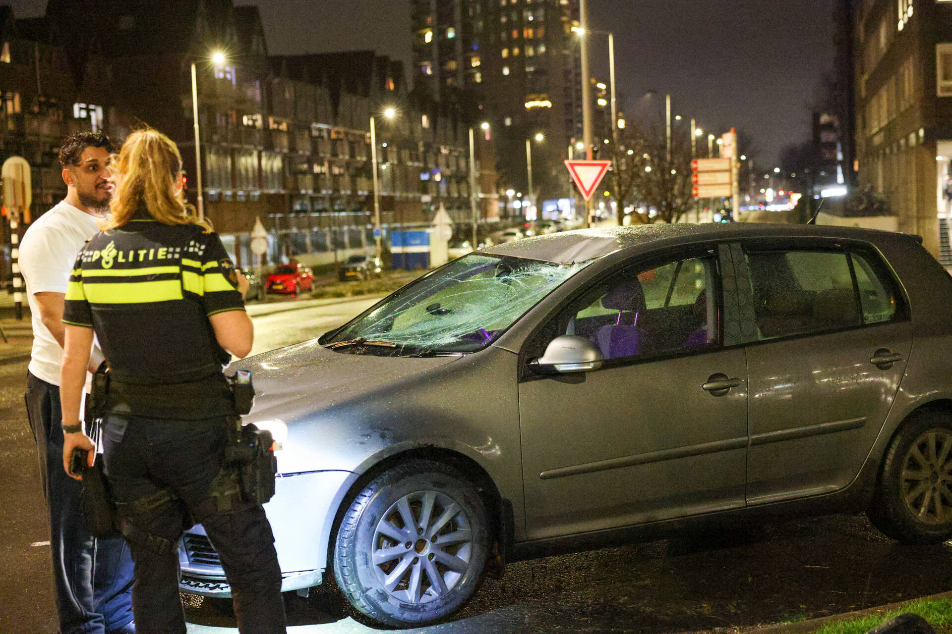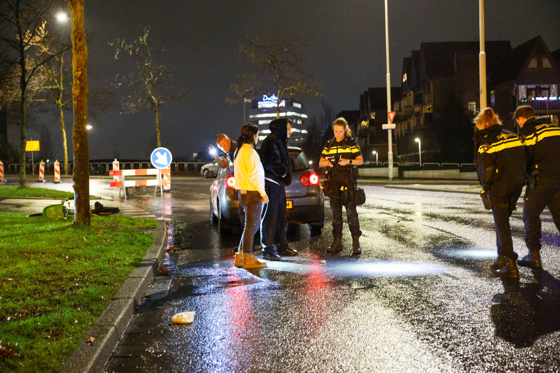 De auto raakte beschadigd en mocht niet verder rijden. De drie inzittenden moesten hun weg te voet vervolgen.