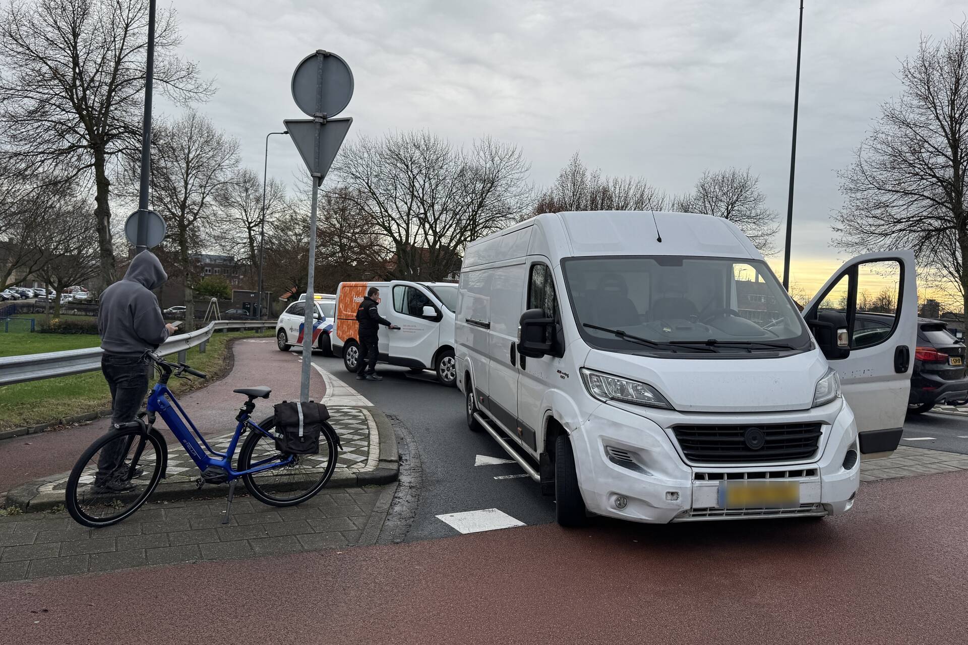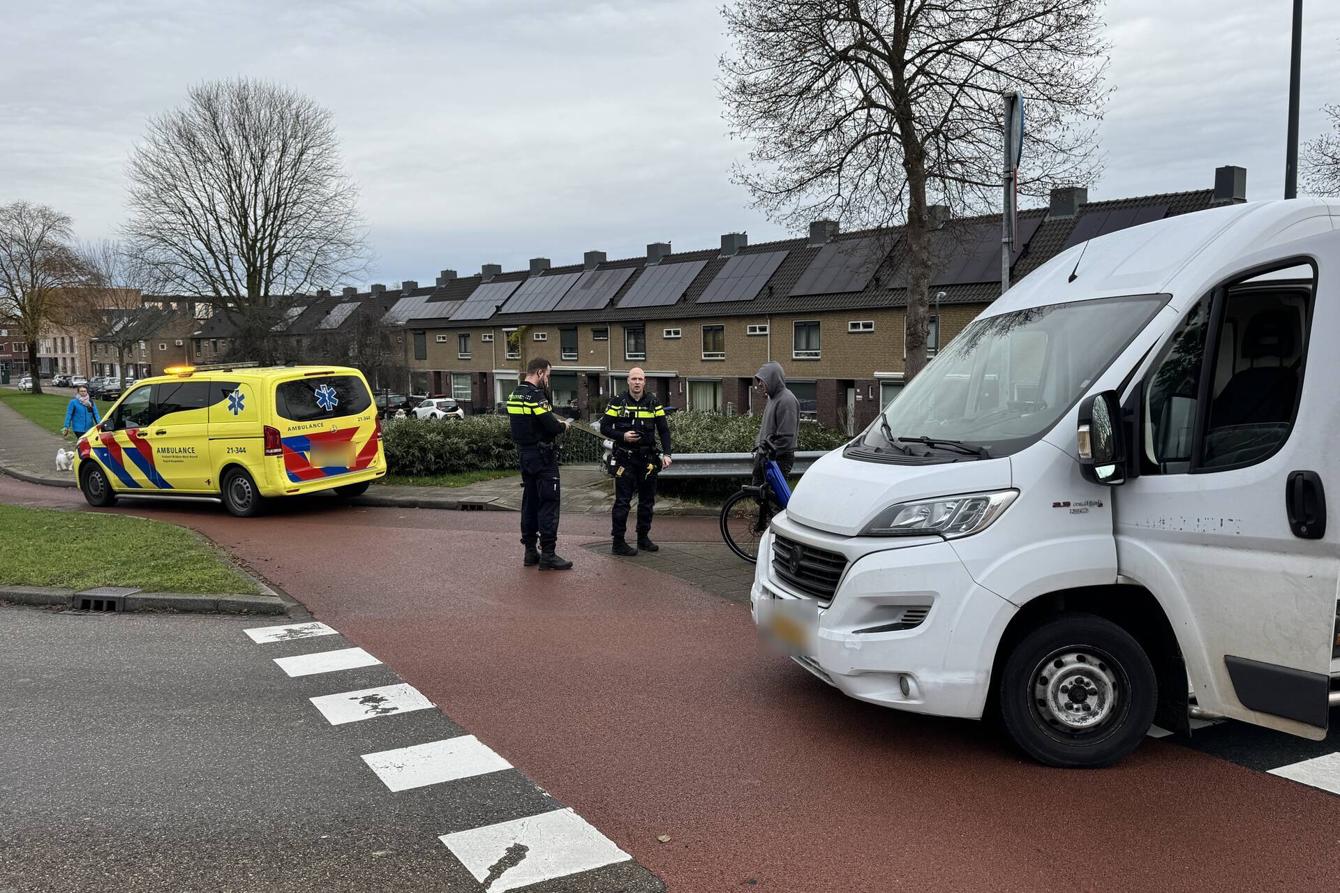 Een fietser werd aangereden door een pakketbezorger en raakte gewond. De gewonde fietser is in de ambulance behandeld. De politie heeft een rapport opgesteld van het incident. De oprit vanuit de Maastrichterweg was enige tijd afgesloten.