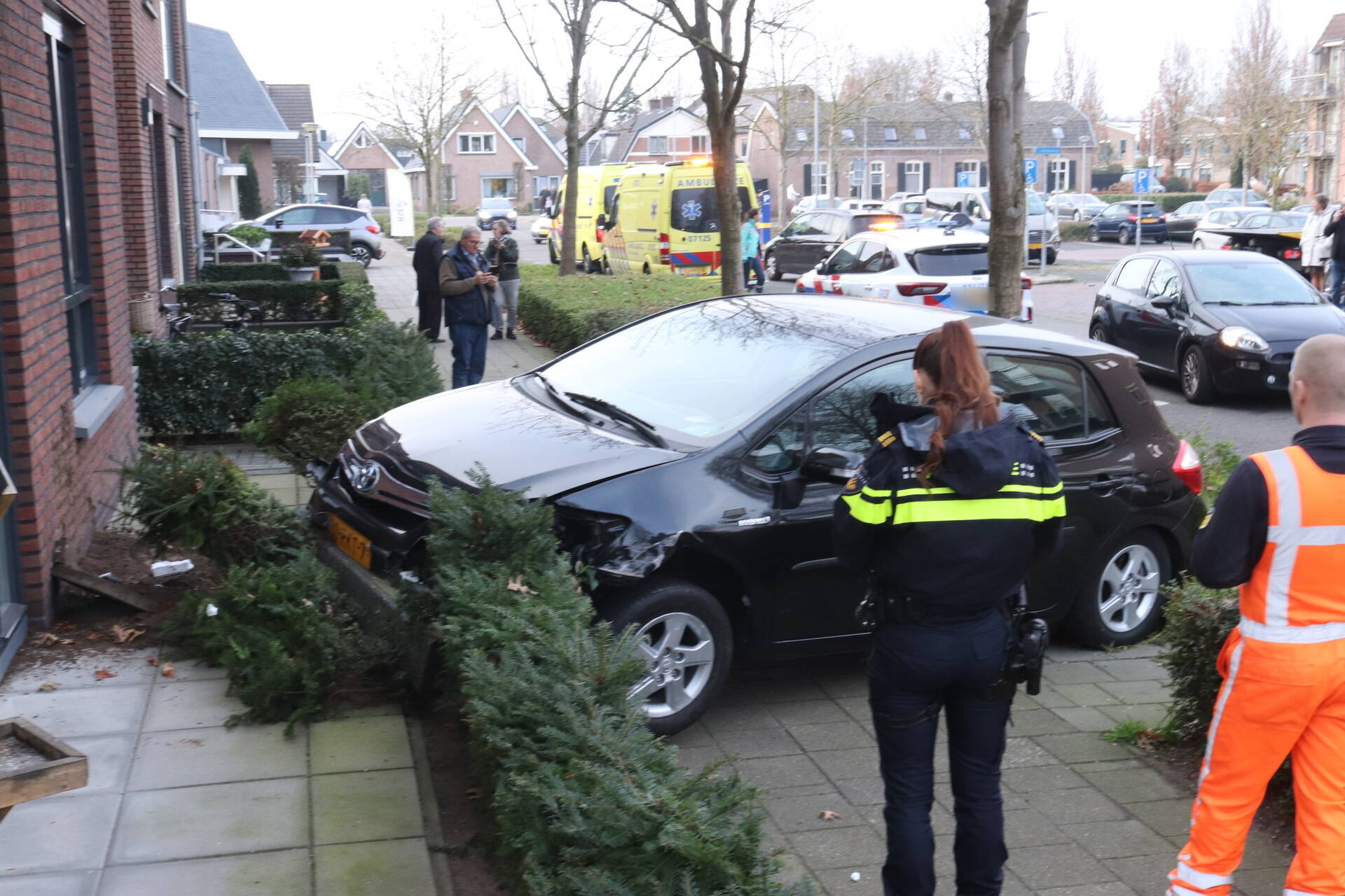 De bestuurder verloor de controle over de auto, die een spoor van vernielingen achterliet. Het is onduidelijk hoe dit heeft kunnen gebeuren. De bestuurder wordt onderzocht door de ambulancedienst. Nadat de hulpdiensten arriveerden, werd de situatie in de omgeving in kaart gebracht.