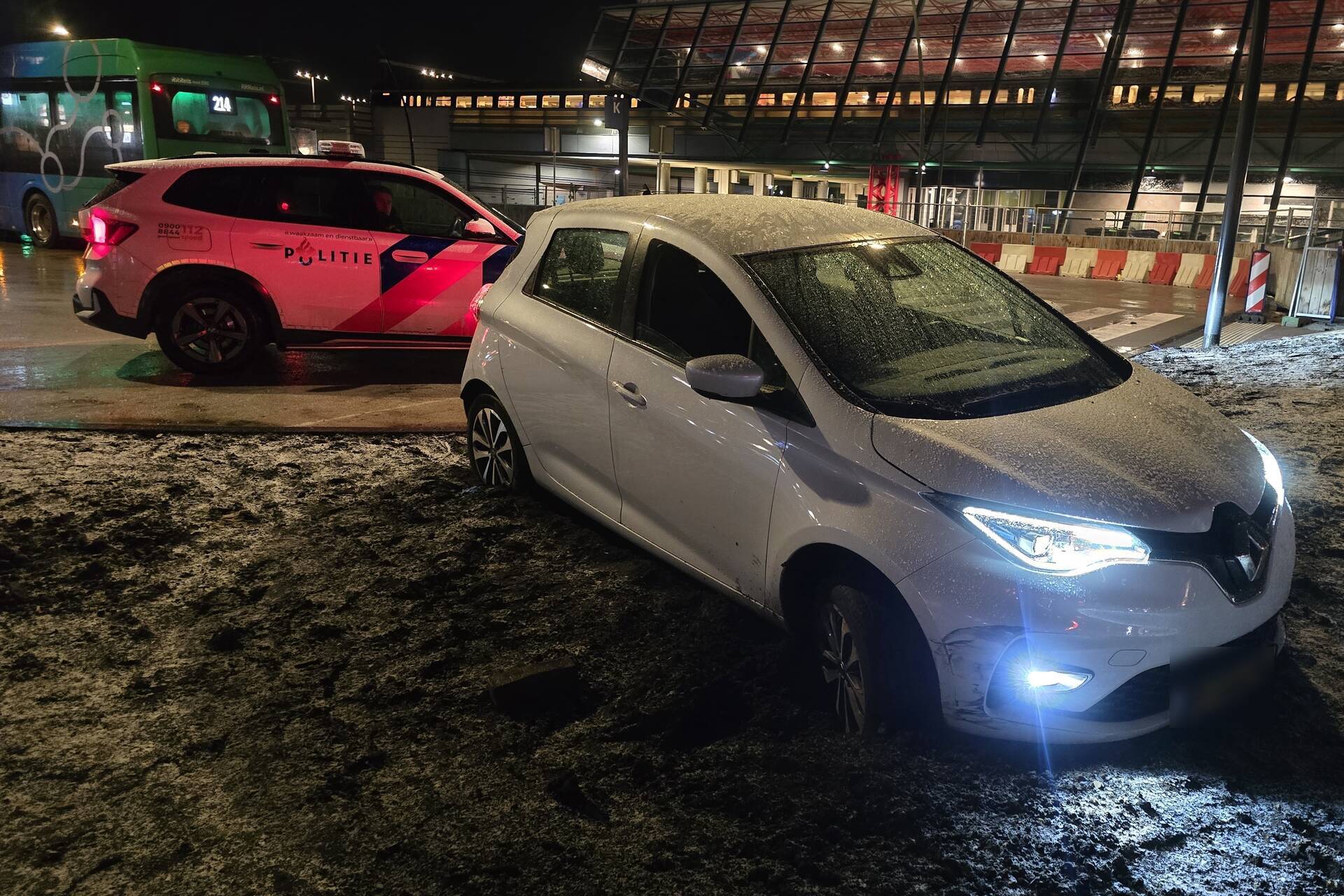 LELYSTAD - Vrijdagavond 2 januari om 23.10 uur is een automobilist vast komen te zitten met zijn auto aan de Stationsplein in Lelystad.