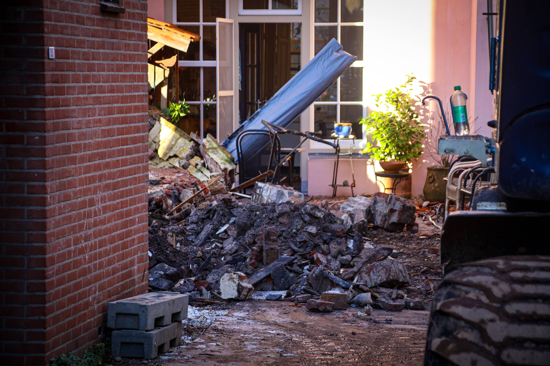 Totale verwoesting na explosies, schade bij daglicht duidelijk te zien