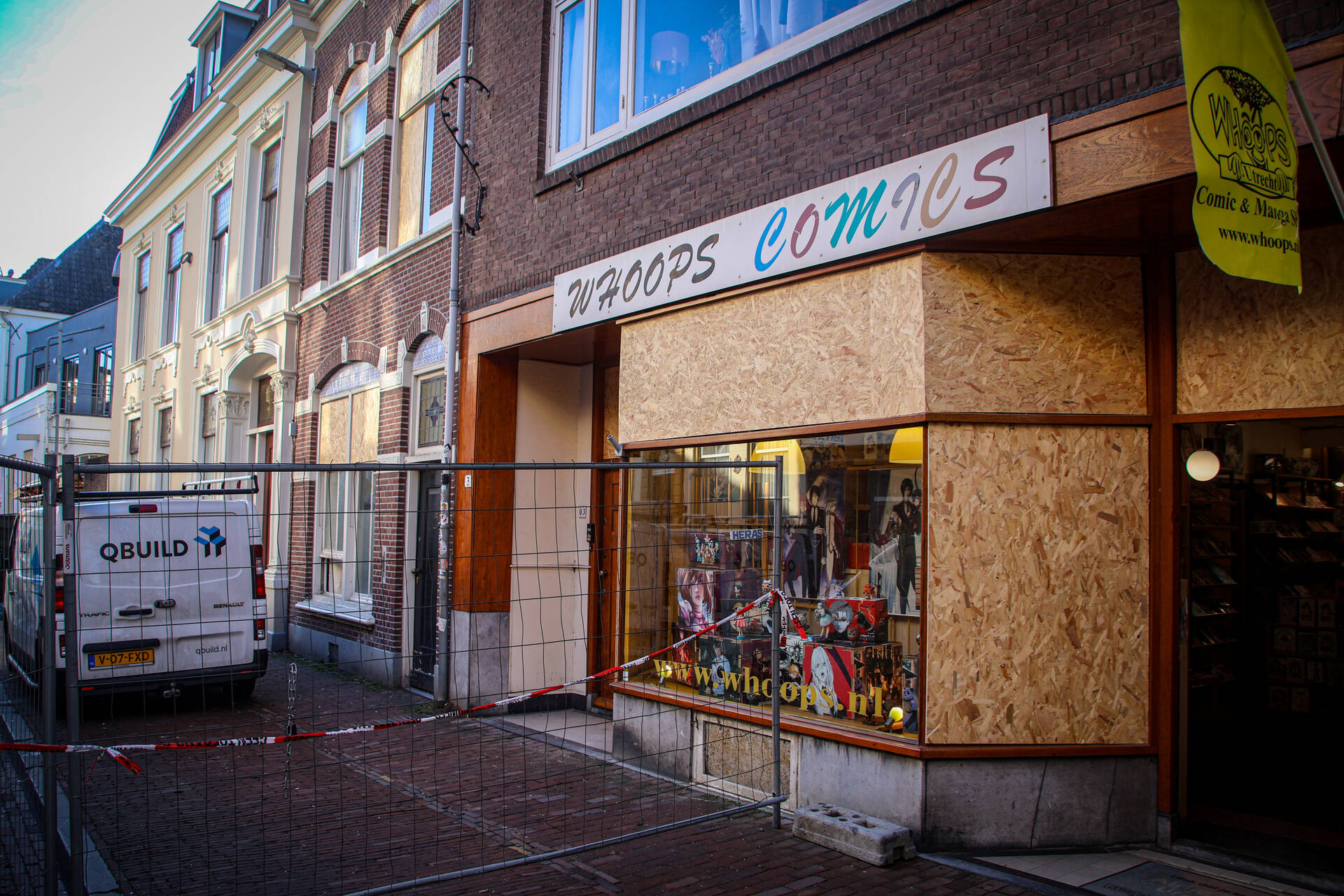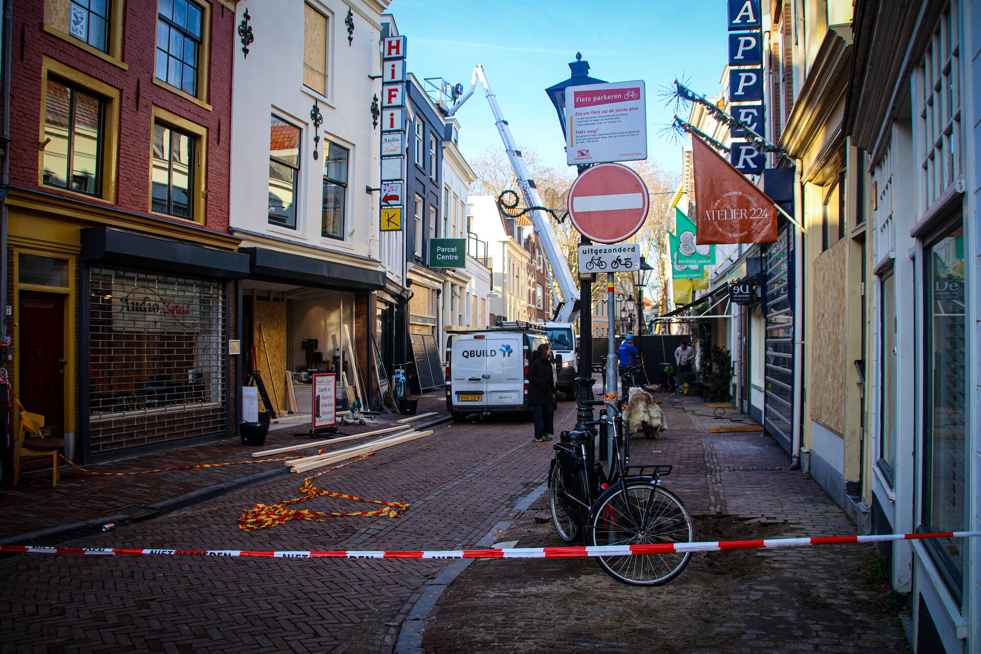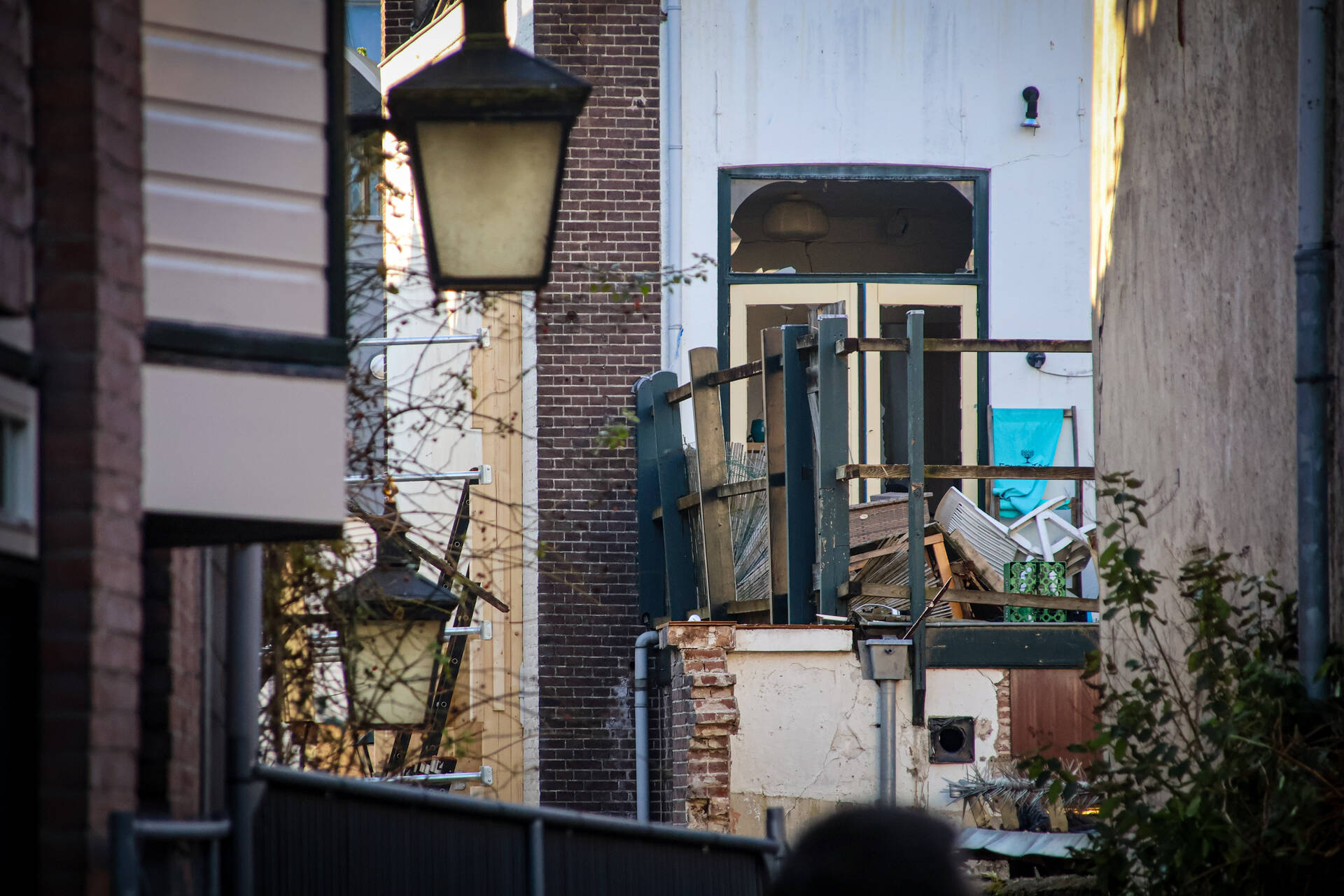 UTRECHT - Aan de Visscherssteeg in Utrecht is op zaterdagmiddag 17 januari de schade duidelijk te zien na de explosies van donderdag 15 januari.