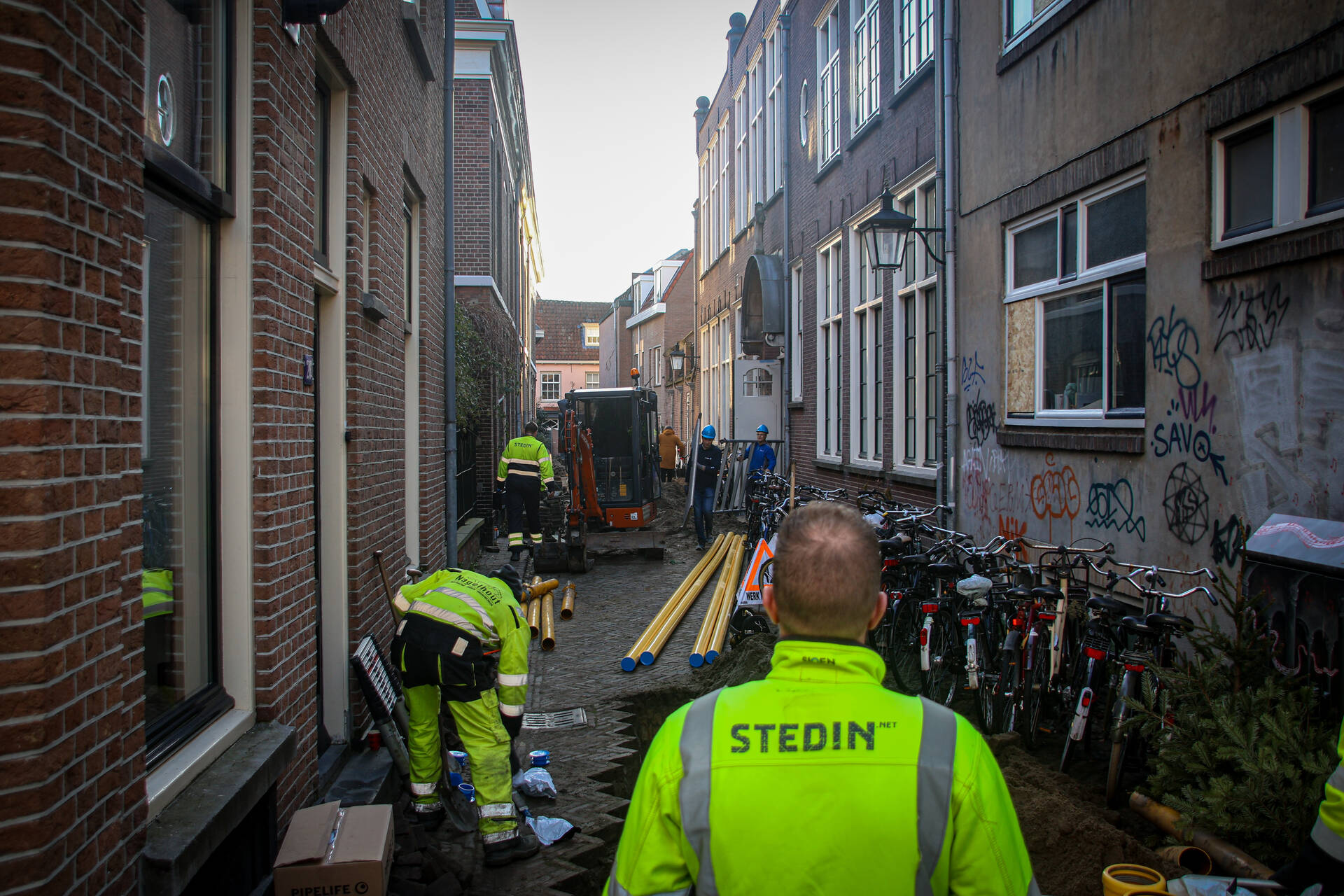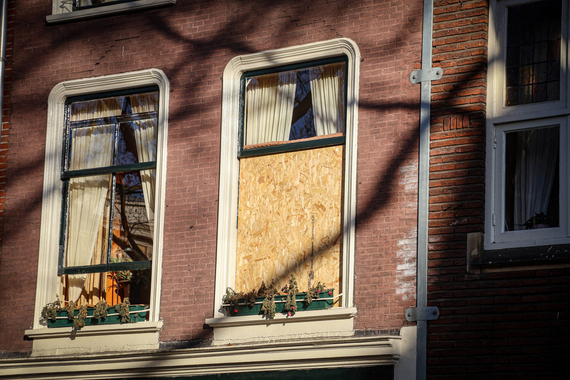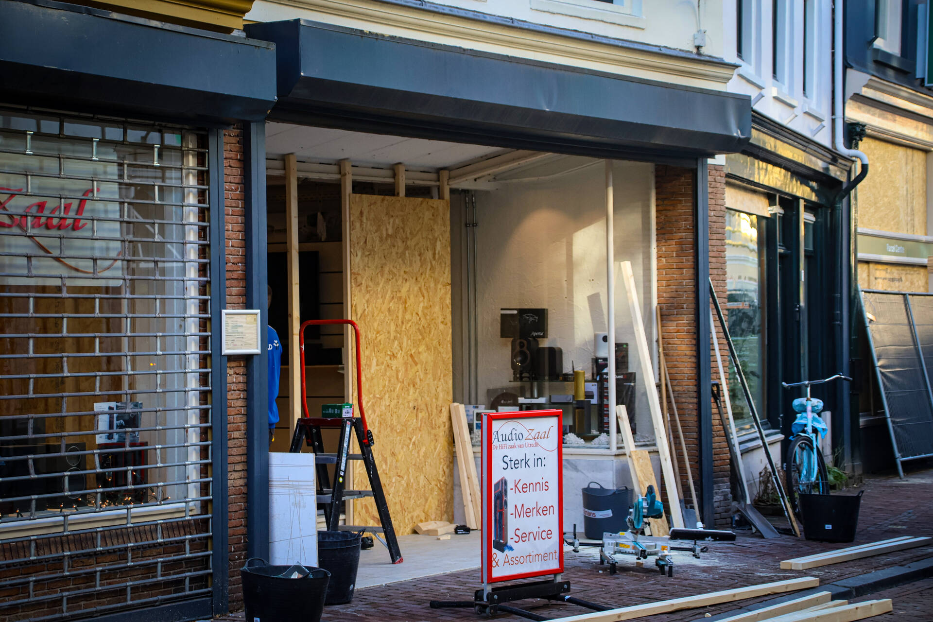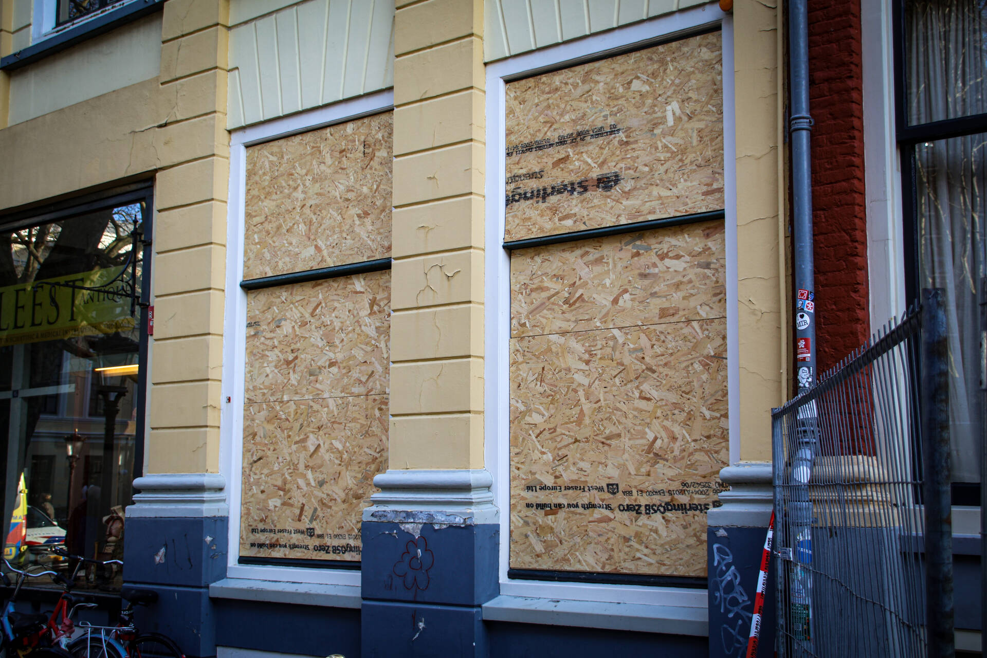 UTRECHT - Aan de Visscherssteeg in Utrecht is op zaterdagmiddag 17 januari de schade duidelijk te zien na de explosies van donderdag 15 januari.