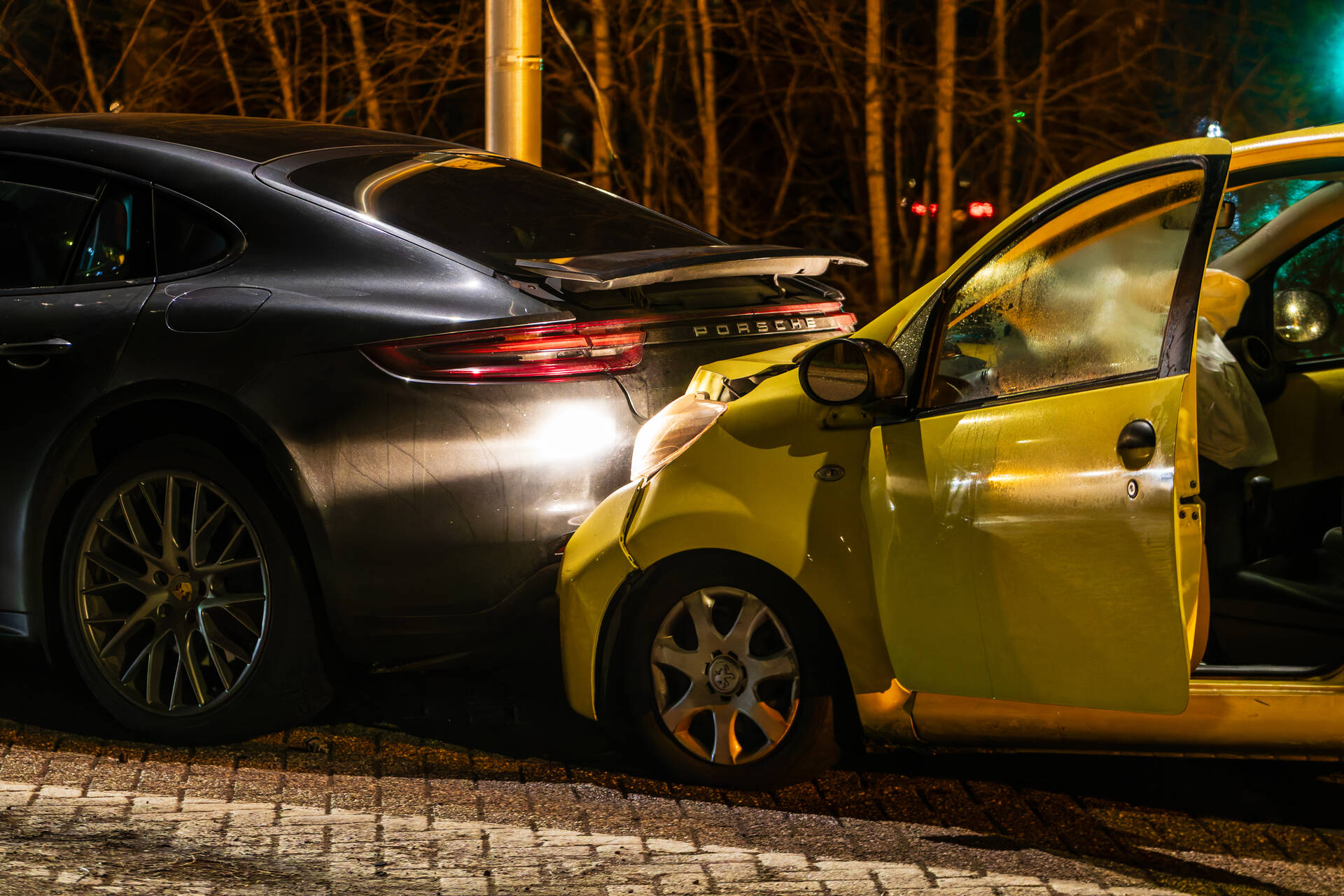 Een Porsche Panamera 4 E-Hybrid en een Peugot 107 zijn door een nog onbekende oorzaak op elkaar gebotst. De Porsche, met een nieuwwaarde van €136.100, liep enige schade op aan de achterzijde, de Peugot liep flike schade op aan de voorzijde. De politie was al snel aanwezig en heeft een onderzoek ingesteld naar de exacte toedracht van het ongeval.