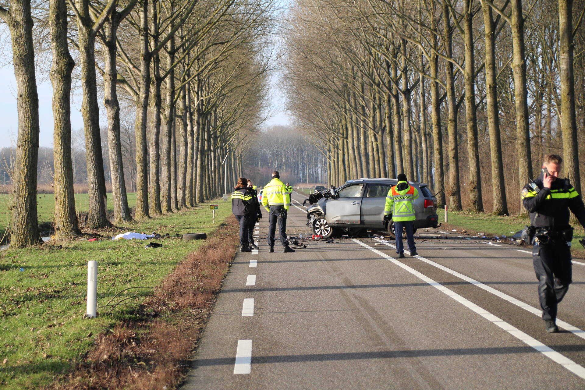 WIJNGAARDEN - Donderdagochtend 22 januari tegen 09.30 uur heeft zich een ongeval voorgedaan op de Provincialeweg - N214 4,5 bij Wijngaarden. Bij de zware aanrijding botste een auto tegen een boom, wat resulteerde in een enorme ravage. Meerdere ambulances en een traumahelikopter zijn opgeroepen om hulp te bieden. Helaas is de bestuurder van de auto overleden. De N214 is in beide richtingen afgesloten als gevolg van het ongeval. Dit zorgt voor verkeershinder in de omgeving, aangezien er geen doorgang mogelijk is en weggebruikers alternatieve routes moeten zoeken. De situatie ter plaatse wordt momenteel afgehandeld door de hulpdiensten.
