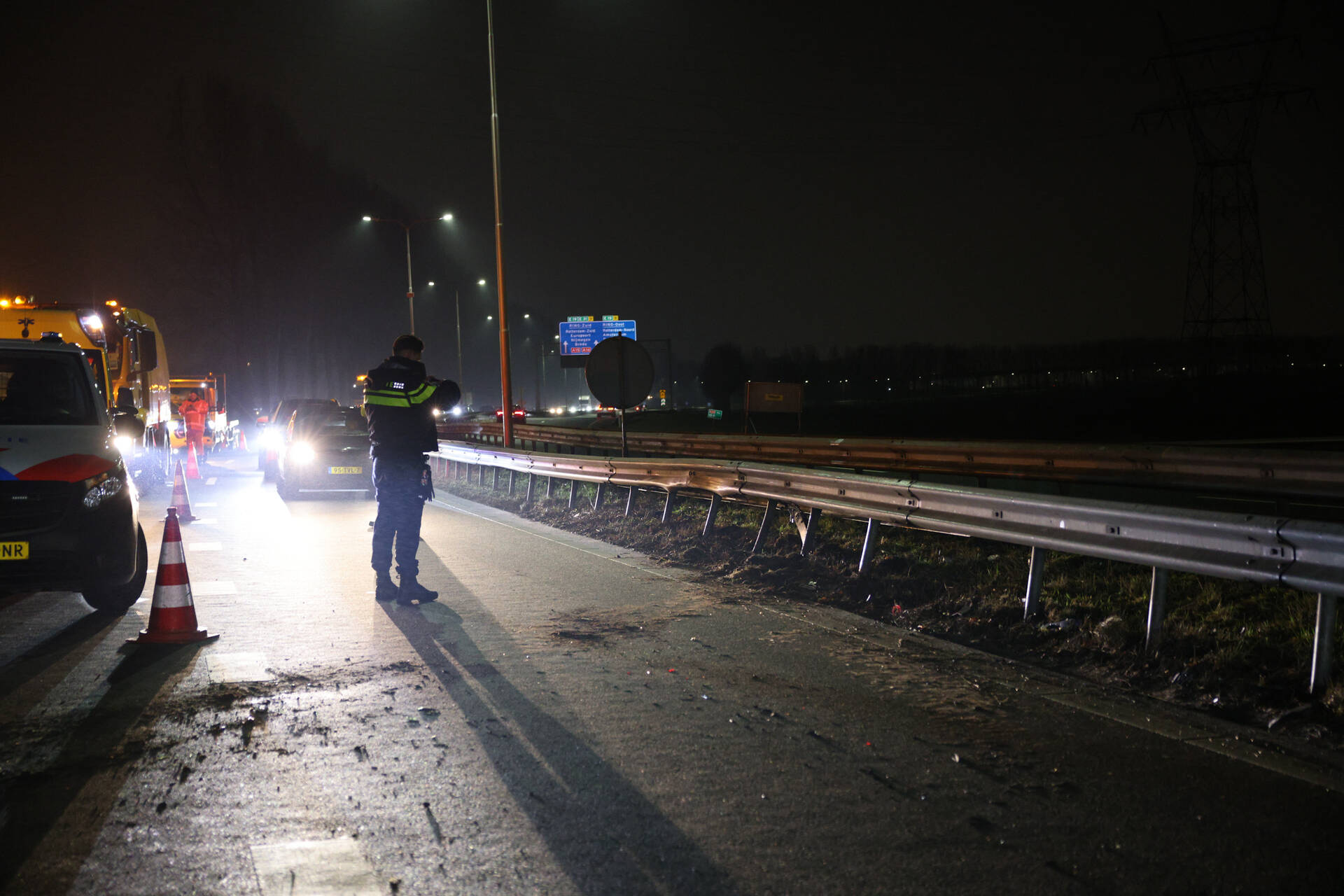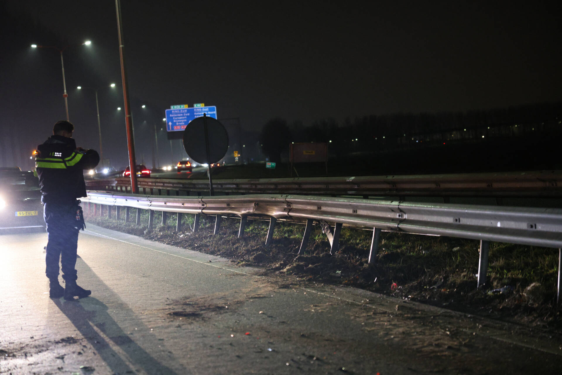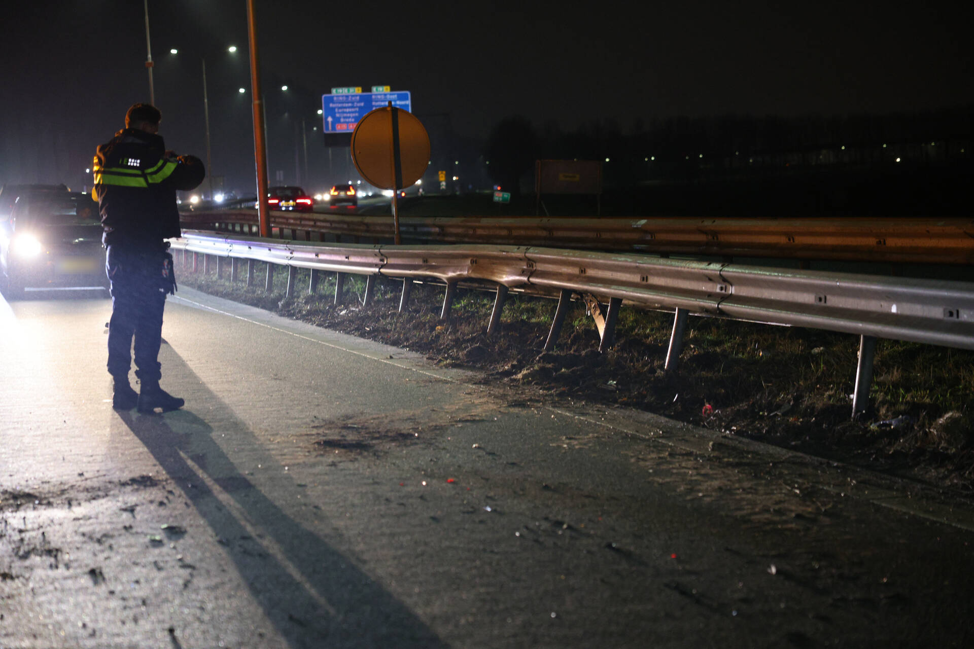 RIDDERKERK - Dinsdagavond 3 februari niet lang na 19.35 uur kwam het tot een ongeval op de Rijksweg A38 L 19,8 ter hoogte van Ridderkerk. Een bestuurder verloor de controle over het voertuig en botste tegen een vangrail. De bestuurder is met onbekend letsel naar het ziekenhuis overgebracht. Hoe het ongeval precies heeft kunnen gebeuren, is niet duidelijk. Daarna werd een speciale dienst ingeschakeld om de weg schoon te maken vanwege lekkages van vloeistof van de auto.