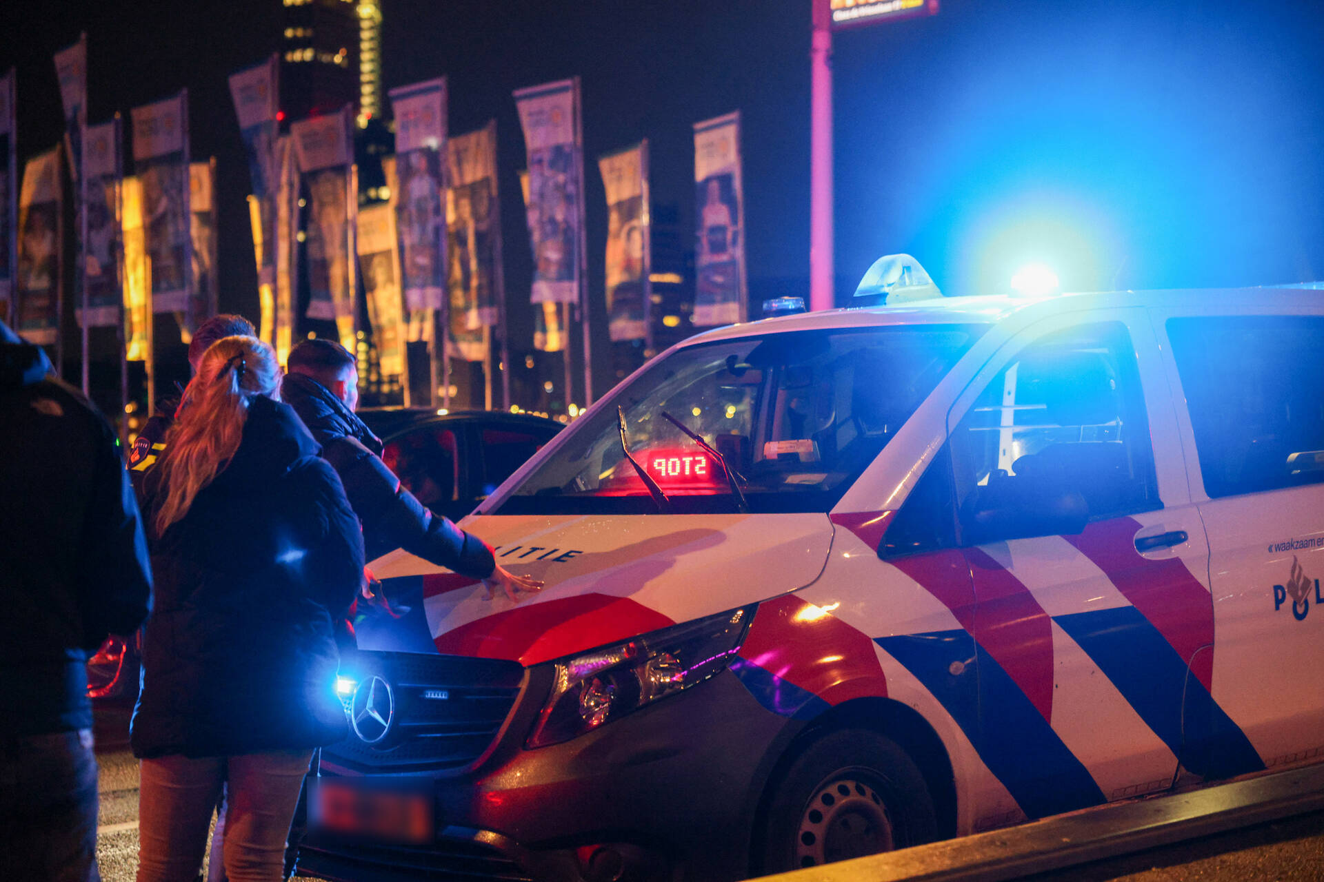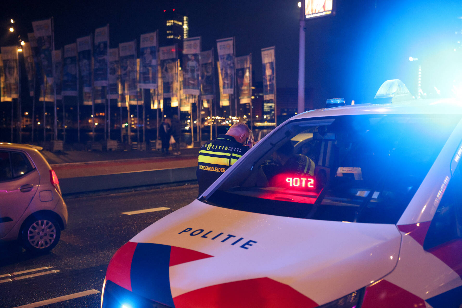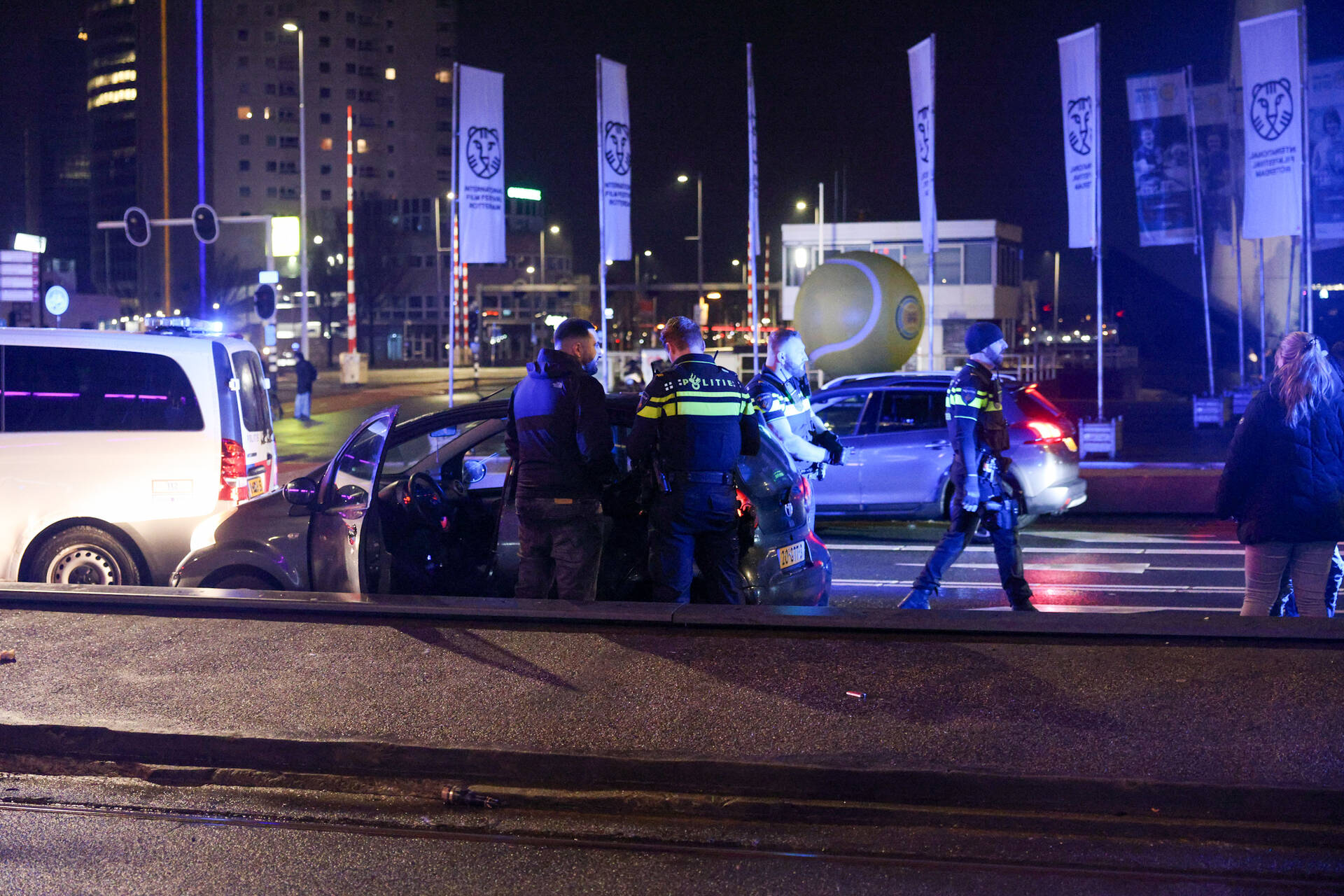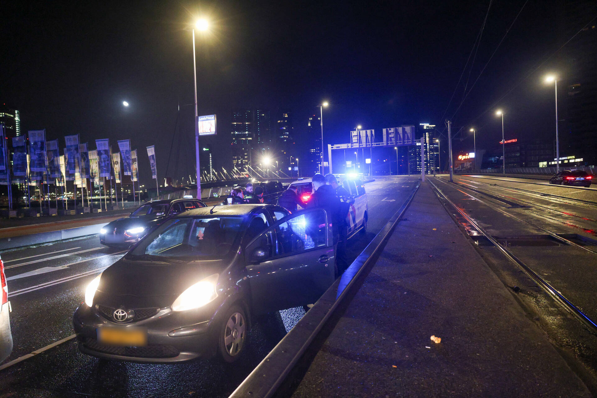 ROTTERDAM - Zaterdagmorgen 7 februari om 01.00 uur is een politieachtervolging geëindigd aan het einde van de Erasmusbrug richting het centrum van Rotterdam.