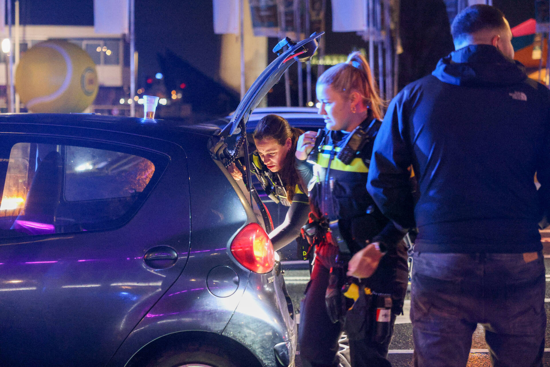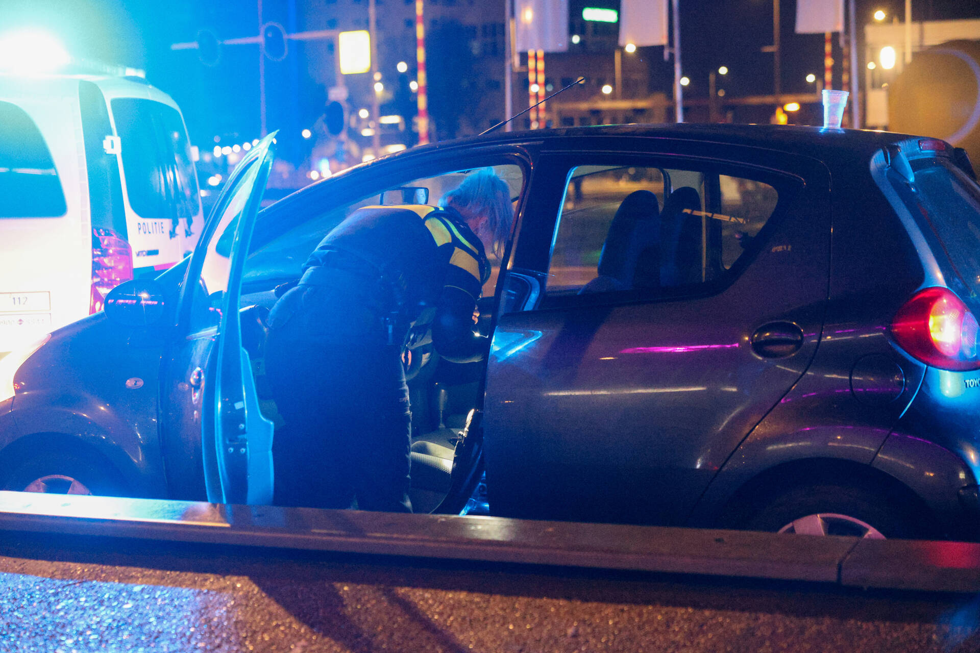 De twee andere inzittenden mochten na controle vertrekken en liepen weg met drie flessen sterke drank. De bestuurder werd met spoed overgebracht naar het politiebureau, waar wordt onderzocht of hij onder invloed was en of er sprake is van andere strafbare feiten. Ook het voertuig is in beslag genomen voor verder onderzoek.