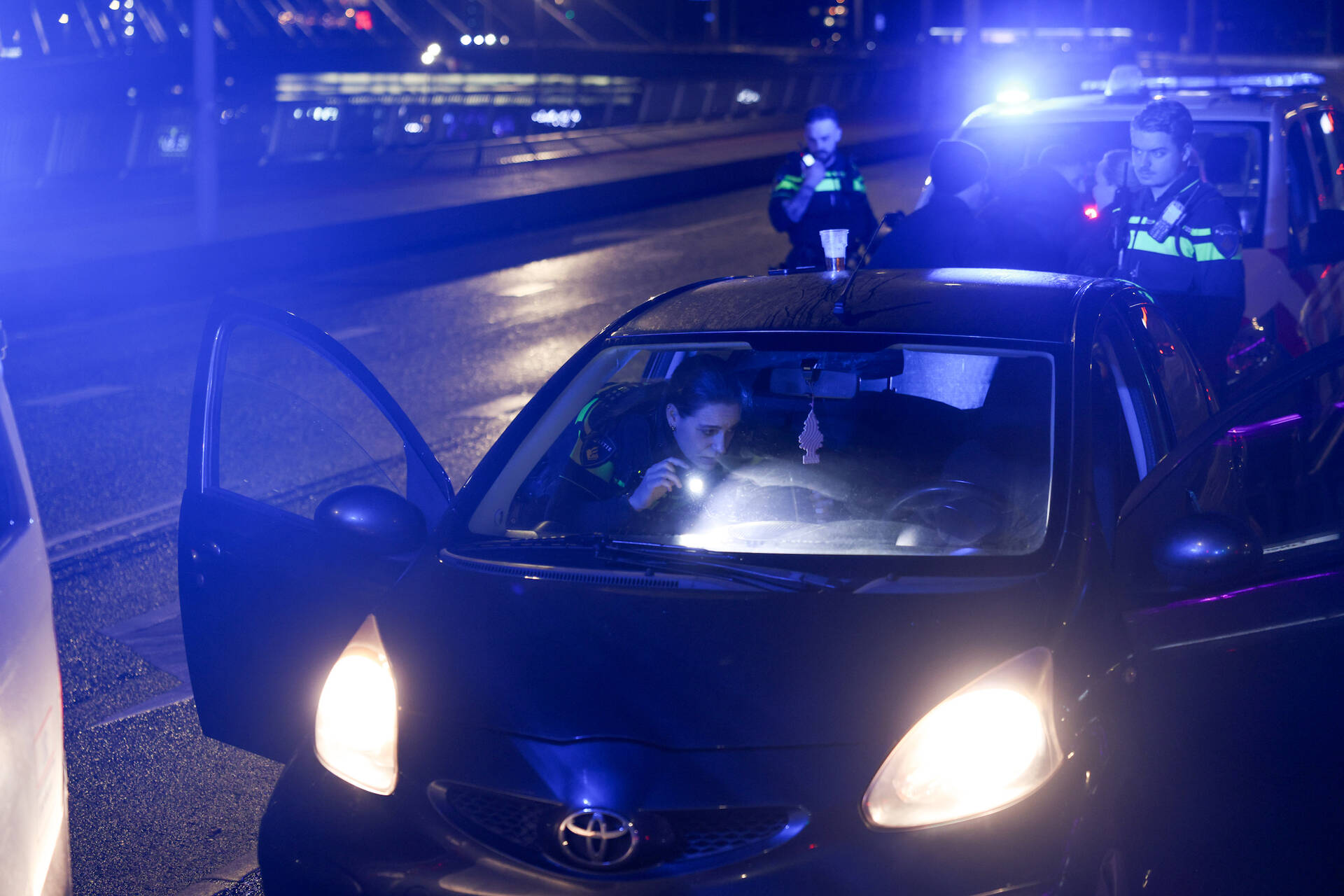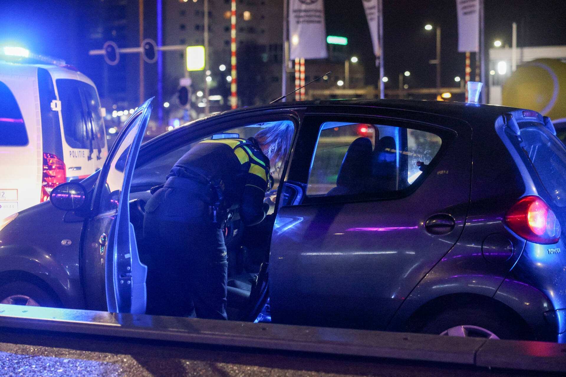 Een personenauto met drie inzittenden negeerde een stopteken van de politie en ging er met hoge snelheid vandoor vanaf Rotterdam-Zuid. Volgens de politie hadden de inzittenden glazen met alcohol in hun handen en lagen er meerdere flessen sterke drank in de auto. Na de achtervolging kwamen meerdere politie-eenheden naar de locatie, waaronder agenten in burger en hondengeleiders. De bestuurder werkte bij zijn aanhouding niet mee en moest met kracht in een politiebusje worden geplaatst. In het busje weigerde hij een blaastest af te leggen en vertoonde hij agressief gedrag, wat leidde tot een worsteling met agenten. De auto werd doorzocht, maar daarin werden geen verboden goederen aangetroffen. De man wordt als verdachte aangemerkt.