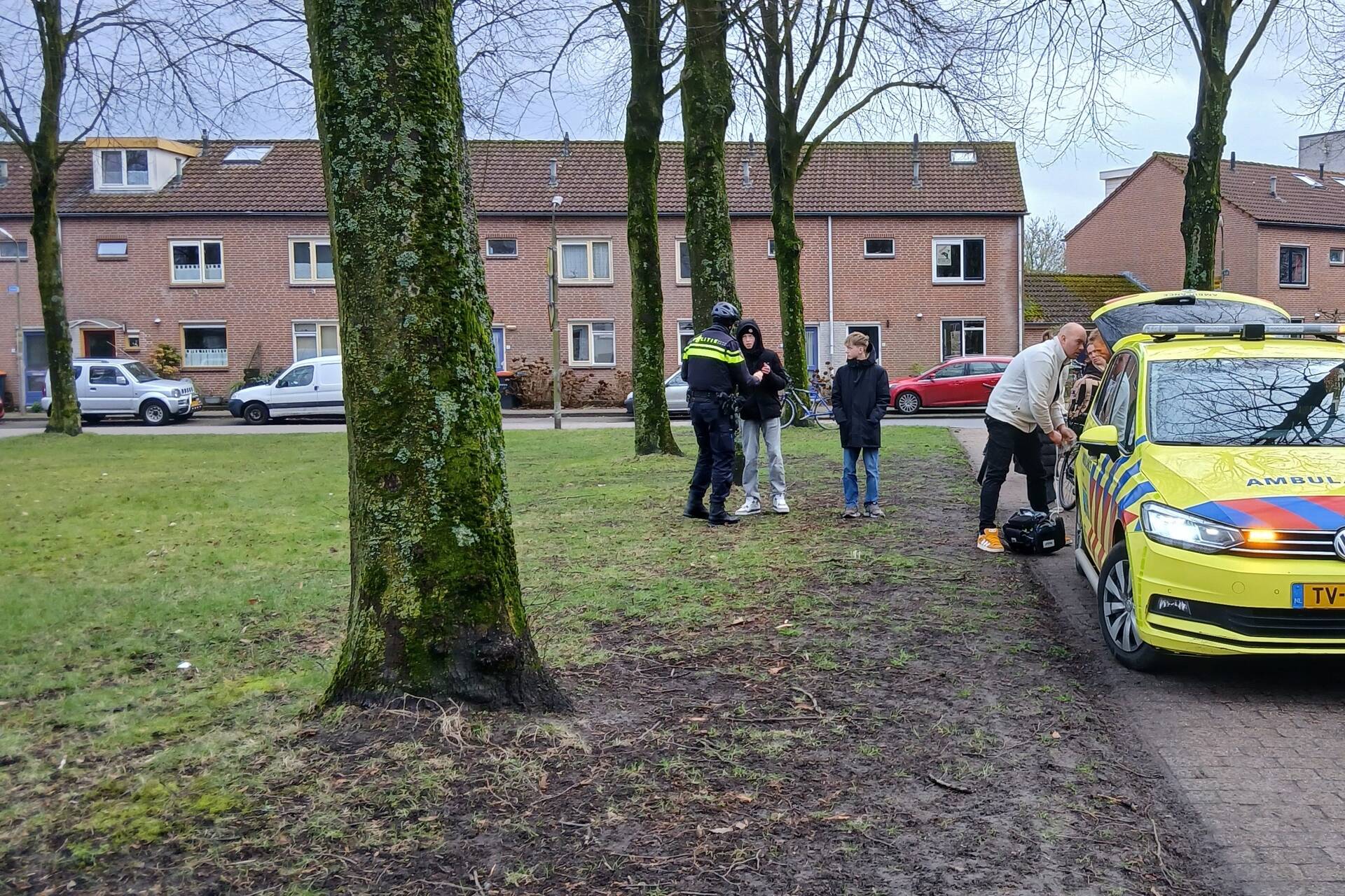 Twee fietsers zijn met elkaar in botsing gekomen. Beide personen hebben hoofdpijn en worden nagekeken door een rapid responder van de regionale ambulancediensten.