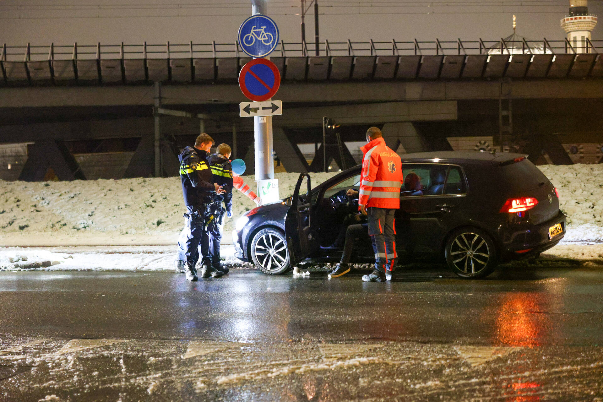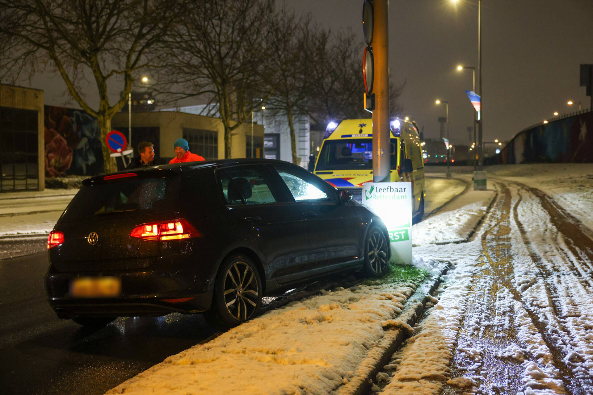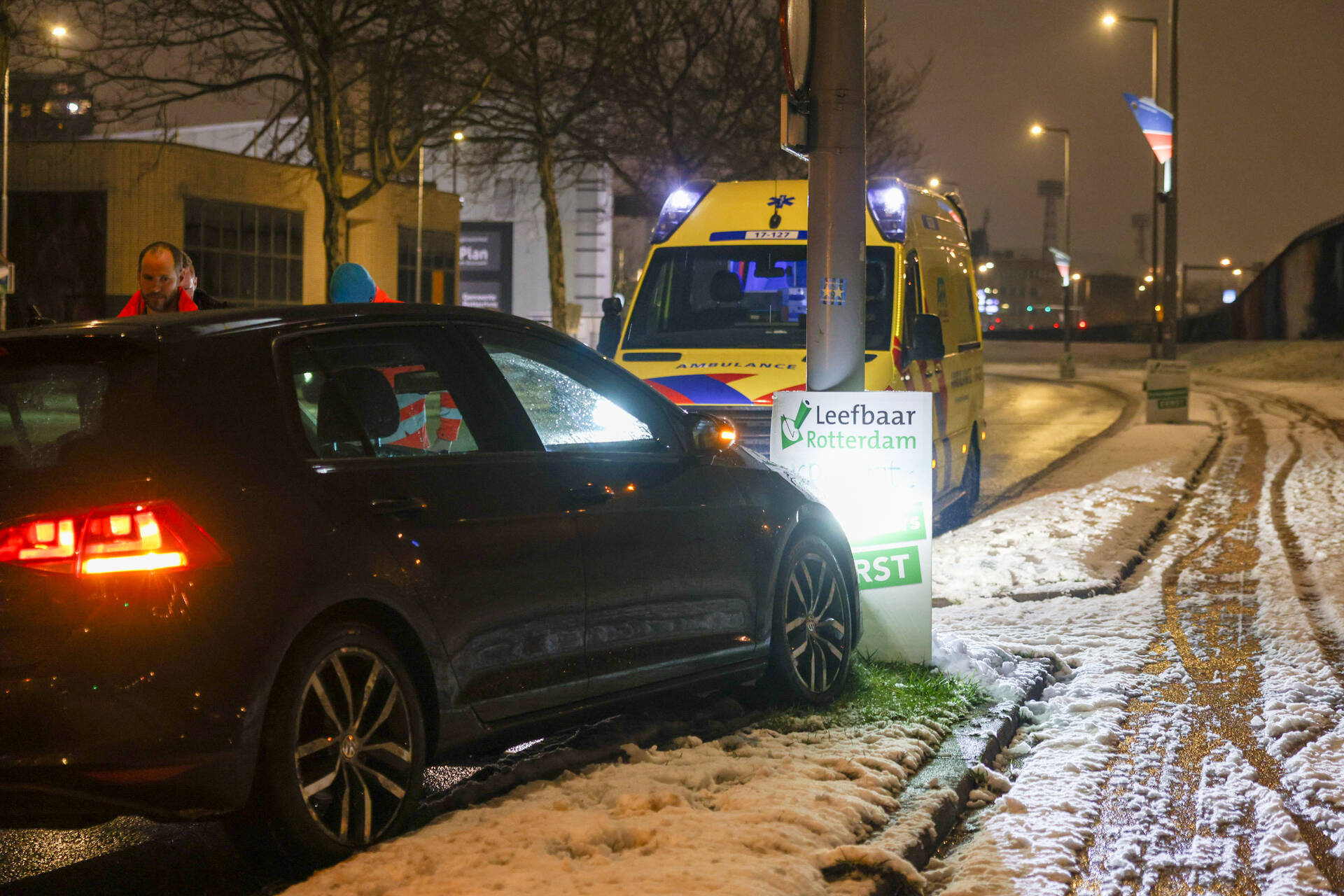 ROTTERDAM - In de late avond van zondag 15 februari niet lang voor 20.50 uur kwam het tot een ongeval aan de Korte Stadionweg in Rotterdam. Een man raakte door de gladheid van de weg en botste tegen een lantaarnpaal. Hij werd vervolgens nagekeken in de ambulance, maar hoefde niet mee naar het ziekenhuis. Het betrof een eenzijdig ongeval waarbij de nek van de man werd vastgehouden door een agent in de auto.