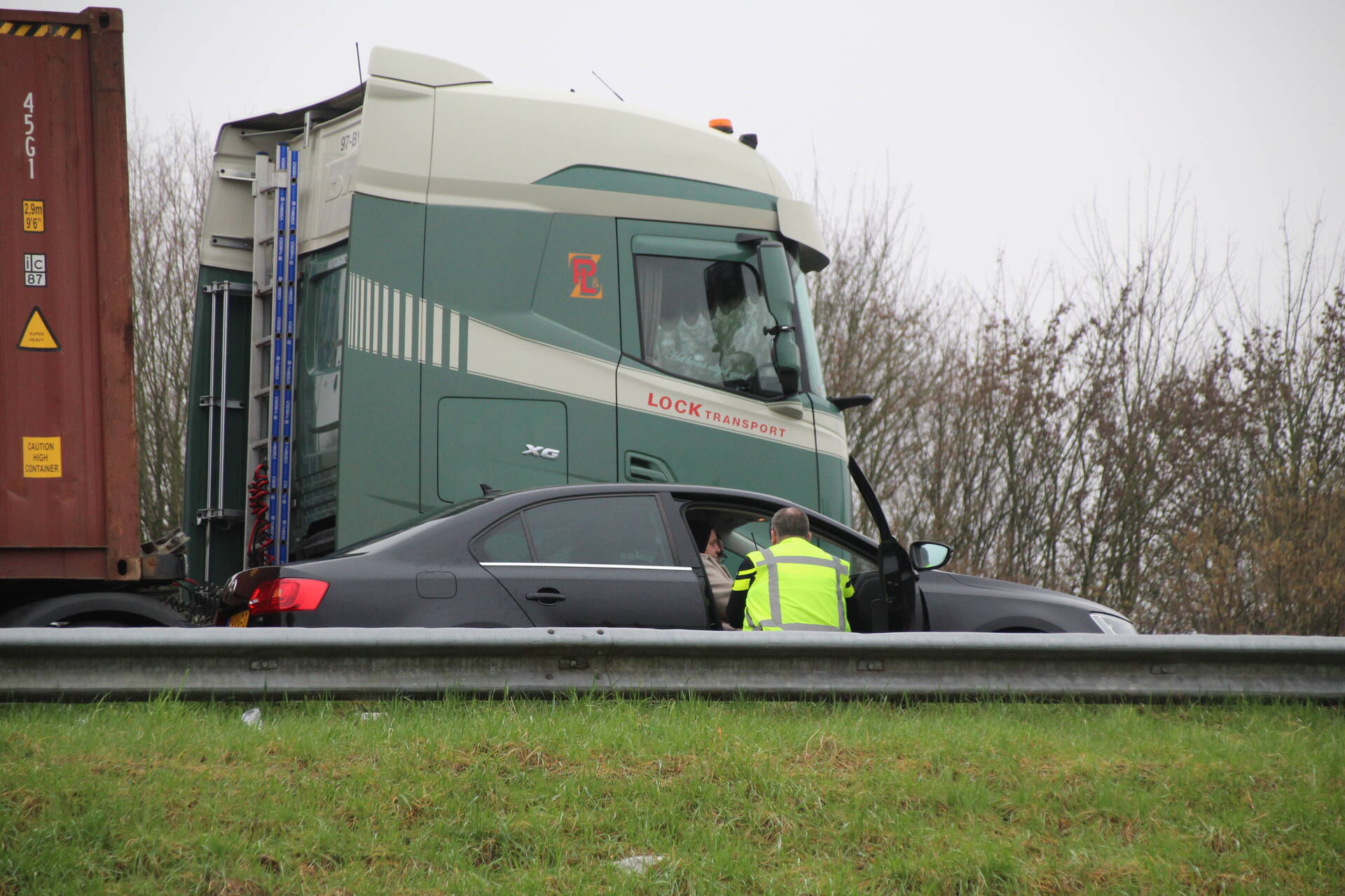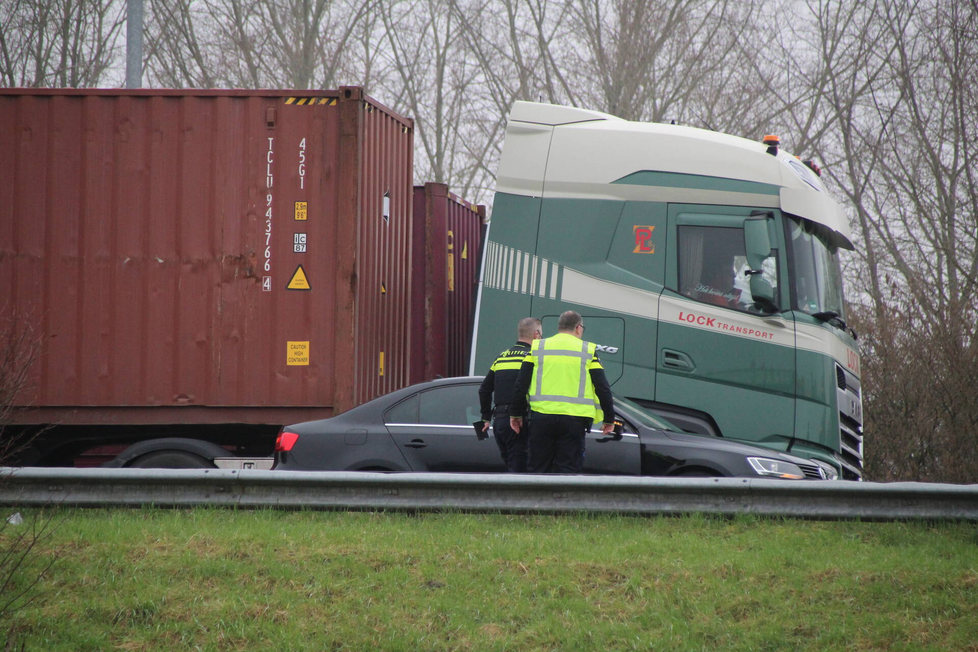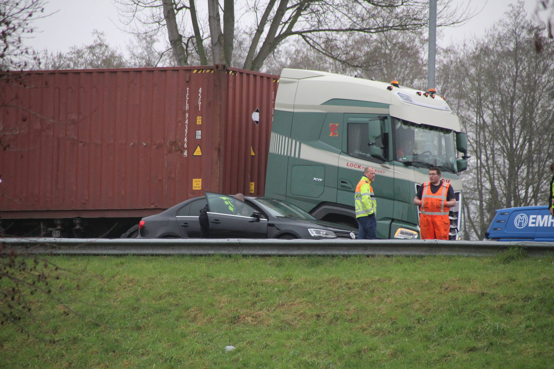 Botsing tussen vrachtwagen en auto zonder gewonden
