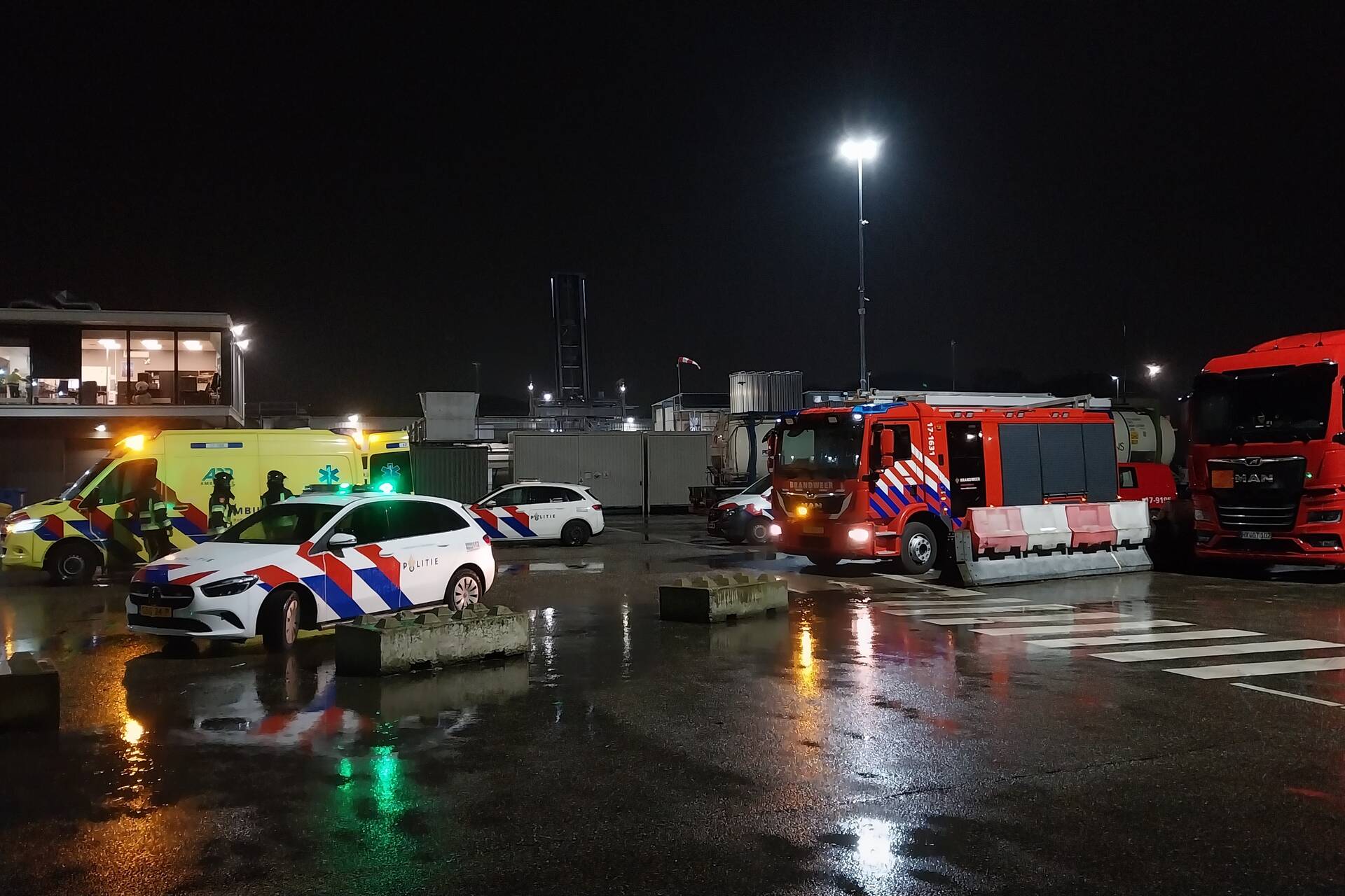 Meerdere hulpdiensten werden ingezet voor een persoon die in een tankcontainer is gevallen. Daarnaast werd een Mobiel Medisch Team ingeschakeld ter ondersteuning van het ambulancepersoneel. Het is onduidelijk hoe het slachtoffer eraan toe is.